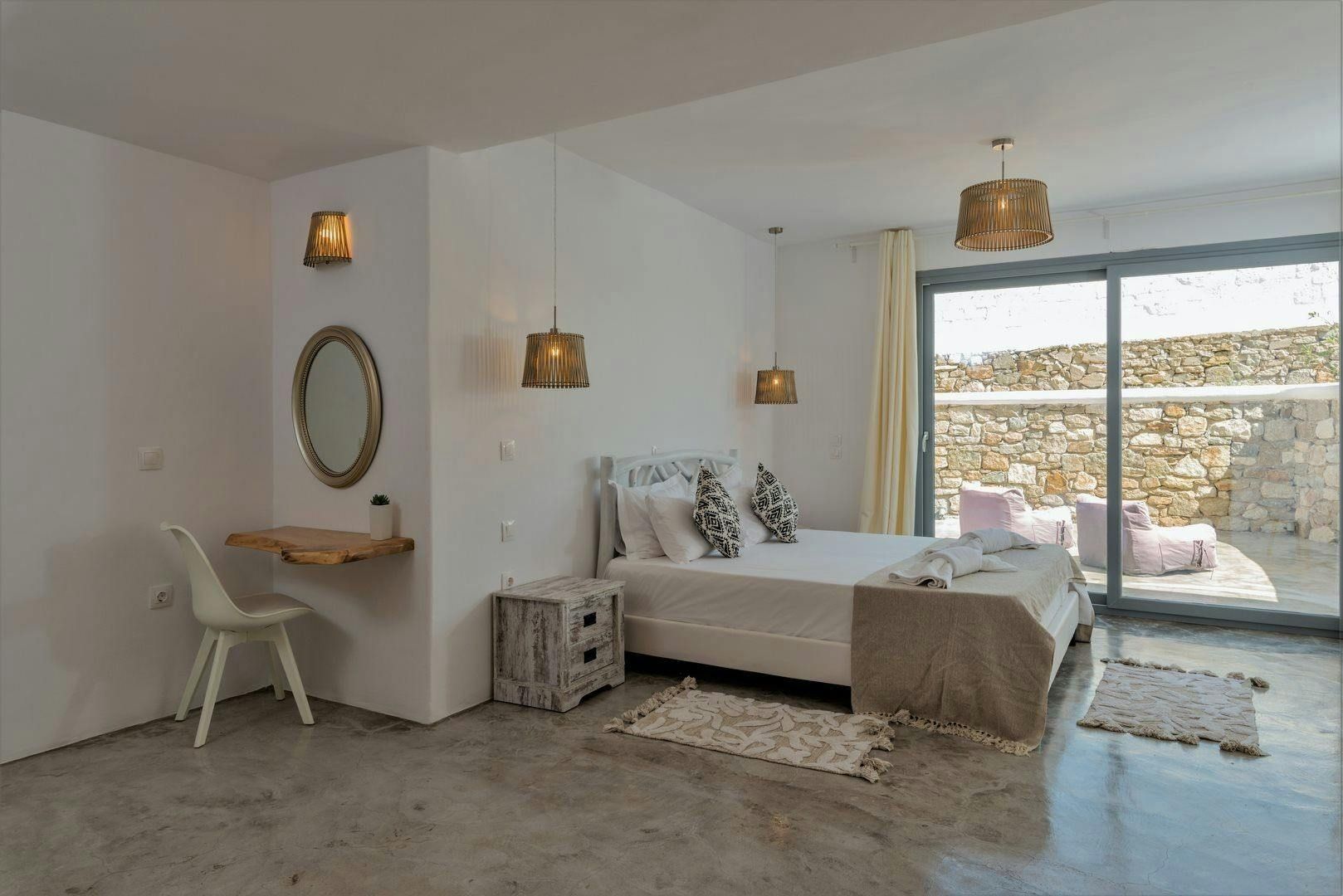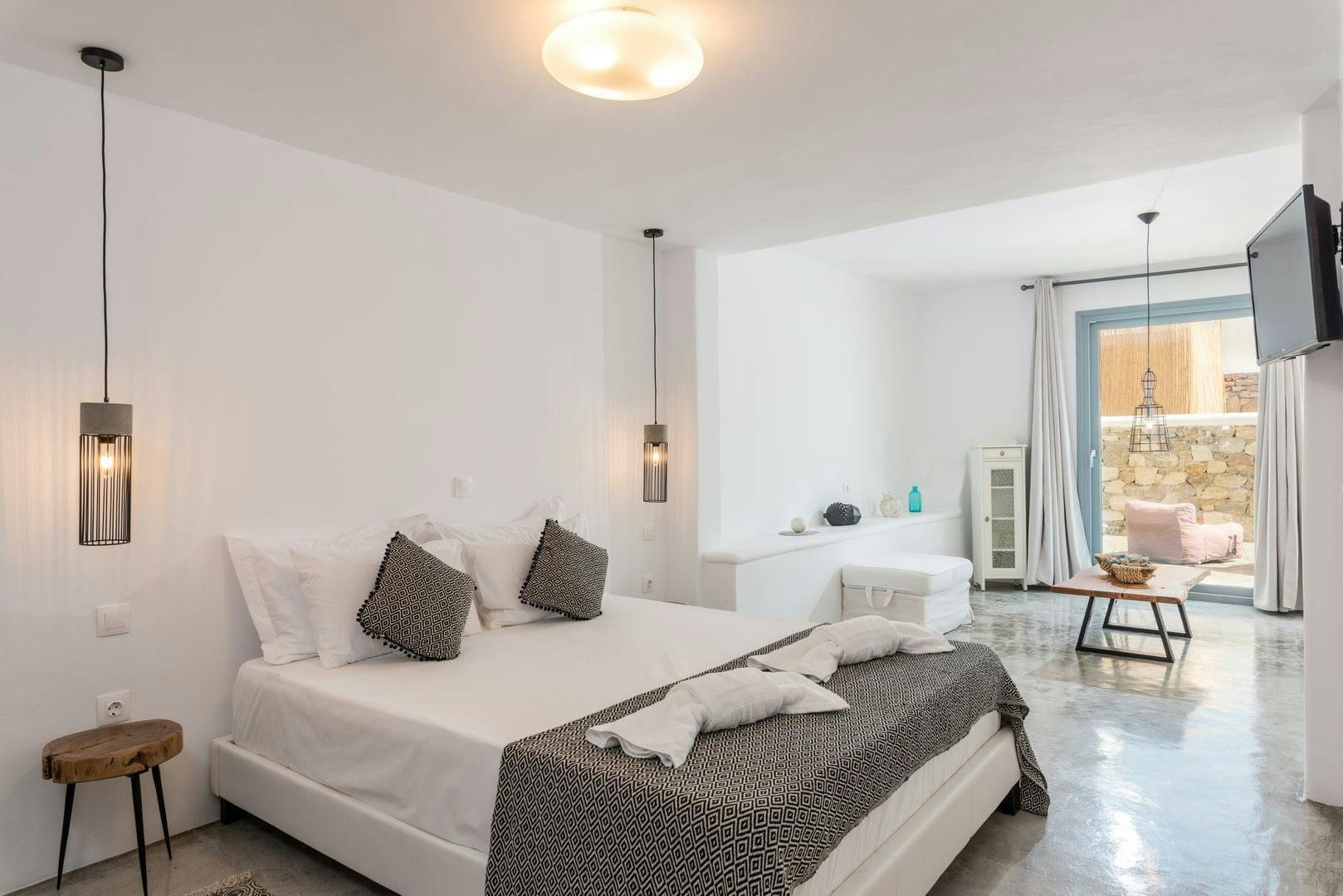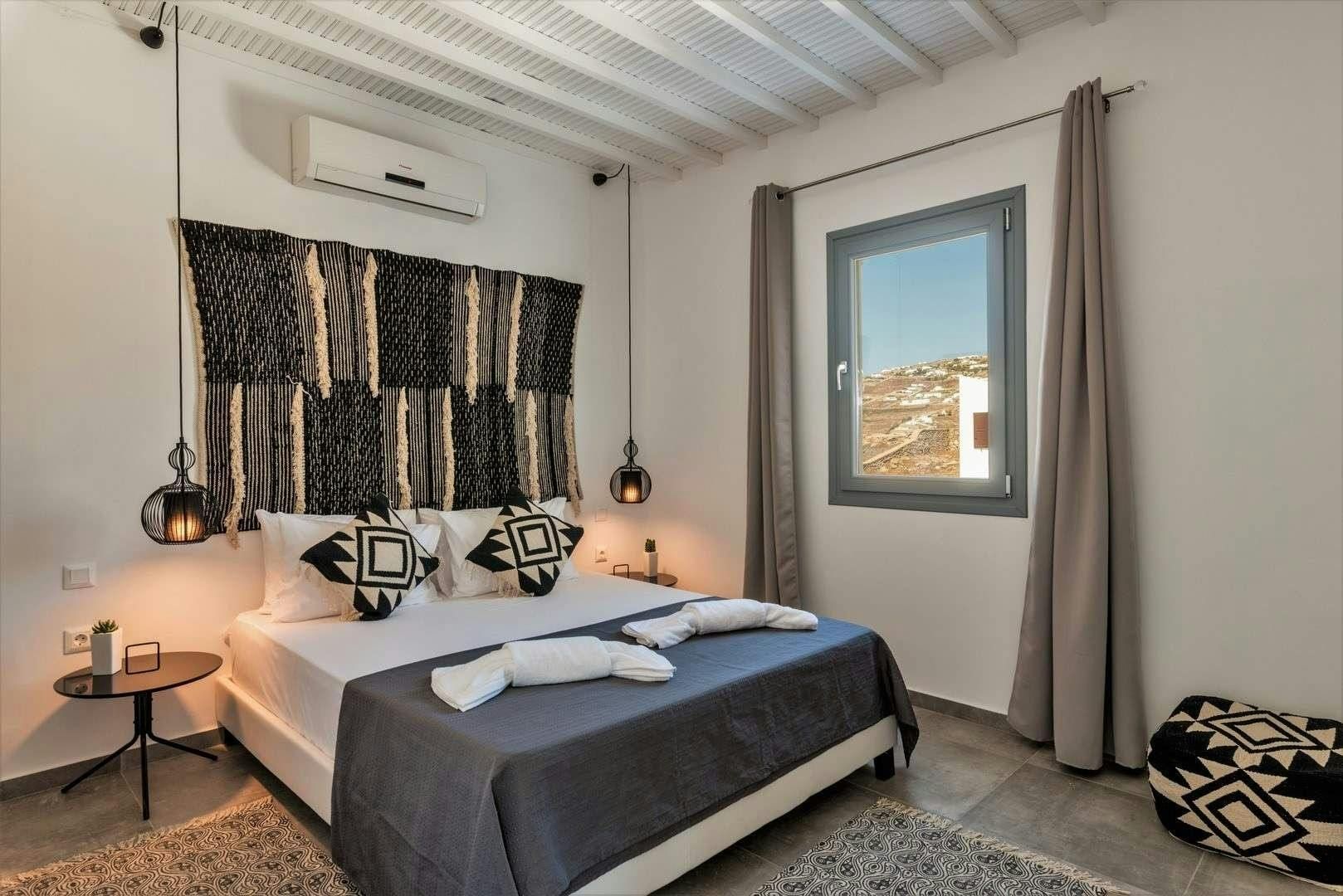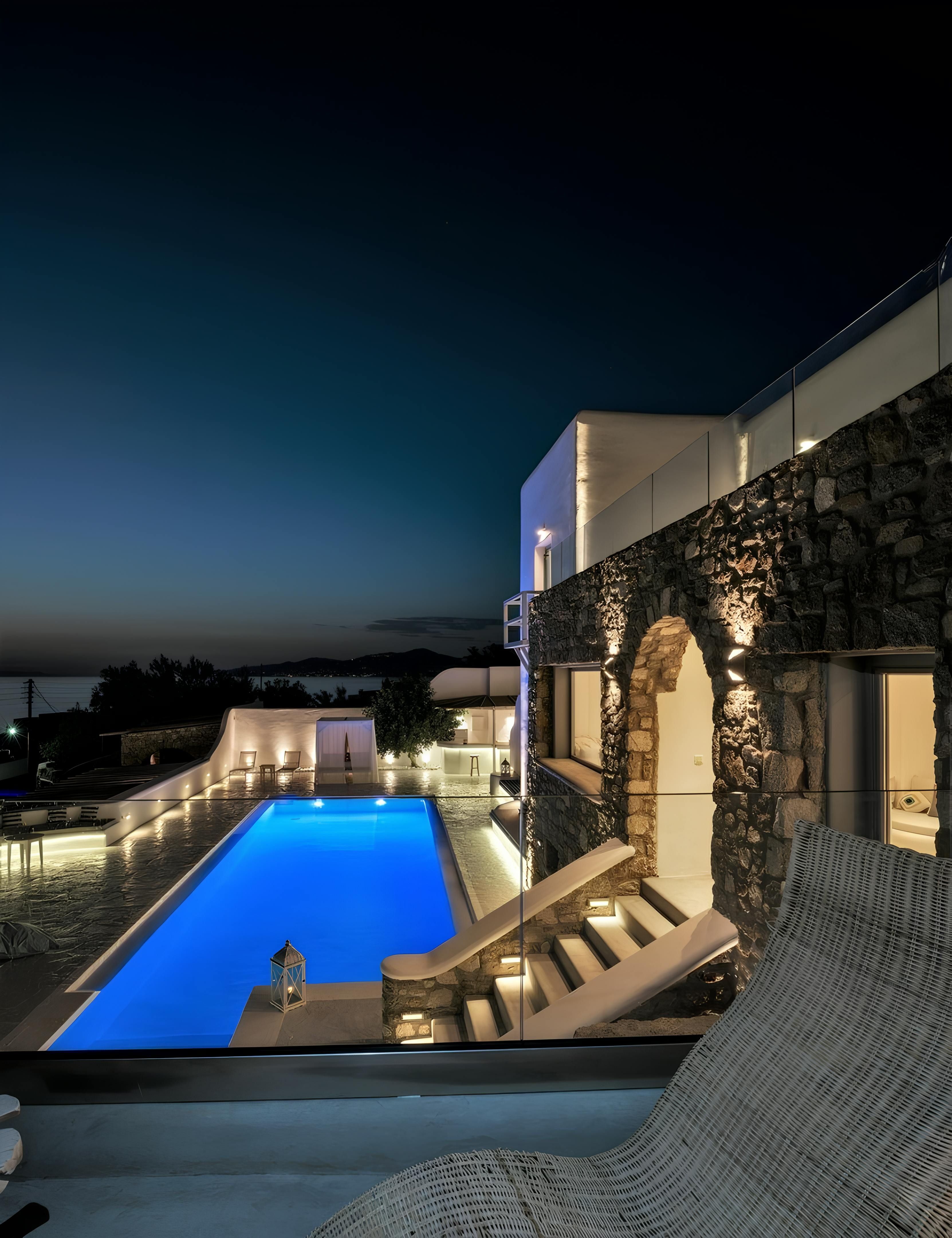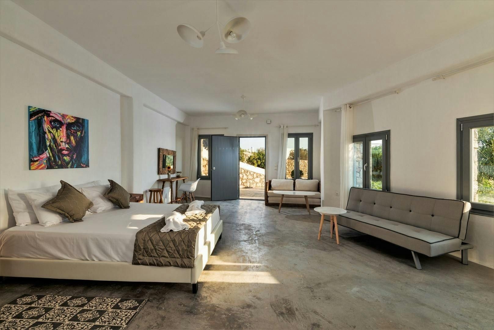For the ultimate island escape, head to this home on the shores of Agios Stefanos. Consisting of two independent villas alongside two guest houses, you’ll find an abundance of space along with two swimming pools and beautiful sea views. There is also an outdoor bar, a sound system and a barbecue – perfect for magical group gatherings under the stars. Exercise enthusiasts will appreciate the on-site gym, while beach lovers will find perfect contentment on the seafront – just a short walk away.
