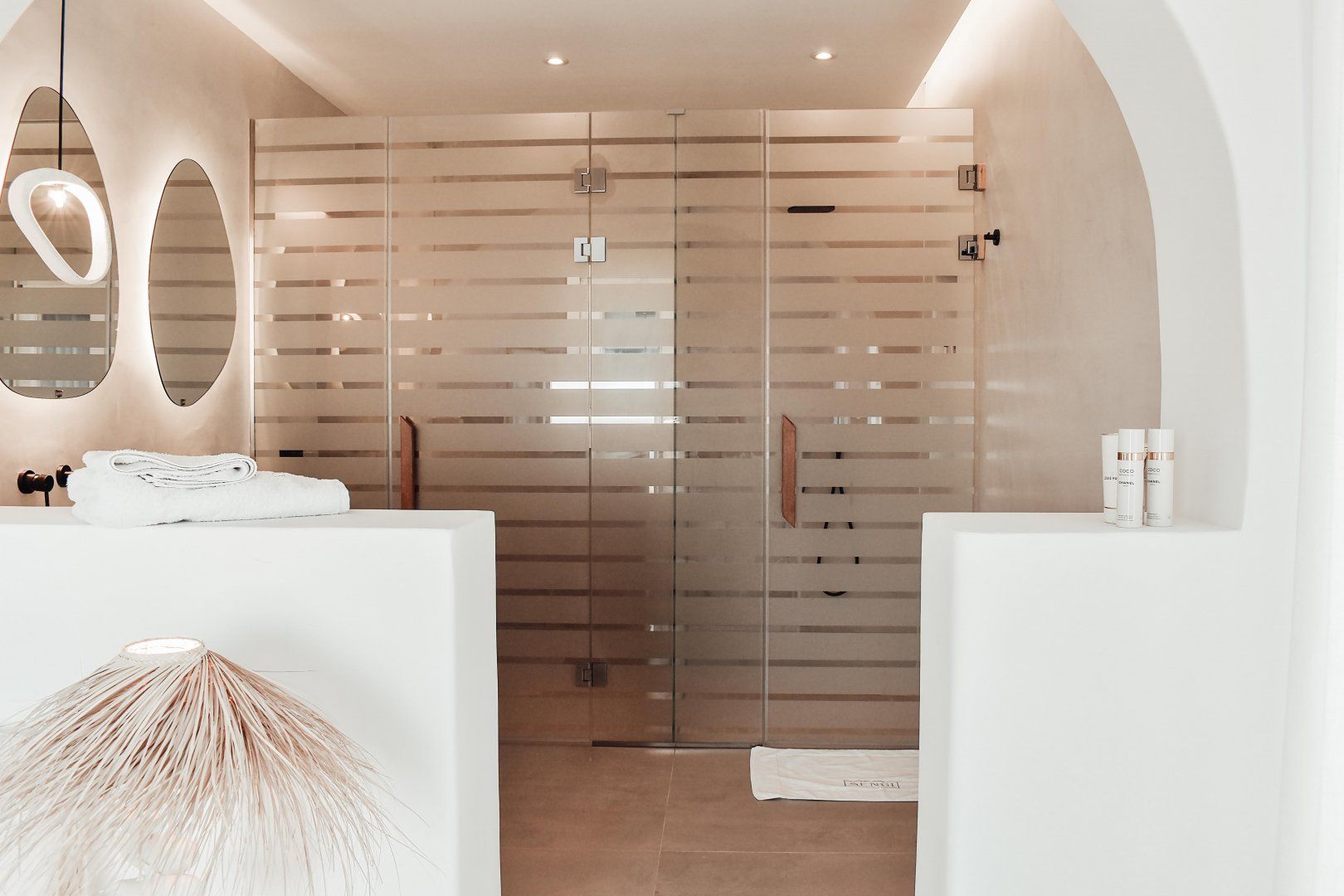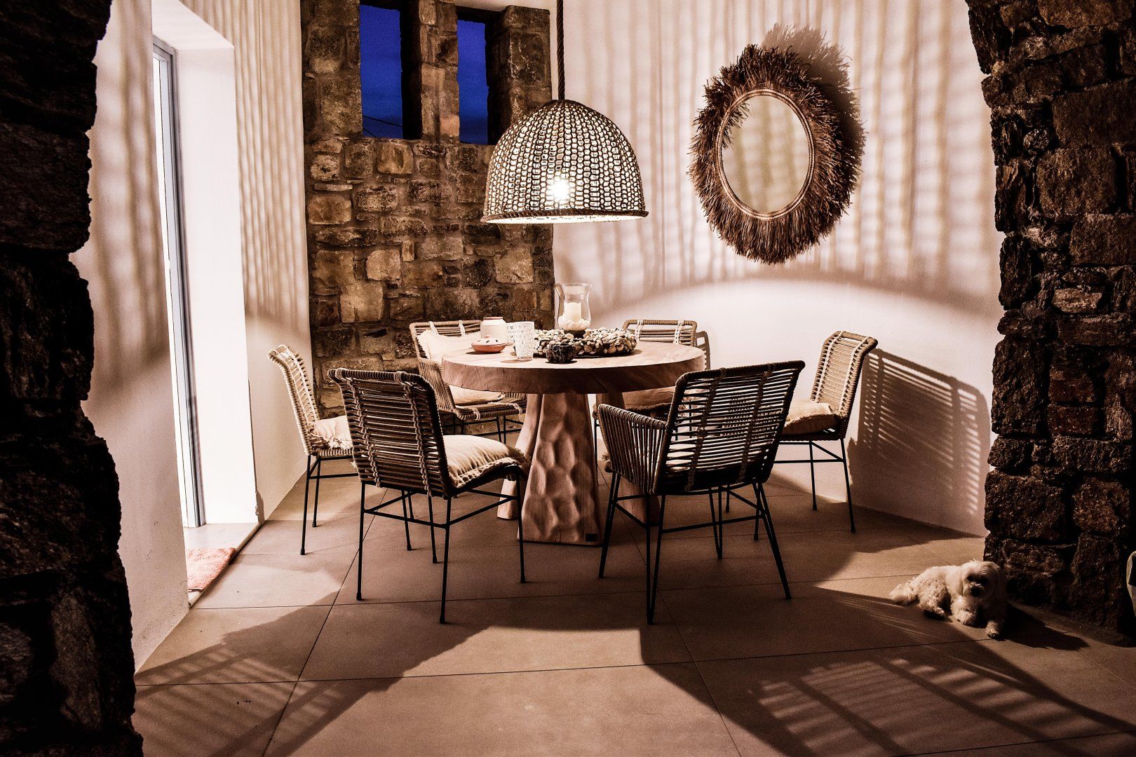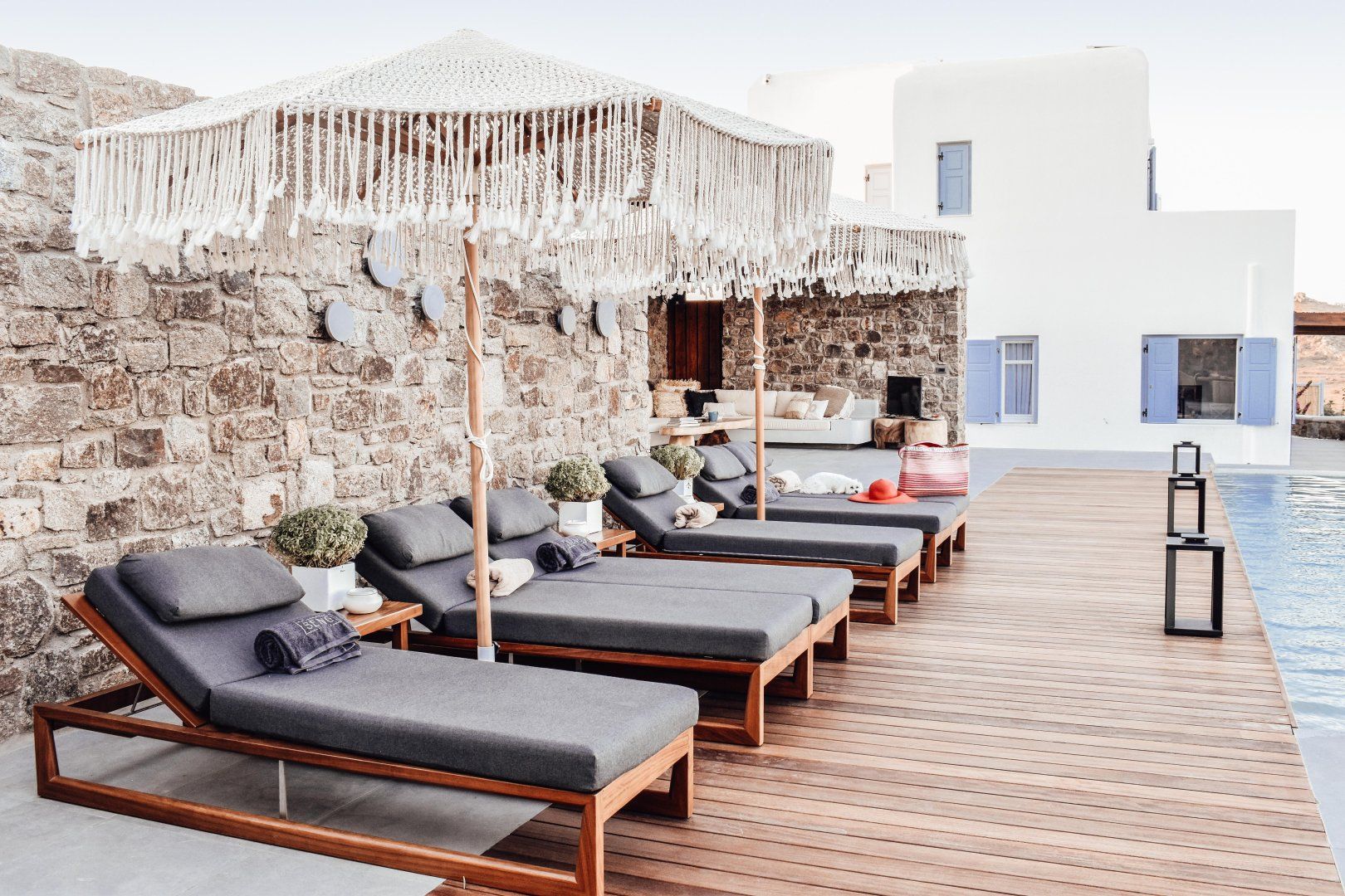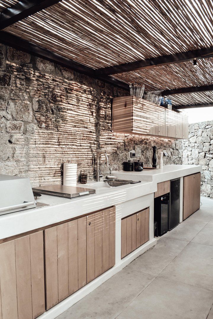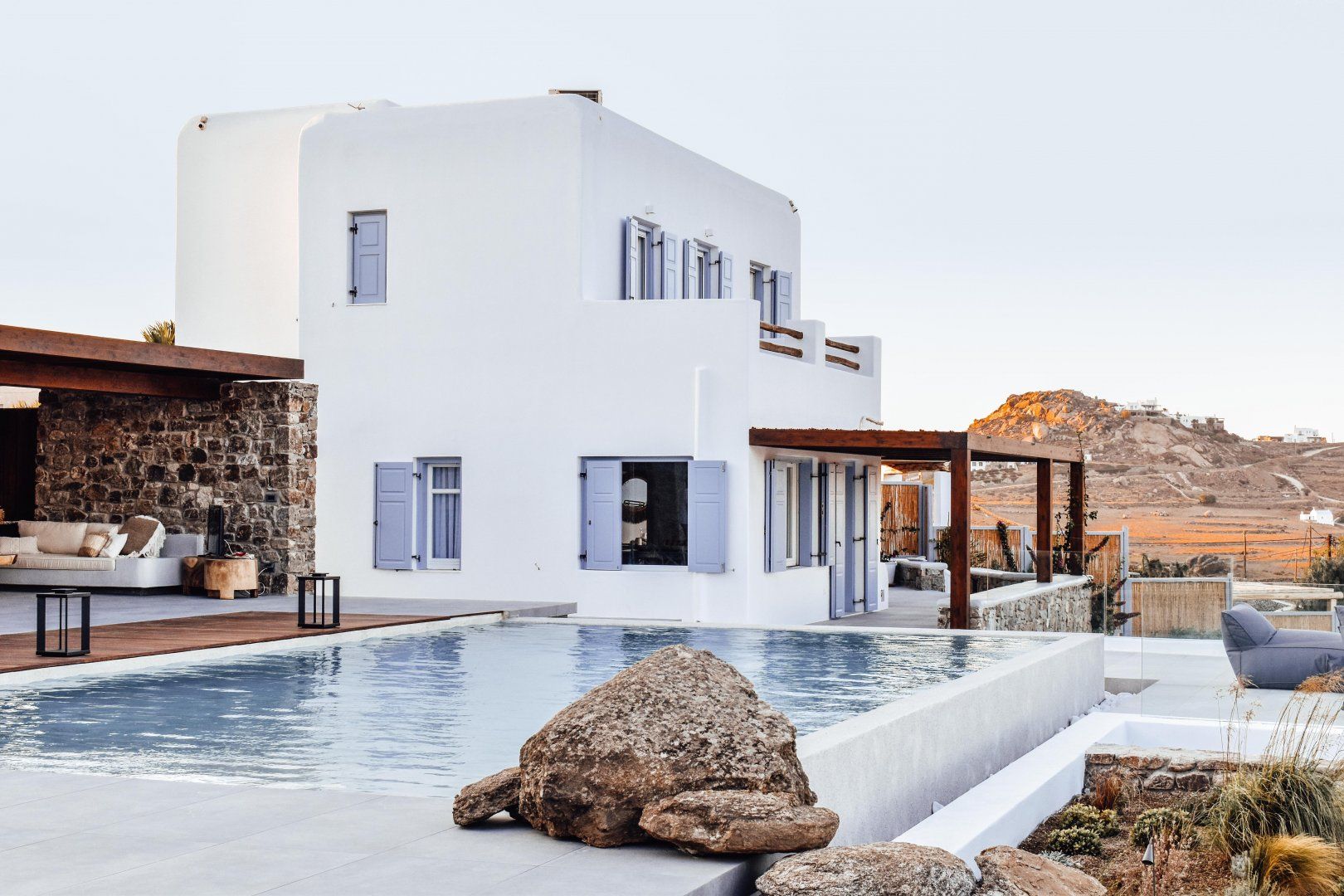 When it's extra balmy out and the sun is beating down, glide between the decadent shaded pavilion and your private swimming pool. No need to go indoors to wash the chlorine off – there's an outdoor shower for your convenience. The natural stone that clads the outdoor structures is sourced from the Myconian terrain, giving this contemporary villa an authentic island feel.