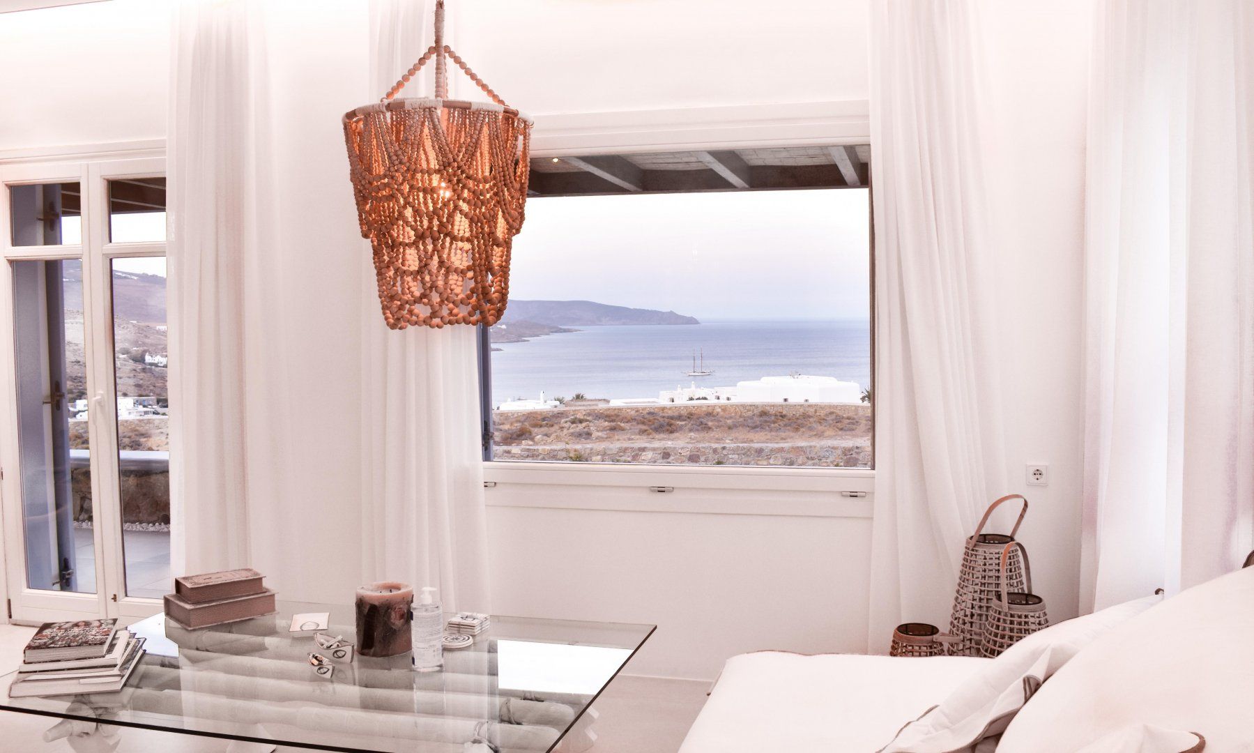 Experience the bright side of life in this modern Greek home on the island of Mykonos. The grand oasis is brimming with light-filled spaces to put your feet up and get immersed in paradise. Whichever spot you pick, you'll do doubt be treated to sweeping views across the bay, past rugged land dotted with traditional white-washed villas.