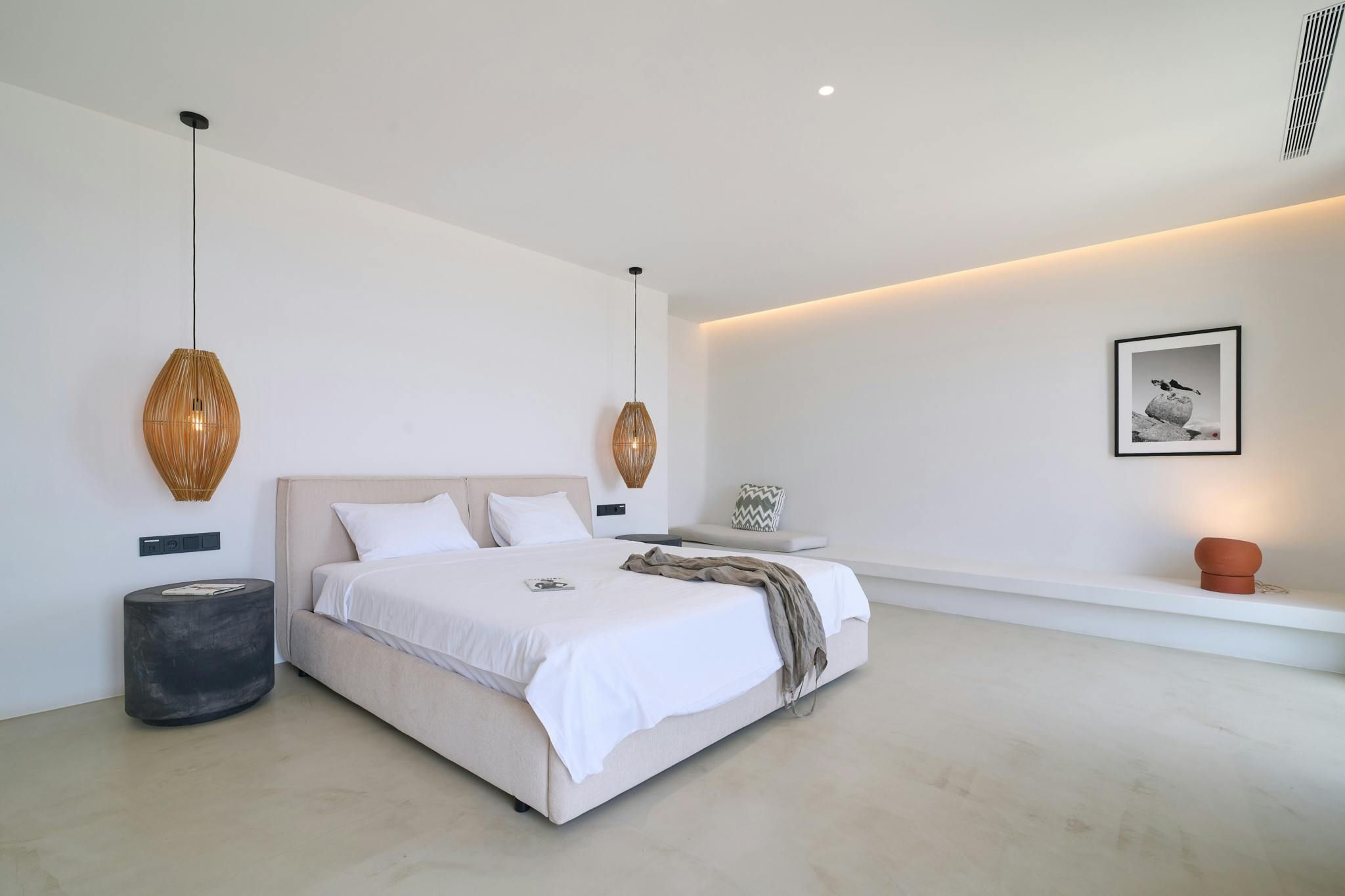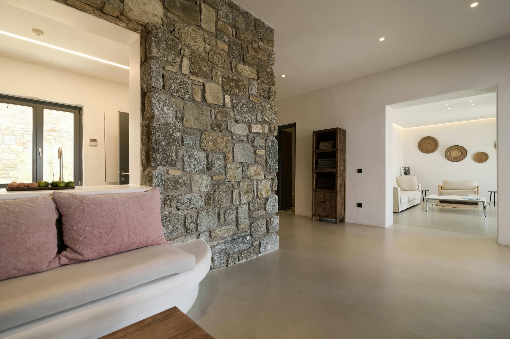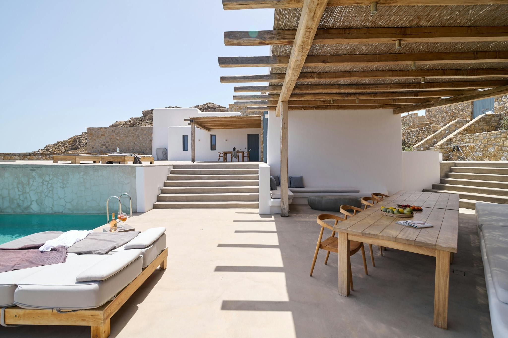 Overlooking the Bay of Kalafatis, this home will capture your heart with its stunning sea views. You can spend blissful days lounging poolside and reading in the shade. The terrace is perfect for alfresco dining, while the rooms set the tone for total relaxation. Daily housekeeping is included for optimum comfort, and there’s a concierge service offering extras like massage treatments. Another highlight is the fact that you can walk to the nearest beach – just 500 metres away. And if you feel like adventuring further afield, it’s just a short drive to Mykonos Town.