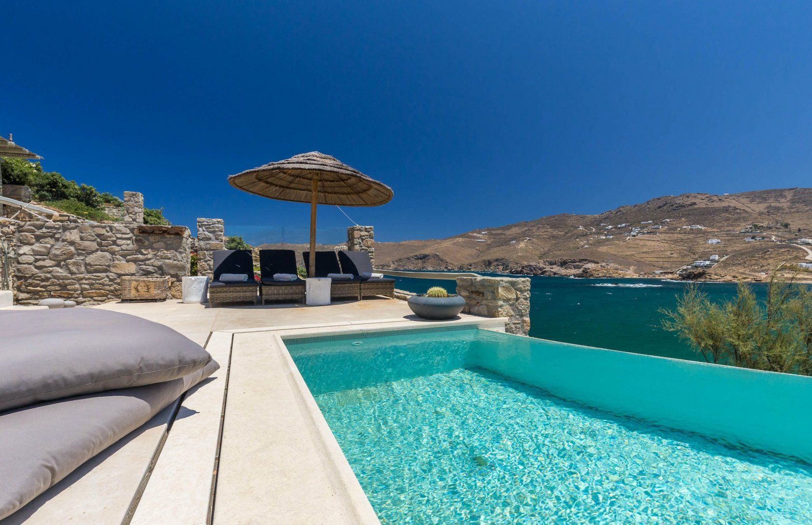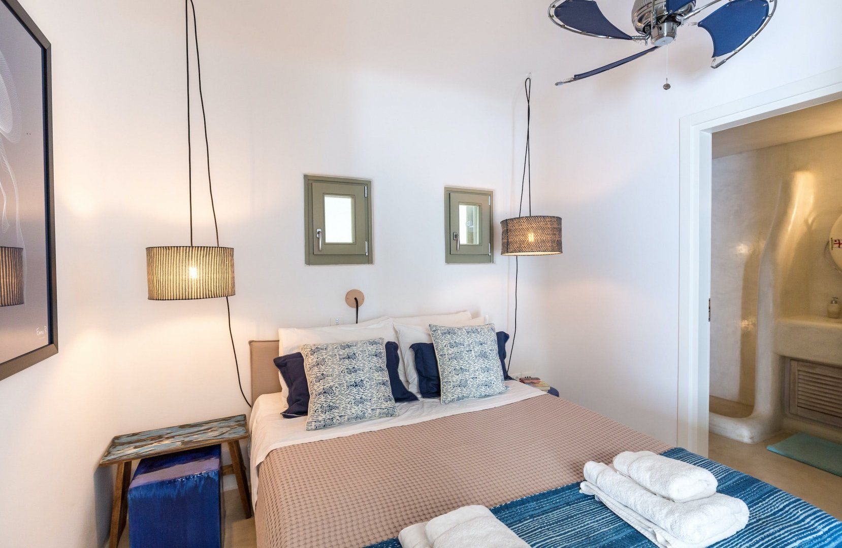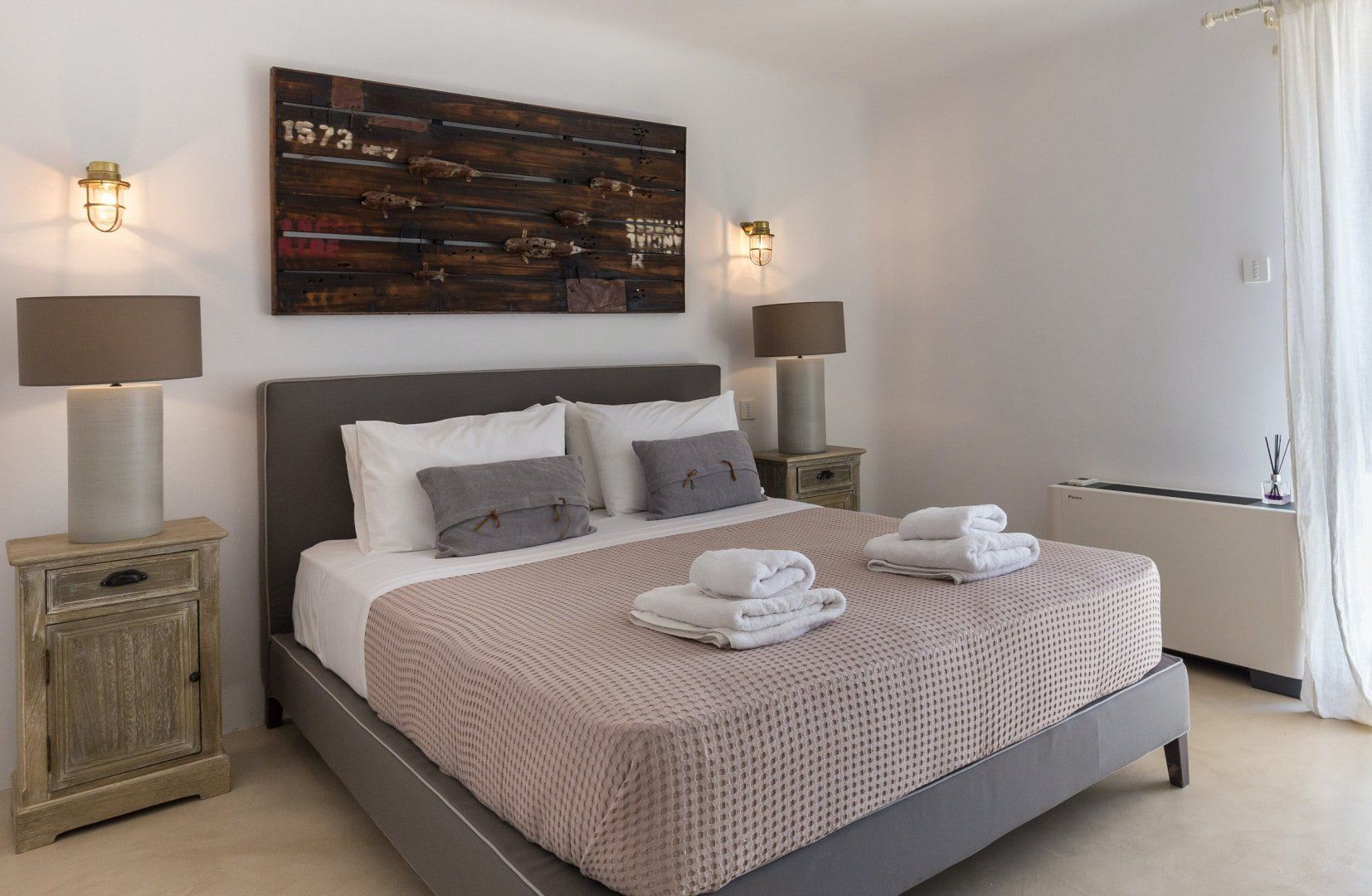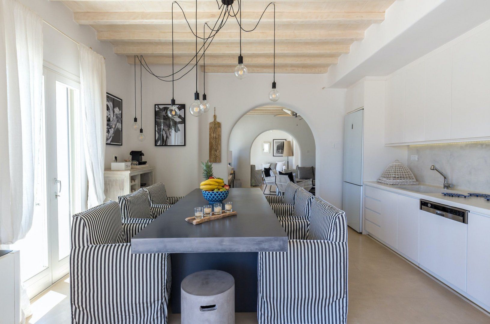 This gorgeous whitewashed Cycladic home is all soft curves and natural textures – the type of place that’s canonised in glossy design magazines. Outside, a bow-shaped infinity pool drops into Ftelia Bay – to which you have direct access via steps that lead from the lower terrace down to the beach. On the terrace above, we can imagine you cooking Greek feasts in the summer kitchen, with its long dining table and bamboo-clad pergola. Unwind with a tot of ouzo on the alfresco lounge set, surrounded by the sounds of chill-out tracks coming from the outdoor sound system. Inside, the rooms are finished with crisp white walls and neutral shades of grey and taupe. The bedrooms are cosy and inviting, with comfy double beds dressed in high-quality linens. And that’s not to mention the views – waking up to the sight of the Aegean through French doors is beyond compare.