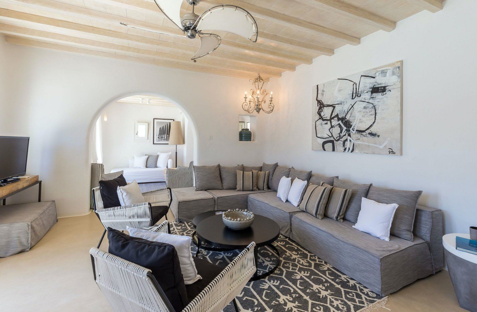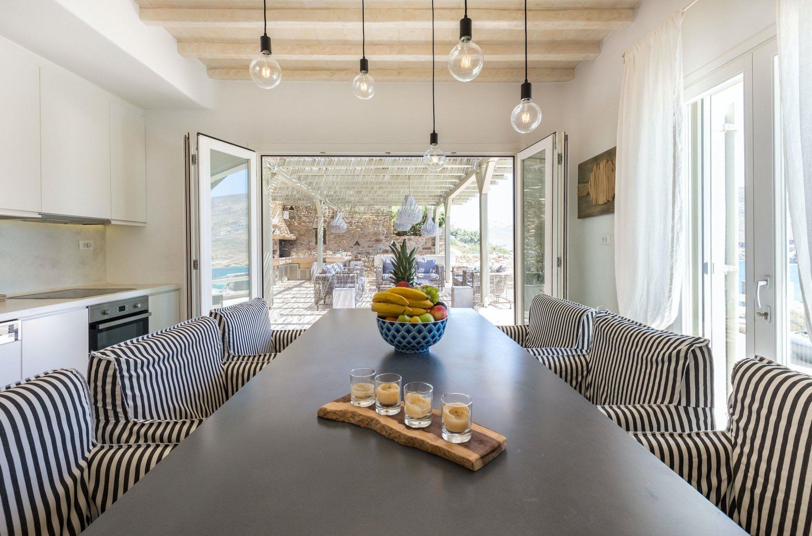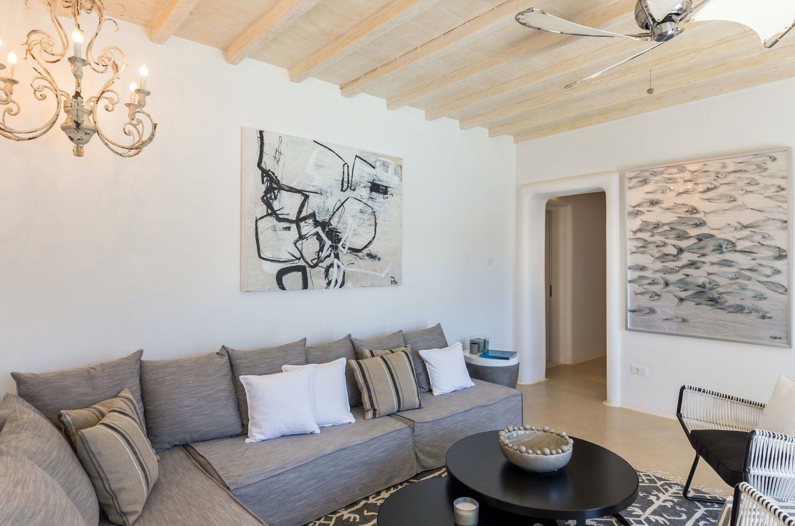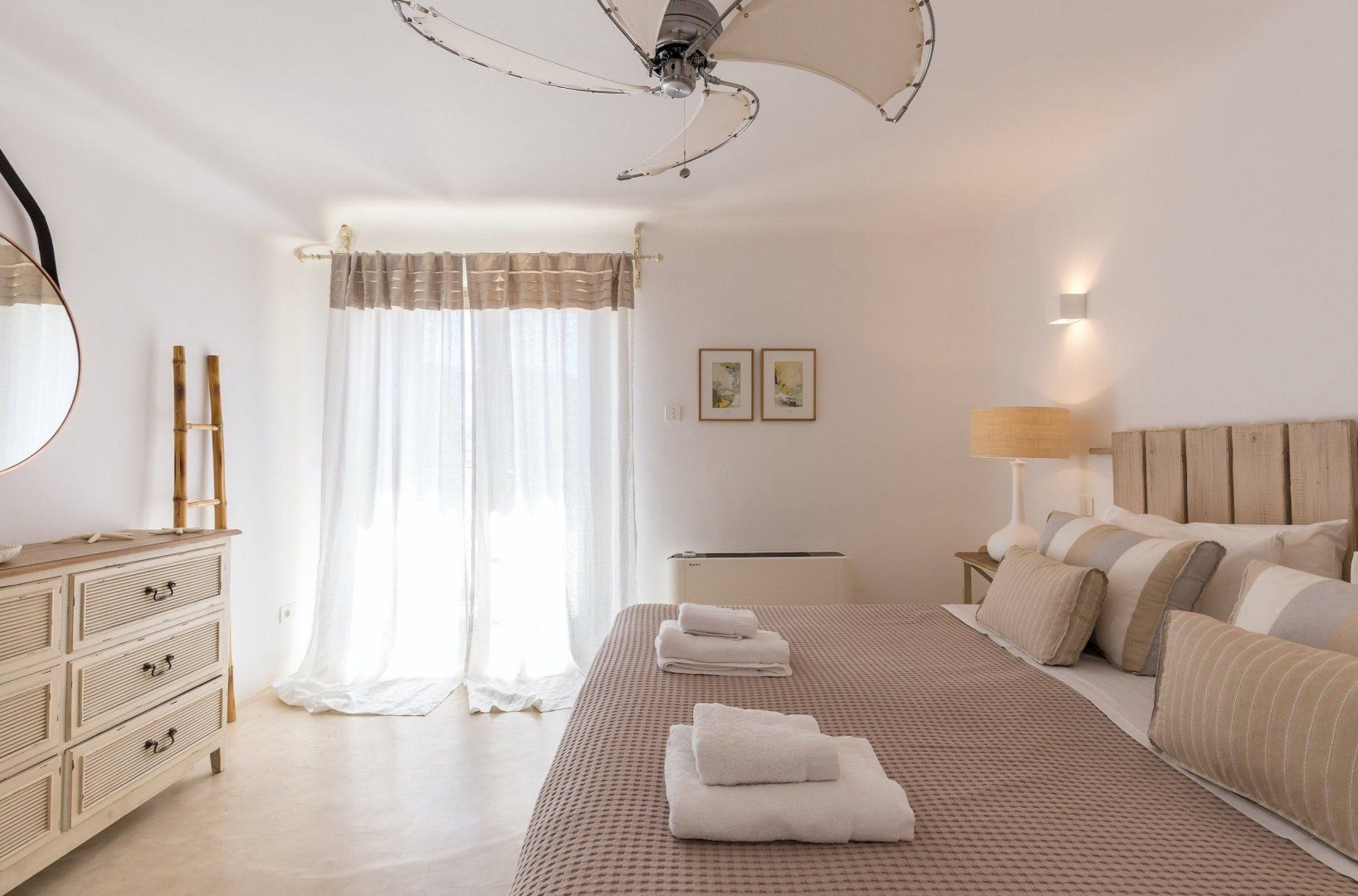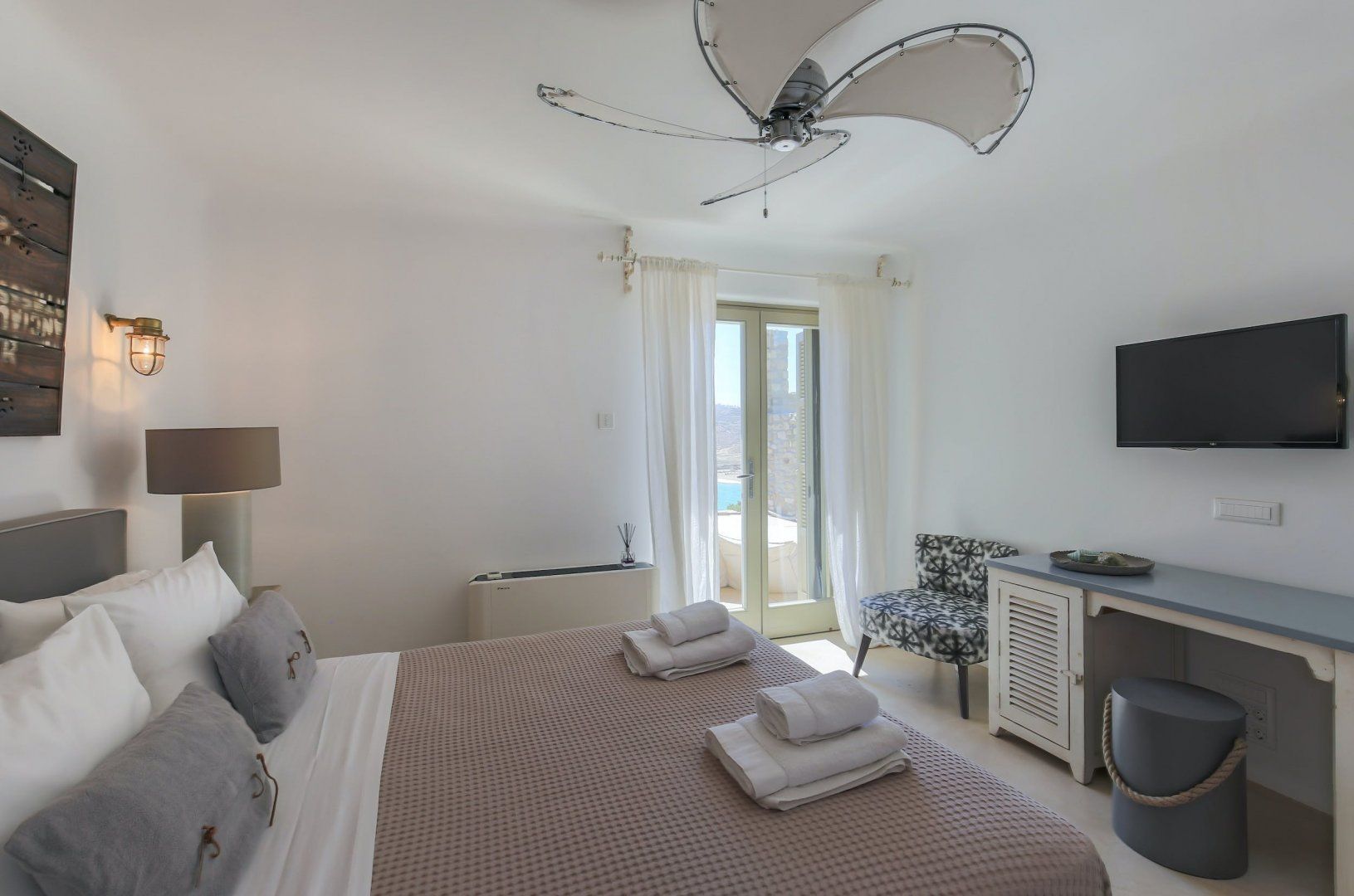 This gorgeous whitewashed Cycladic home is all soft curves and natural textures – the type of place that’s canonised in glossy design magazines. Outside, a bow-shaped infinity pool drops into Ftelia Bay – to which you have direct access via steps that lead from the lower terrace down to the beach. On the terrace above, we can imagine you cooking Greek feasts in the summer kitchen, with its long dining table and bamboo-clad pergola. Unwind with a tot of ouzo on the alfresco lounge set, surrounded by the sounds of chill-out tracks coming from the outdoor sound system. Inside, the rooms are finished with crisp white walls and neutral shades of grey and taupe. The bedrooms are cosy and inviting, with comfy double beds dressed in high-quality linens. And that’s not to mention the views – waking up to the sight of the Aegean through French doors is beyond compare.