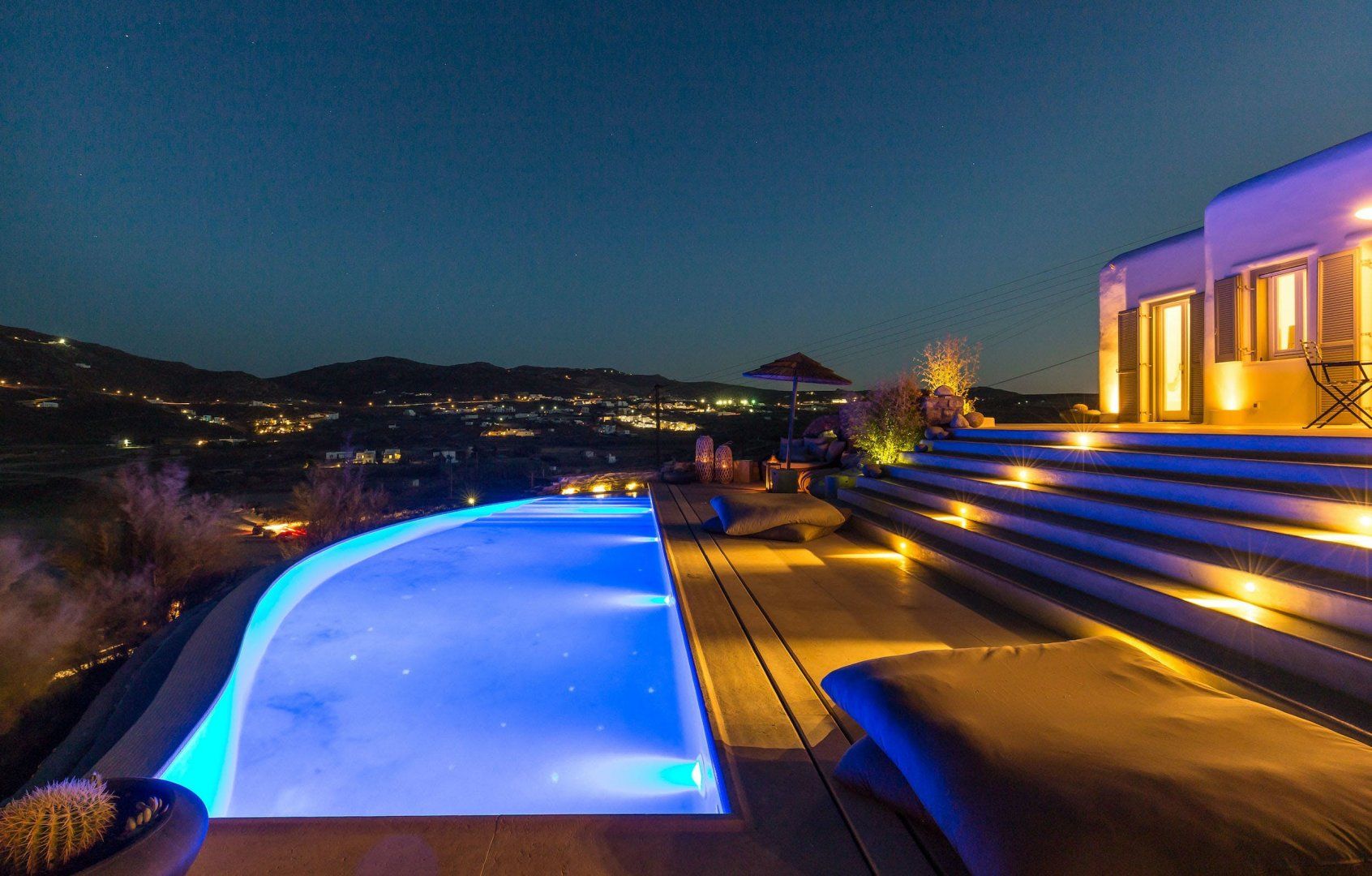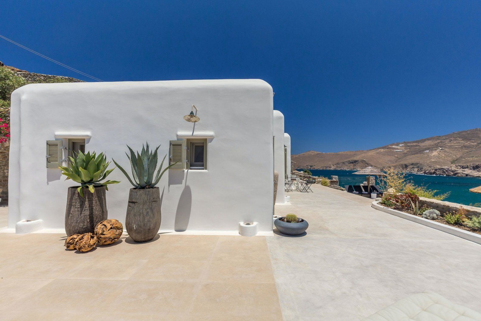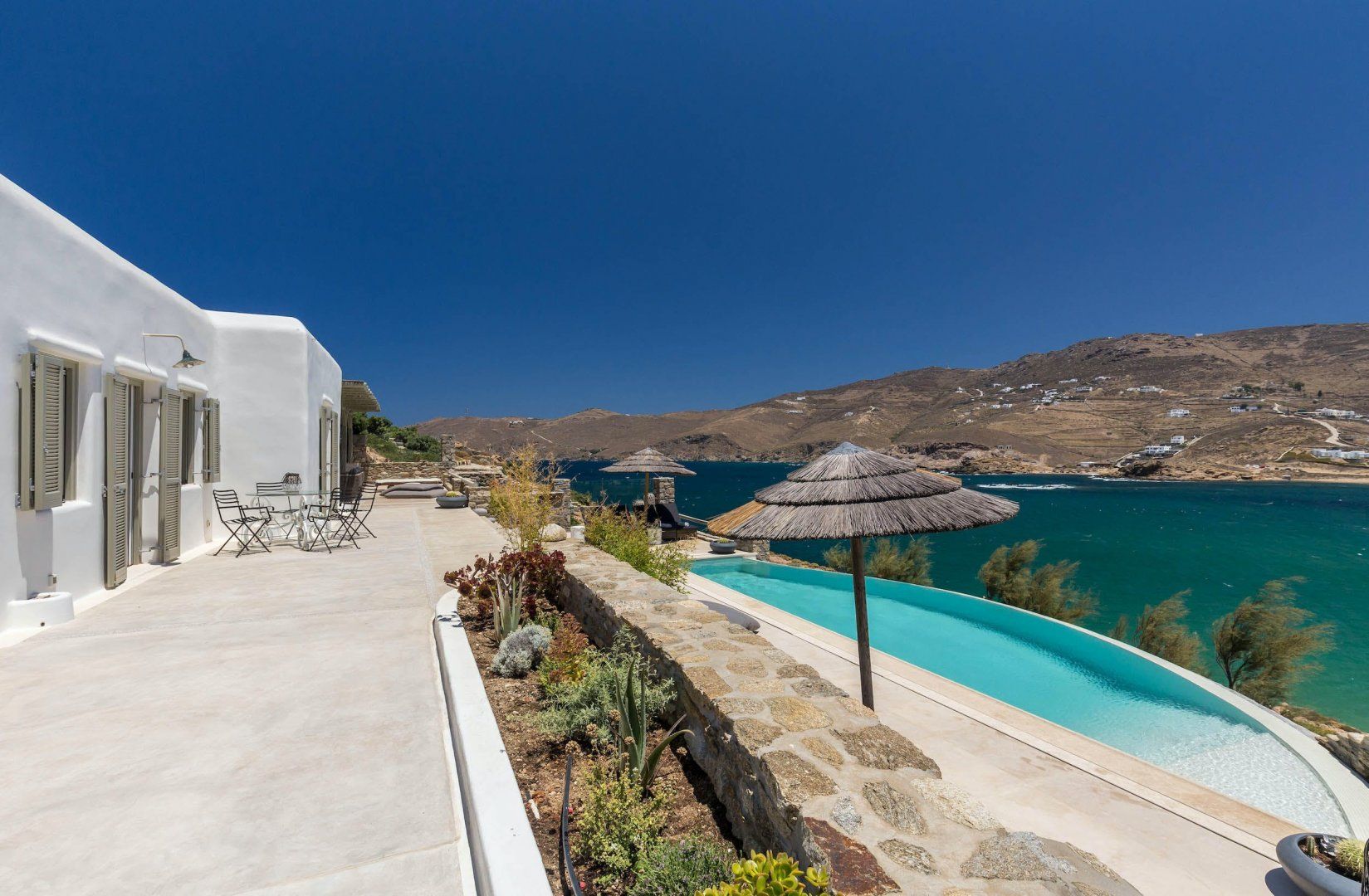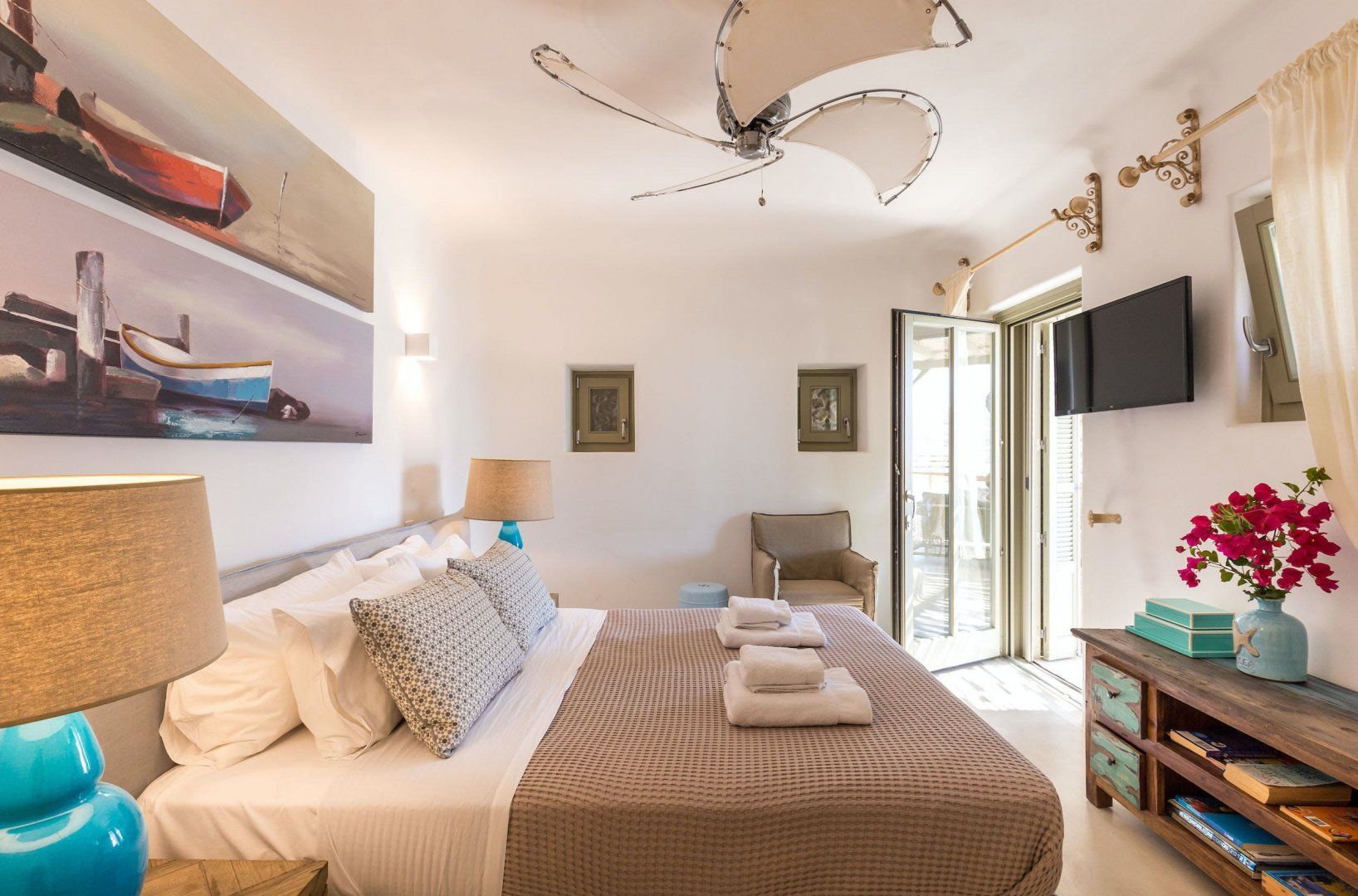 This gorgeous whitewashed Cycladic home is all soft curves and natural textures – the type of place that’s canonised in glossy design magazines. Outside, a bow-shaped infinity pool drops into Ftelia Bay – to which you have direct access via steps that lead from the lower terrace down to the beach. On the terrace above, we can imagine you cooking Greek feasts in the summer kitchen, with its long dining table and bamboo-clad pergola. Unwind with a tot of ouzo on the alfresco lounge set, surrounded by the sounds of chill-out tracks coming from the outdoor sound system. Inside, the rooms are finished with crisp white walls and neutral shades of grey and taupe. The bedrooms are cosy and inviting, with comfy double beds dressed in high-quality linens. And that’s not to mention the views – waking up to the sight of the Aegean through French doors is beyond compare.