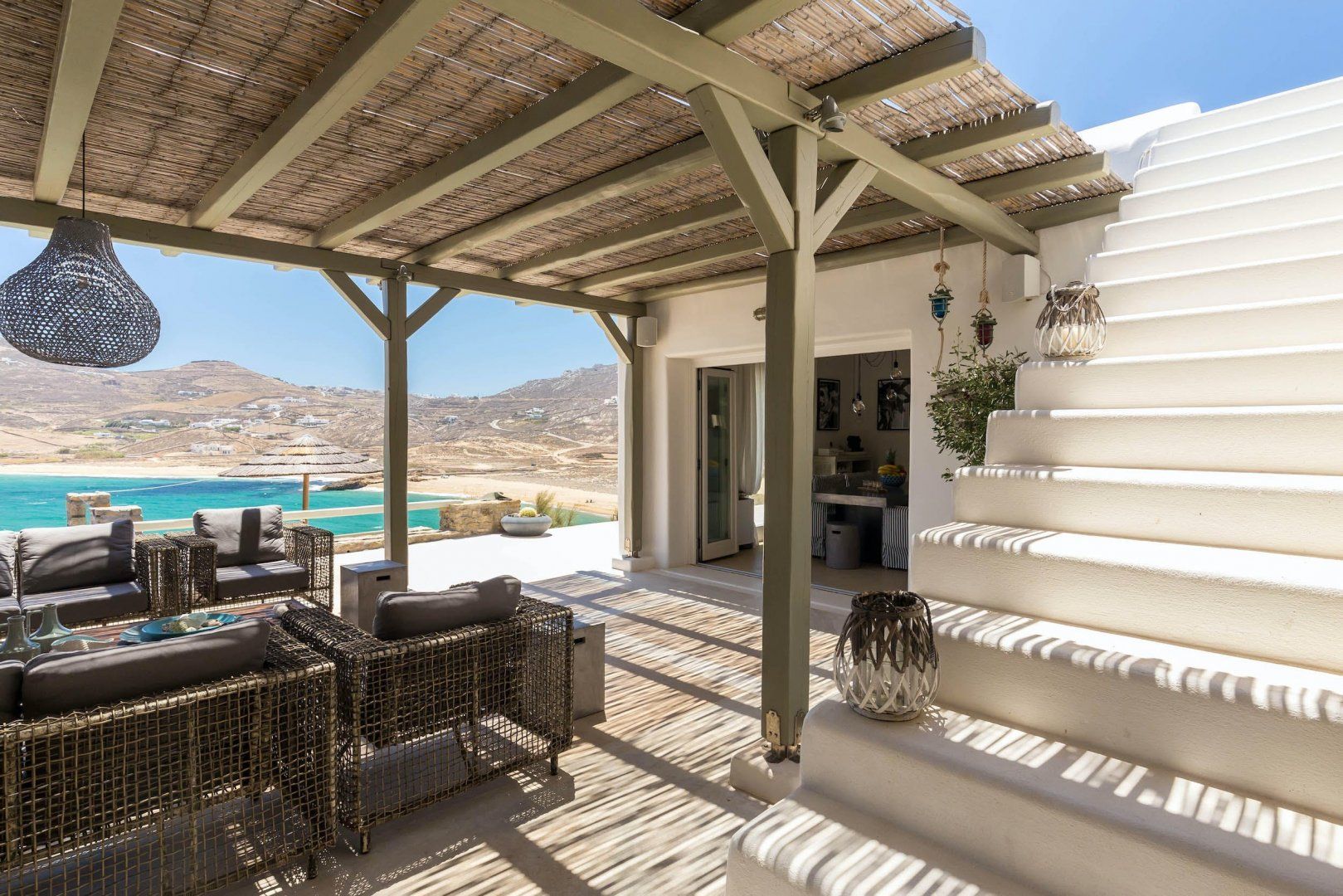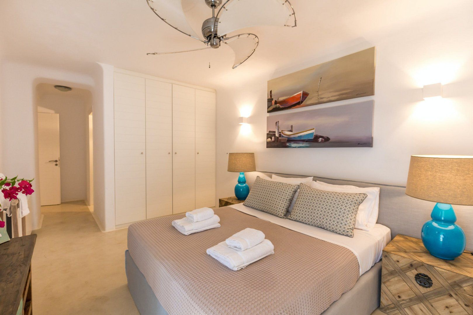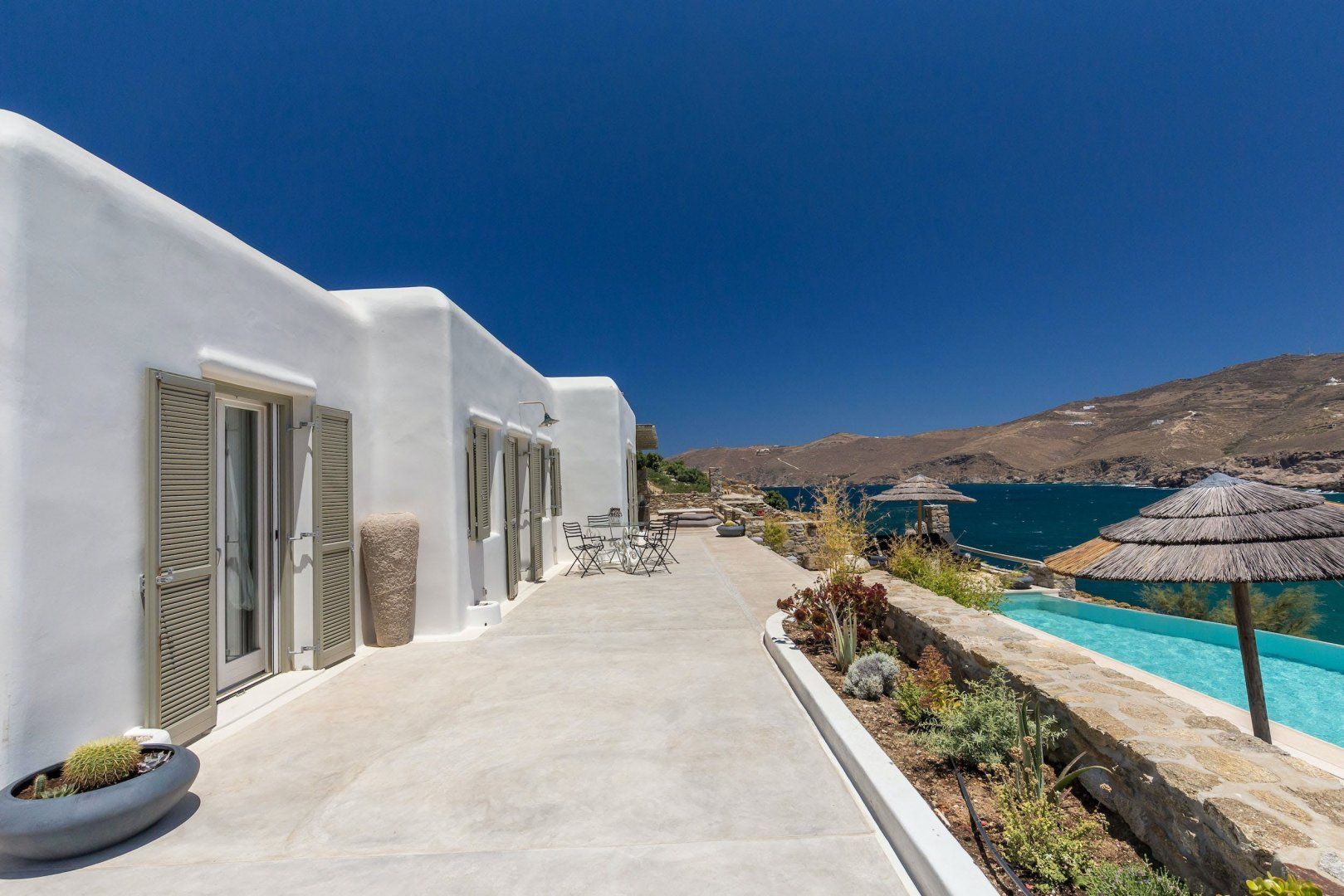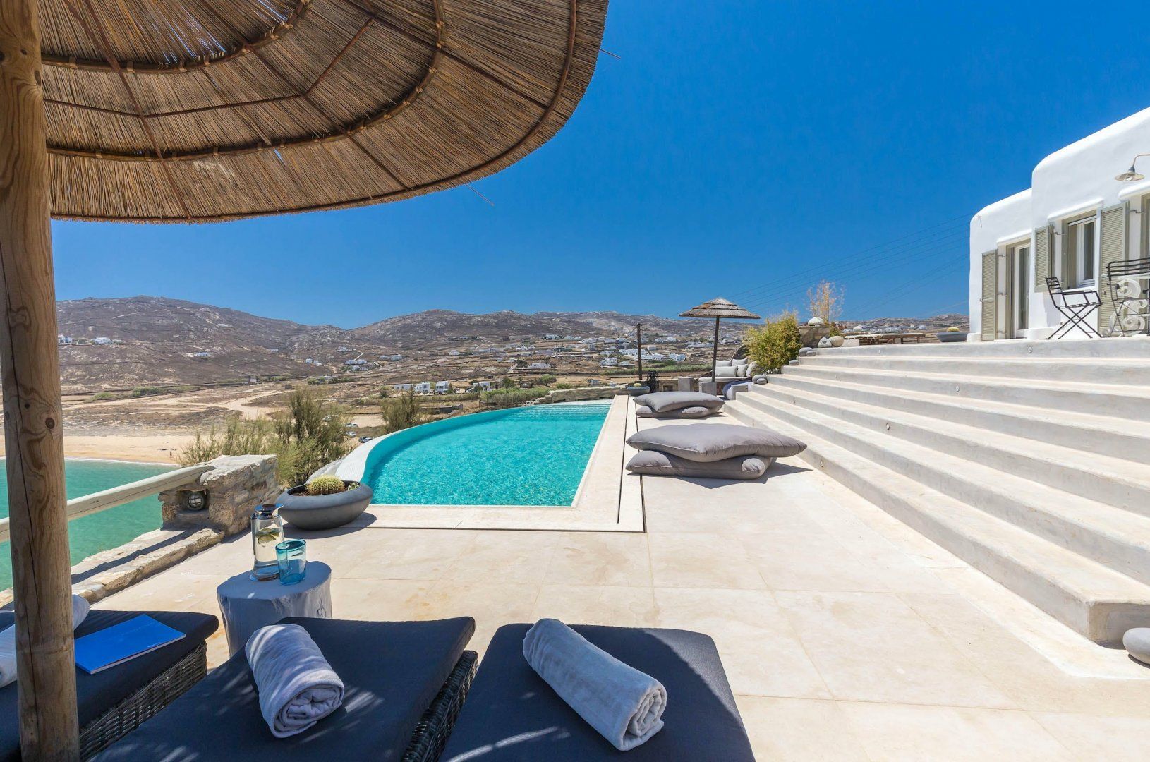 This gorgeous whitewashed Cycladic home is all soft curves and natural textures – the type of place that’s canonised in glossy design magazines. Outside, a bow-shaped infinity pool drops into Ftelia Bay – to which you have direct access via steps that lead from the lower terrace down to the beach. On the terrace above, we can imagine you cooking Greek feasts in the summer kitchen, with its long dining table and bamboo-clad pergola. Unwind with a tot of ouzo on the alfresco lounge set, surrounded by the sounds of chill-out tracks coming from the outdoor sound system. Inside, the rooms are finished with crisp white walls and neutral shades of grey and taupe. The bedrooms are cosy and inviting, with comfy double beds dressed in high-quality linens. And that’s not to mention the views – waking up to the sight of the Aegean through French doors is beyond compare.