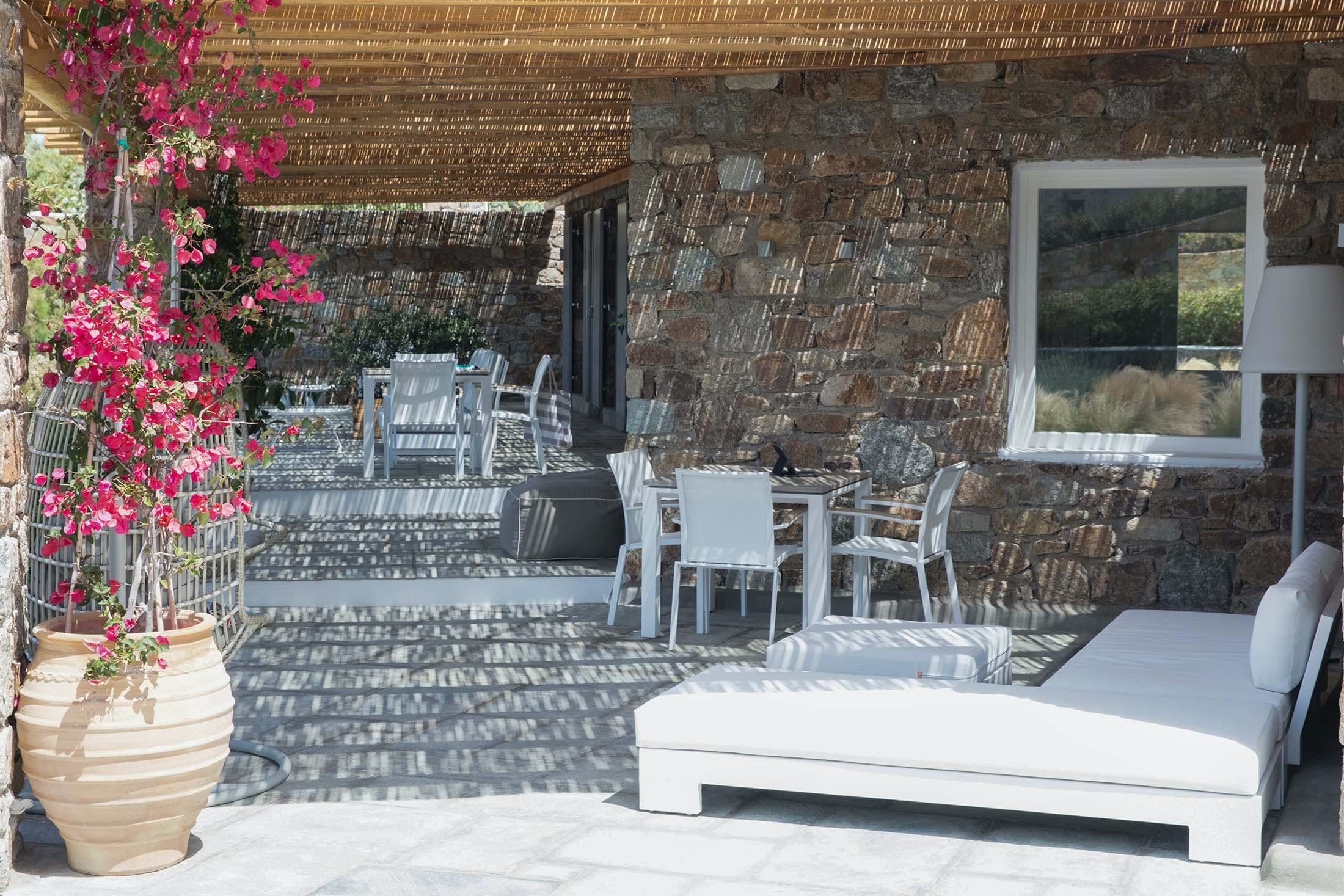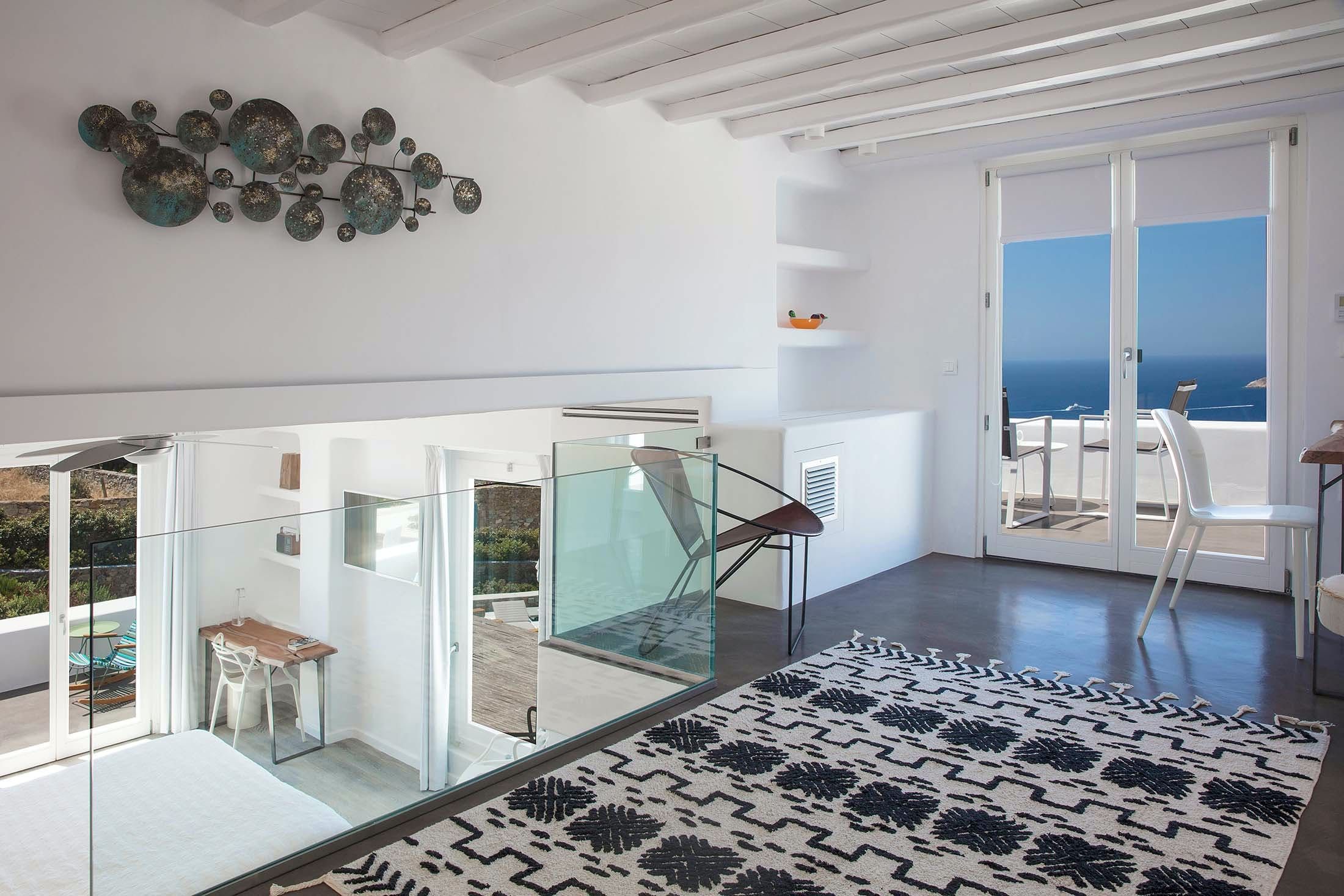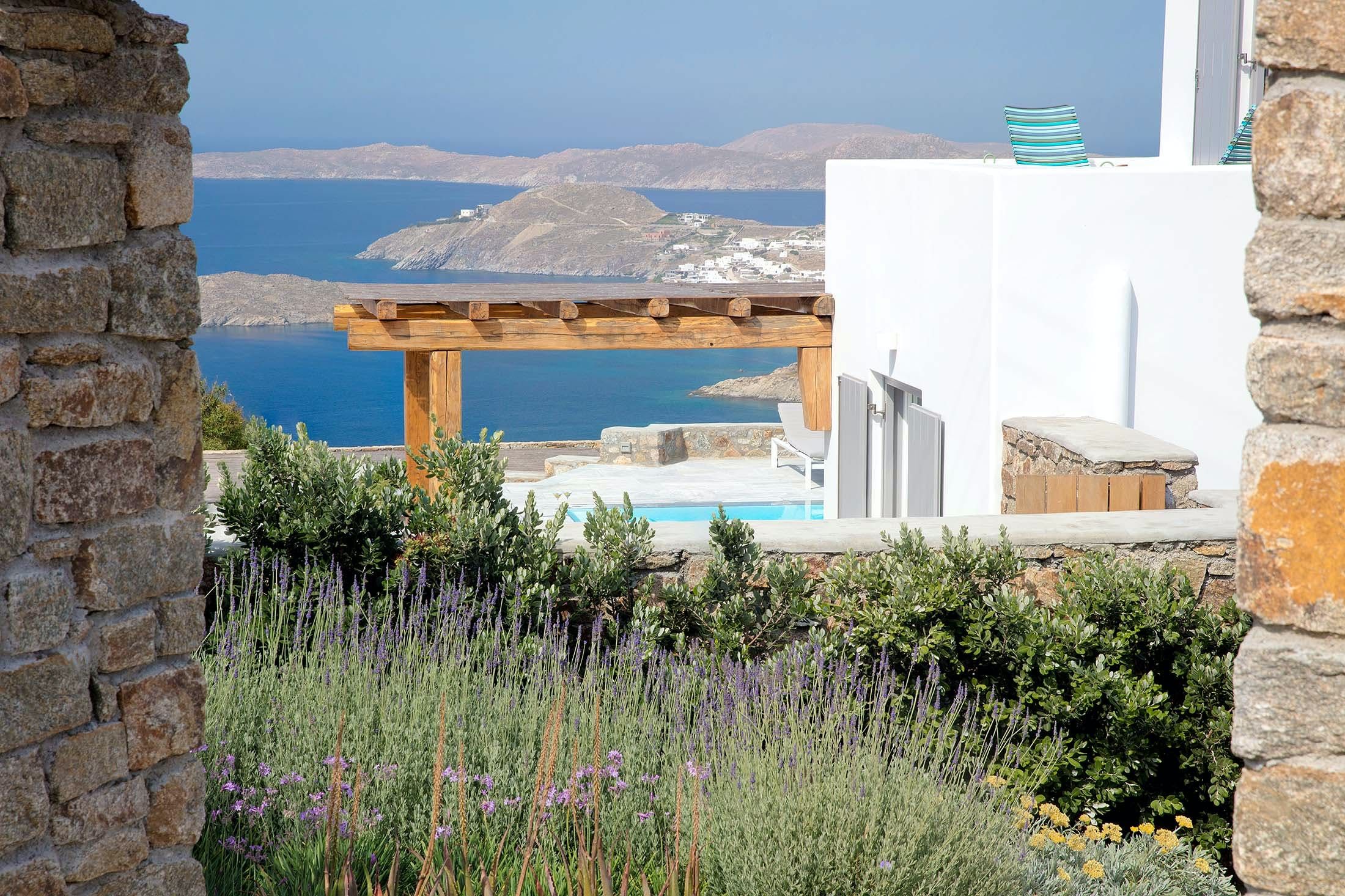This Mykonos estate sits in a serene spot near the cosmopolitan Psarou and is ideal for those looking for a memorable getaway. Featuring a main house, independent guest rooms and a separate annexe (perfect for staff), this villa is perfect for large groups who'd occasionally like to enjoy some extra privacy. The master suite occupies three storeys, while the rest of the property is spread across different levels, so be prepared to climb some stairs. Stepping outside, you'll find a pristine pool and multiple terraces for lounging with a zesty cocktail. On days you’d prefer to be at the beach, Paralia Psarou is only a short drive away.