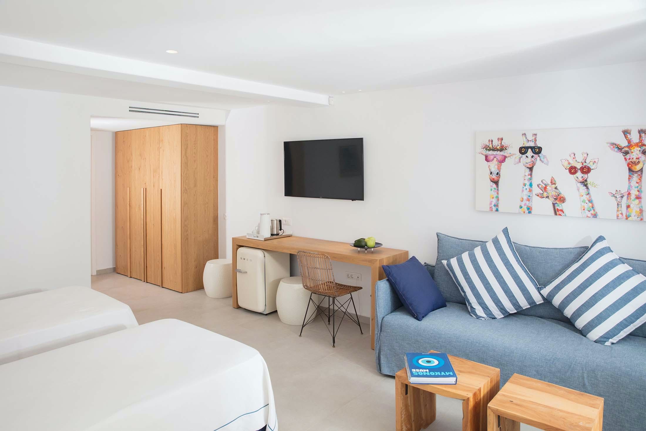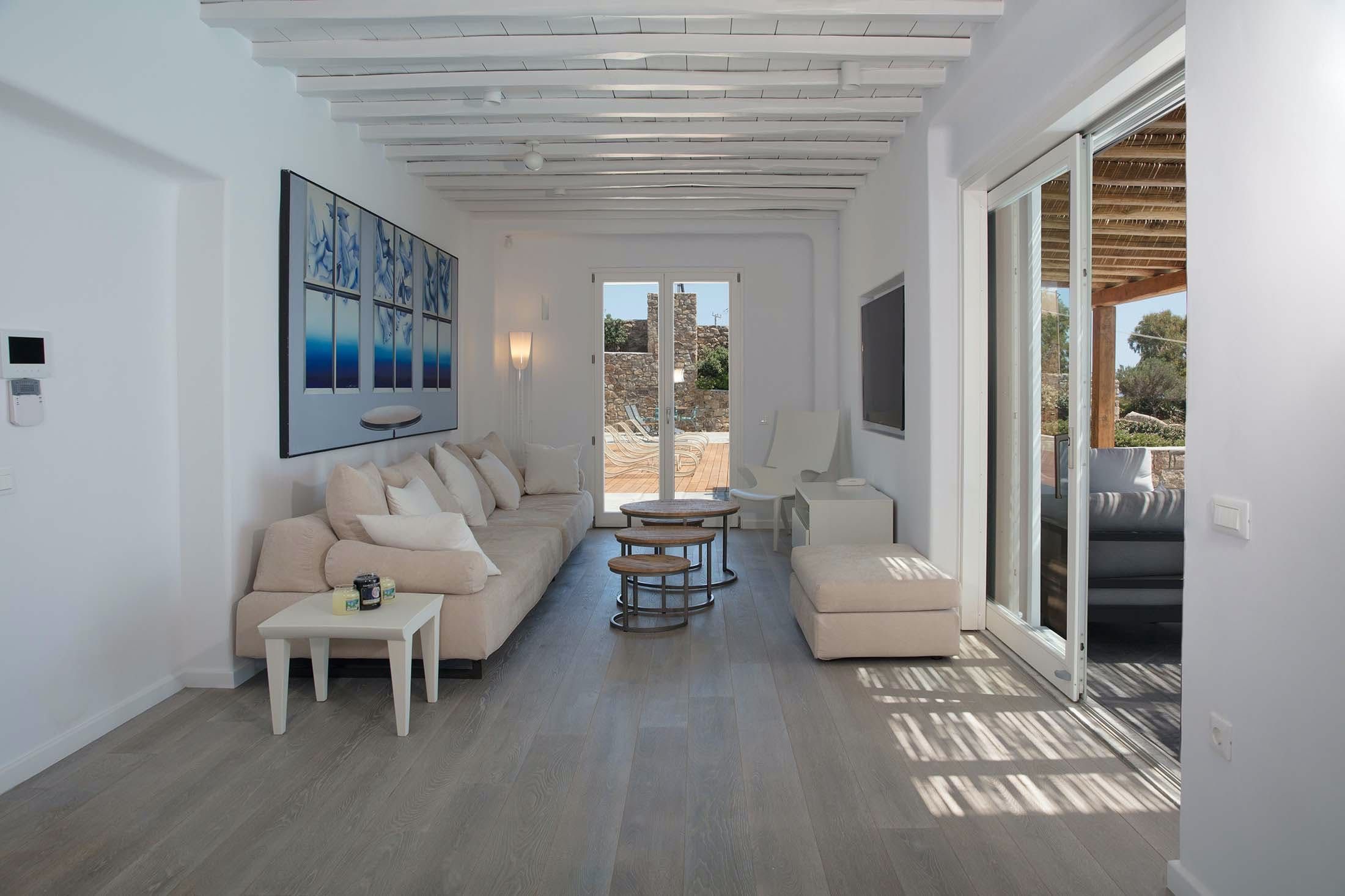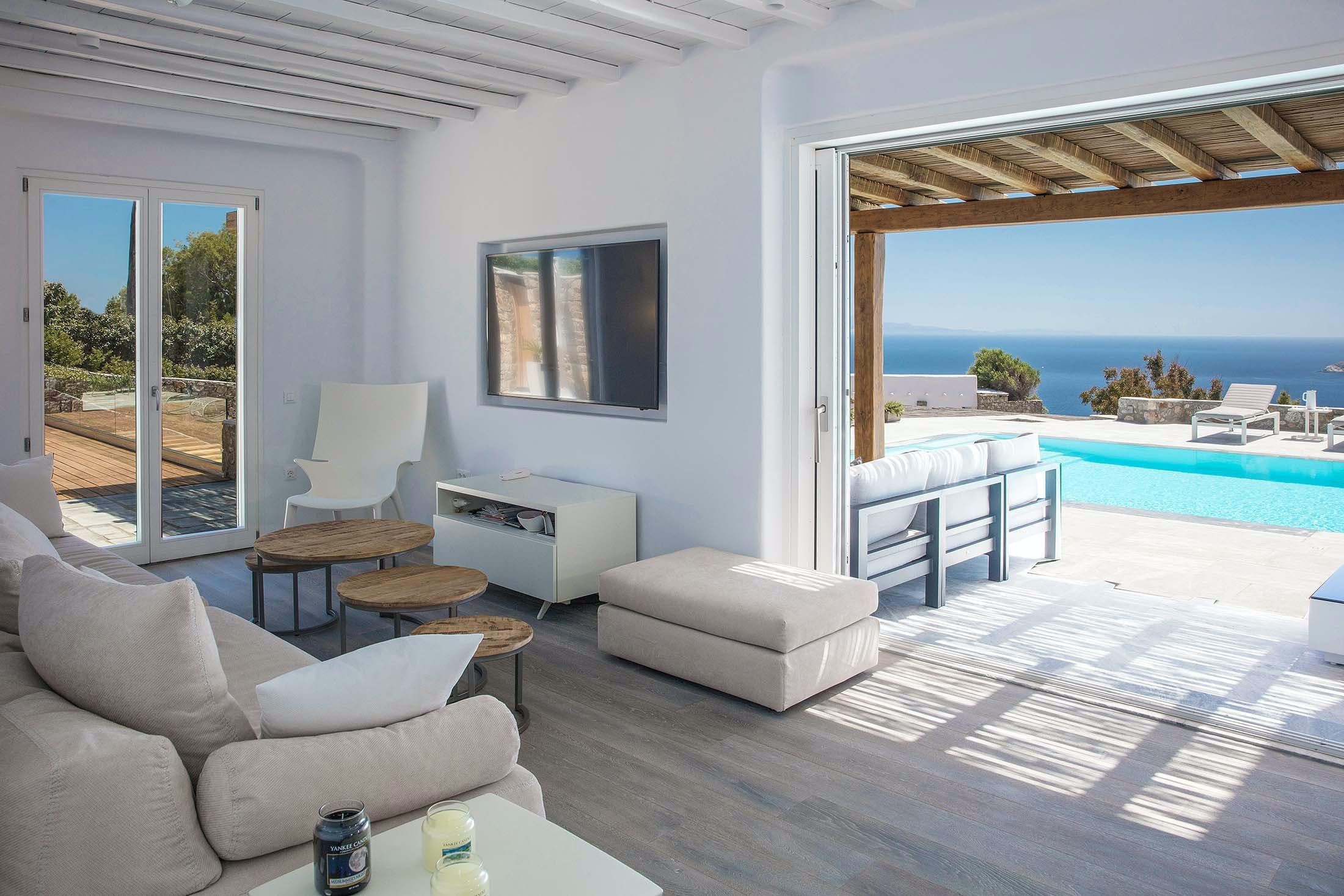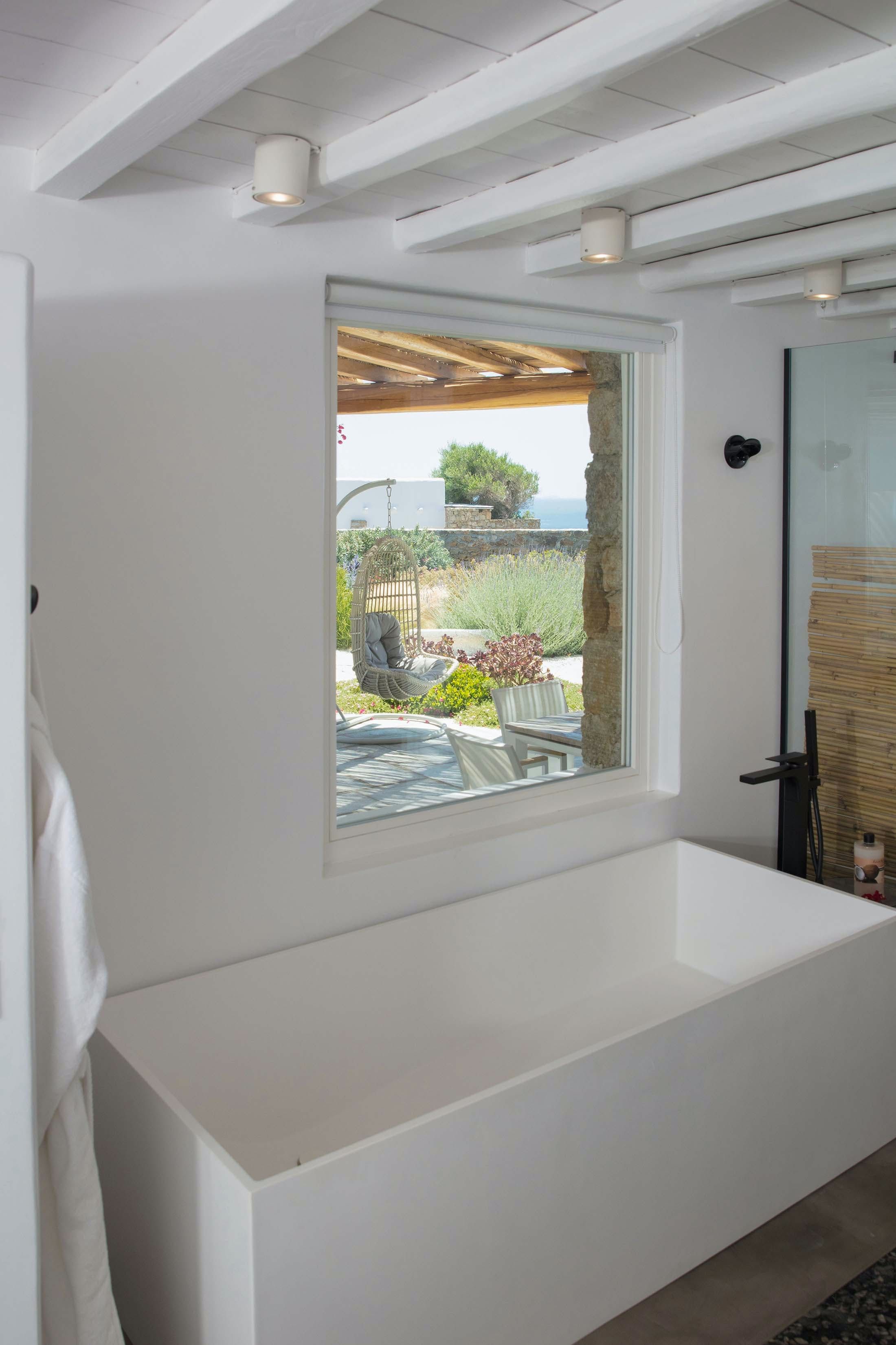 This Mykonos estate sits in a serene spot near the cosmopolitan Psarou and is ideal for those looking for a memorable getaway. Featuring a main house, independent guest rooms and a separate annexe (perfect for staff), this villa is perfect for large groups who'd occasionally like to enjoy some extra privacy. The master suite occupies three storeys, while the rest of the property is spread across different levels, so be prepared to climb some stairs. Stepping outside, you'll find a pristine pool and multiple terraces for lounging with a zesty cocktail. On days you’d prefer to be at the beach, Paralia Psarou is only a short drive away.
