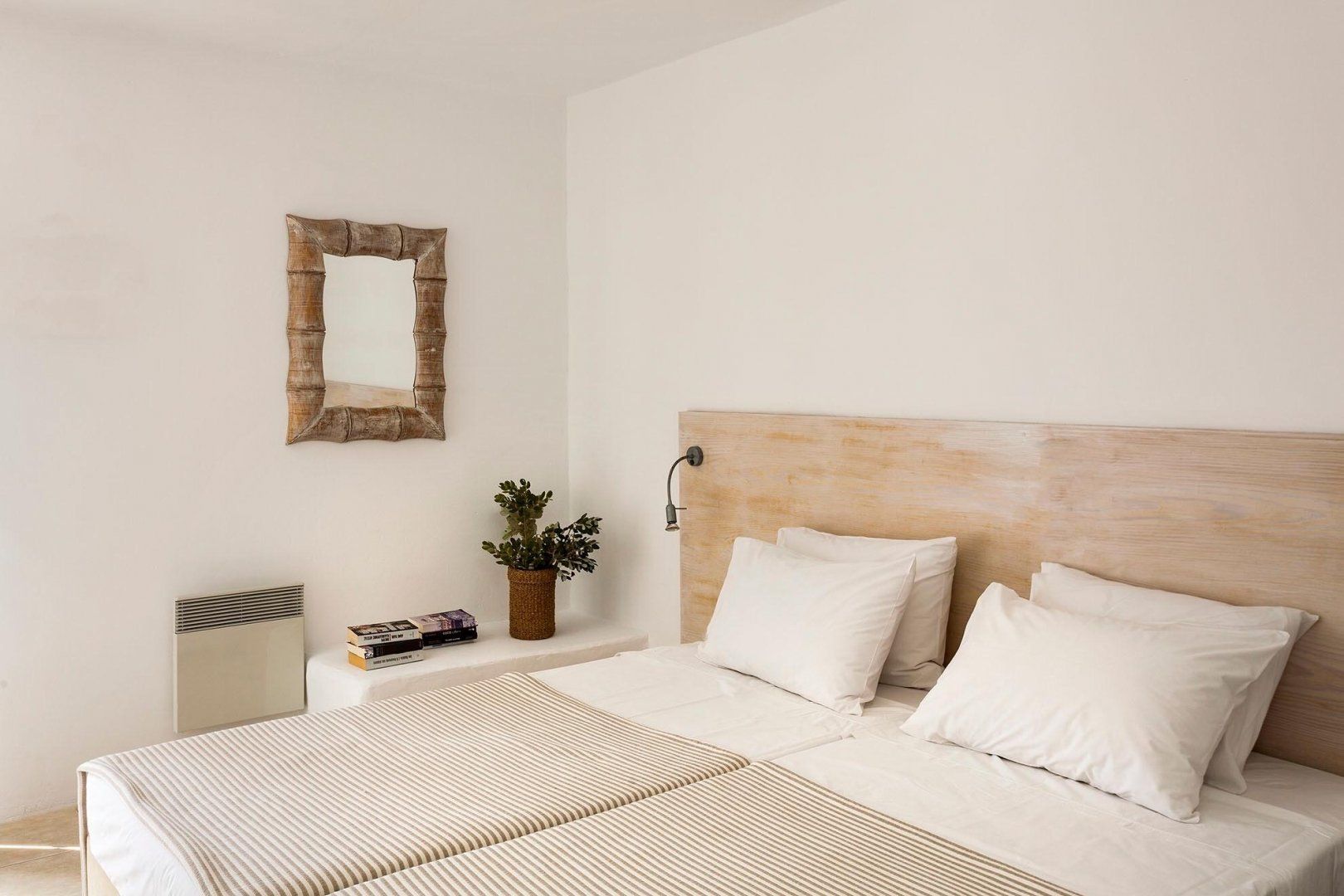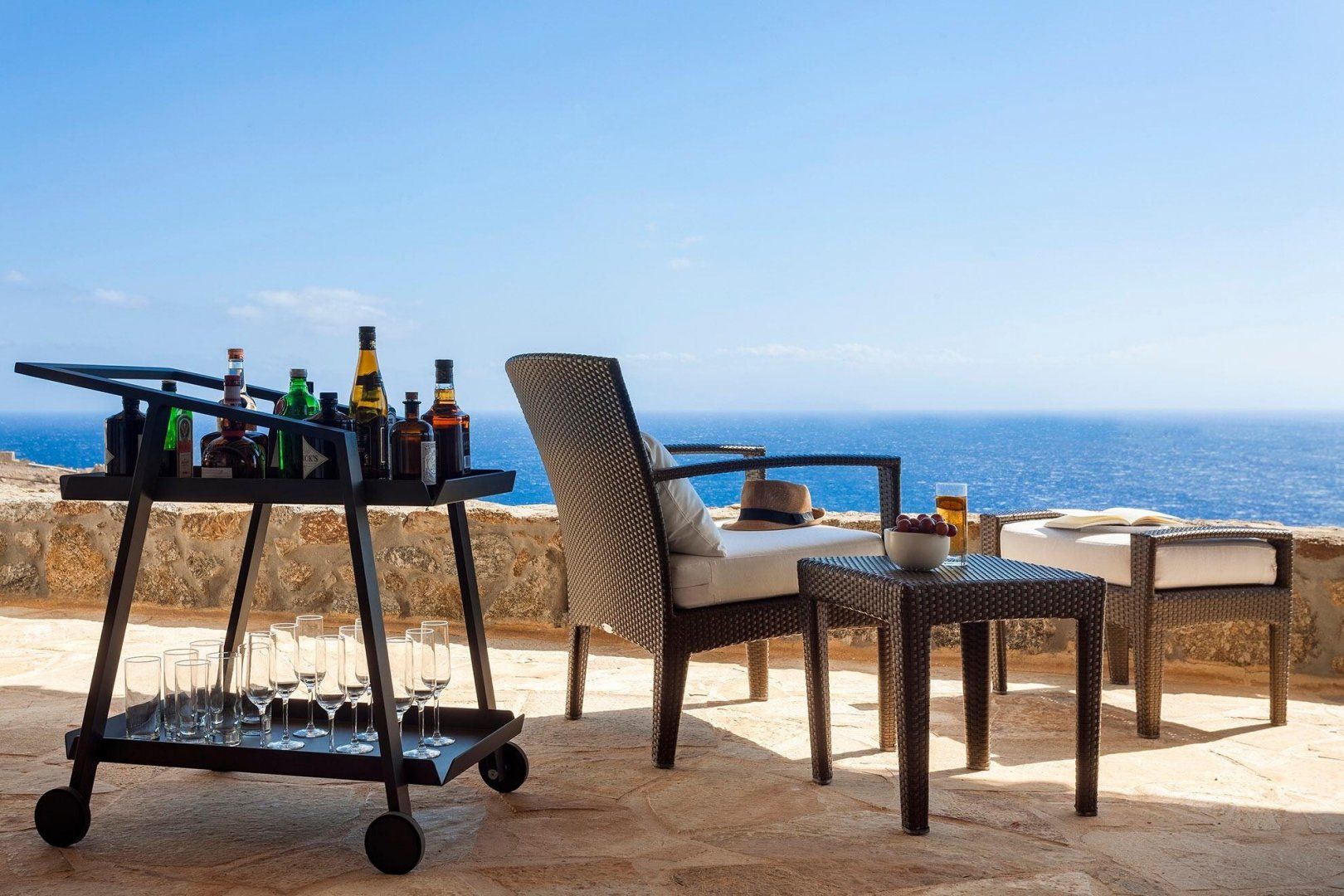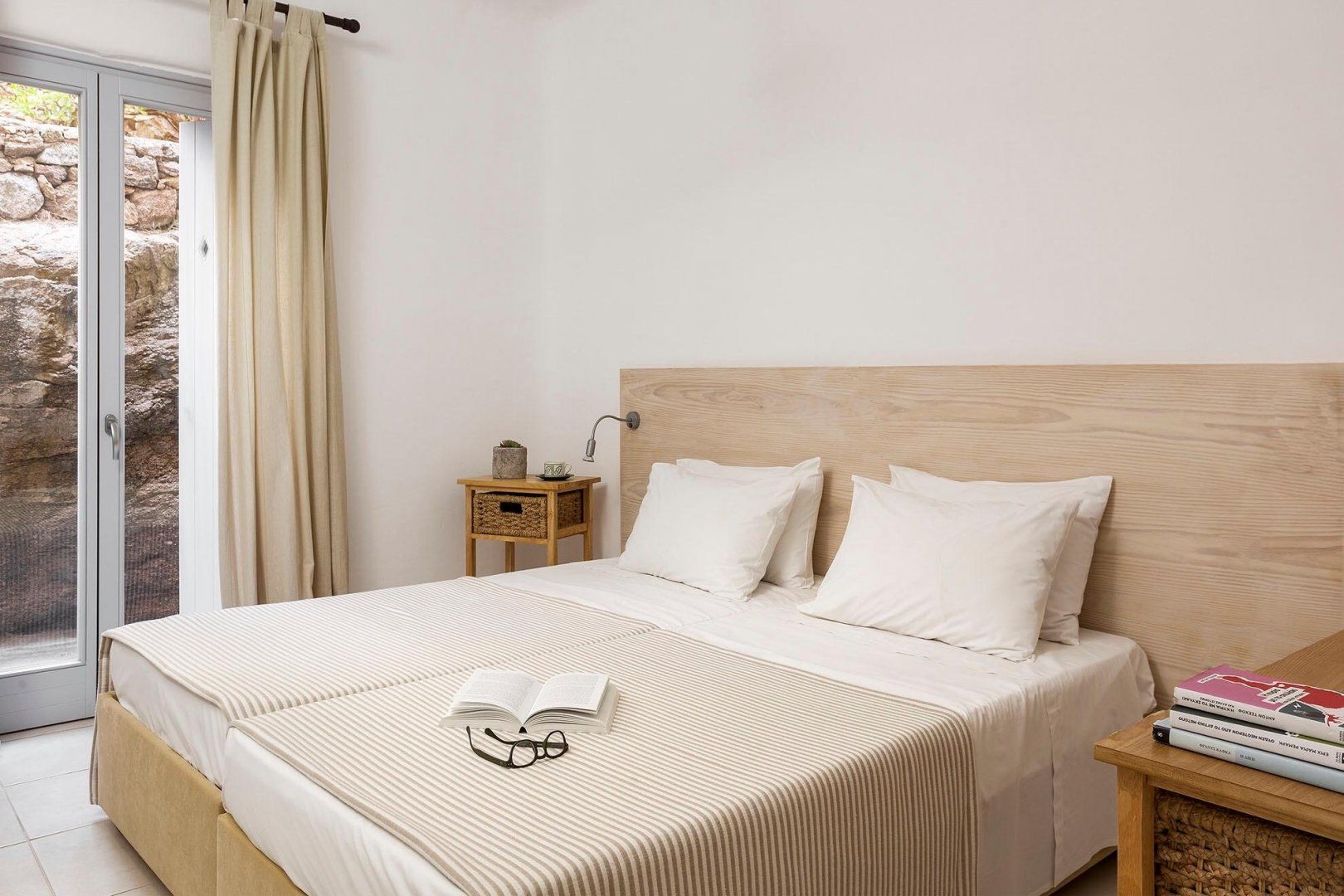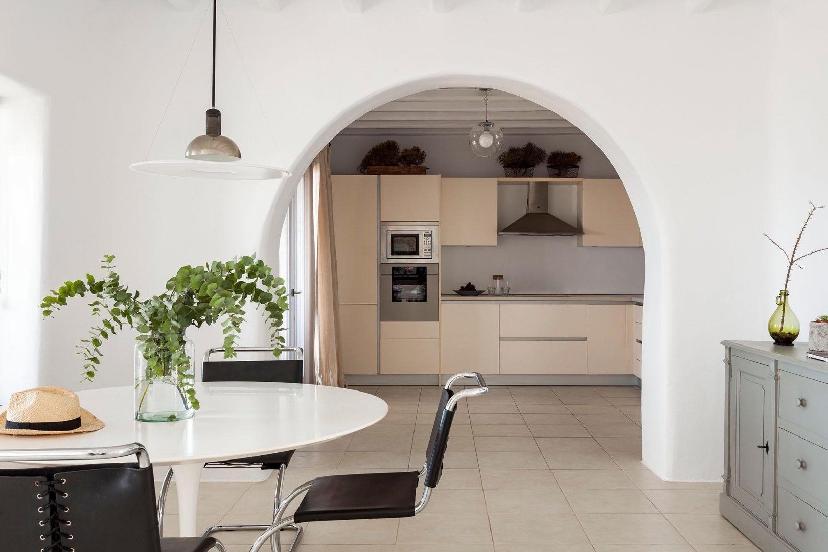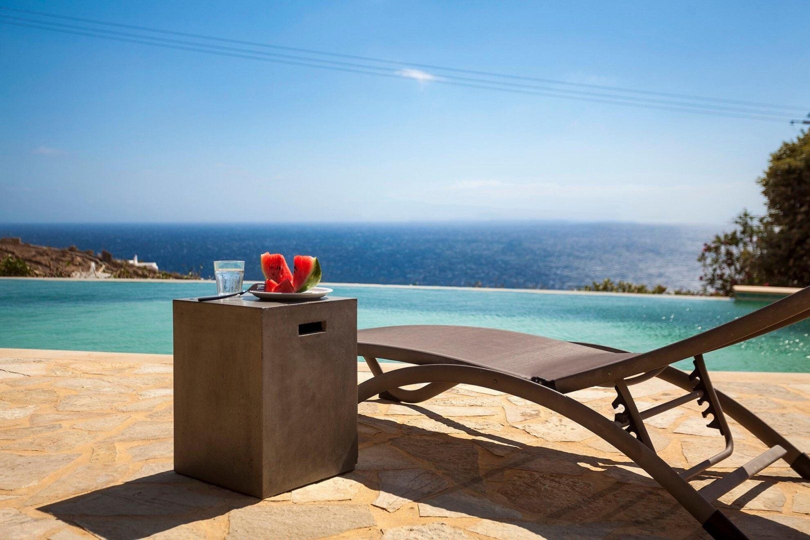 The villa is built in the traditional Cycladic style, with thick, white-washed walls and a flat roof. This rustic charm continues inside, thanks to the natural textures and soothing colour scheme that will make you feel at home right away. The outside space is just as fabulous – the garden and patio offer stunning sea views, which you can admire from the comfort of a sun lounger. When the temperature rises, you can float in the shimmering pool, or hang out under the shady pergola. And, as evening rolls around, take the opportunity to mix your favourite cocktail before you fire up the barbeque for an alfresco feast.