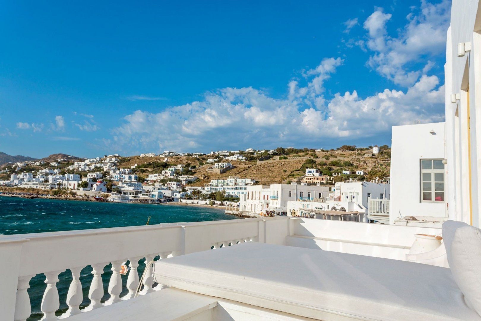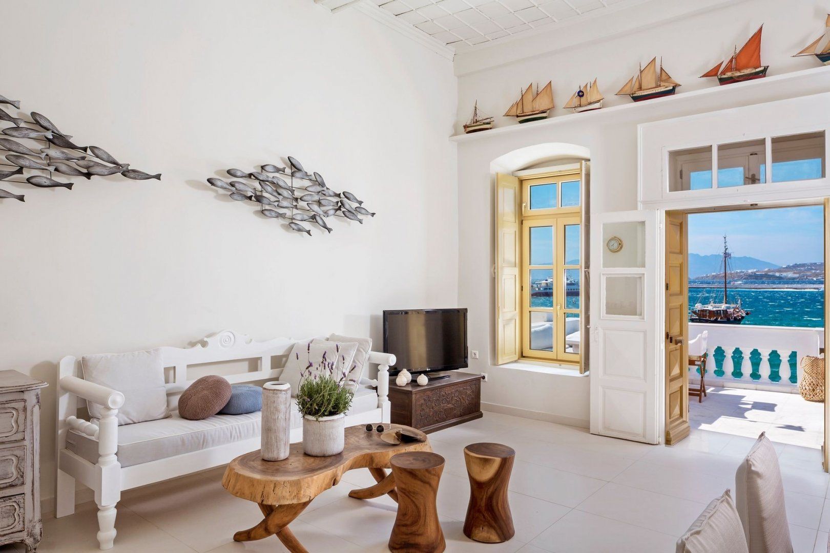 This waterfront villa in Mykonos Town boasts panoramic views across the surrounding area and old port. Spread across two floors, this well-designed space is ideal for a group of friends or family who want to be in the center of the action. Guests can enjoy sunsets from the large private balcony – complete with outdoor furniture for extra comfort and alfresco dining. While there is a fully-equipped kitchen here, you may want to head out for meals as you'll be close to a number of restaurants. There are lots of local amenities on your doorstep but we suggest a car if you'd like to explore more of the island – Agios Stefanos Beach and the New Port are less than 4km from the home.