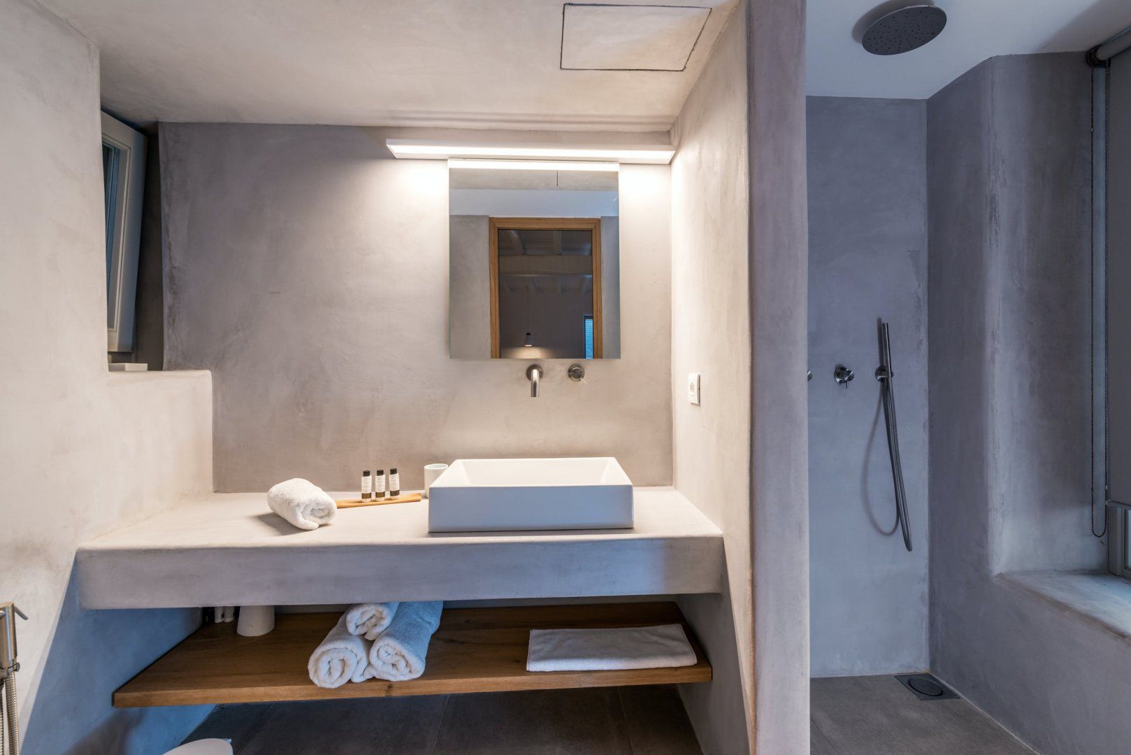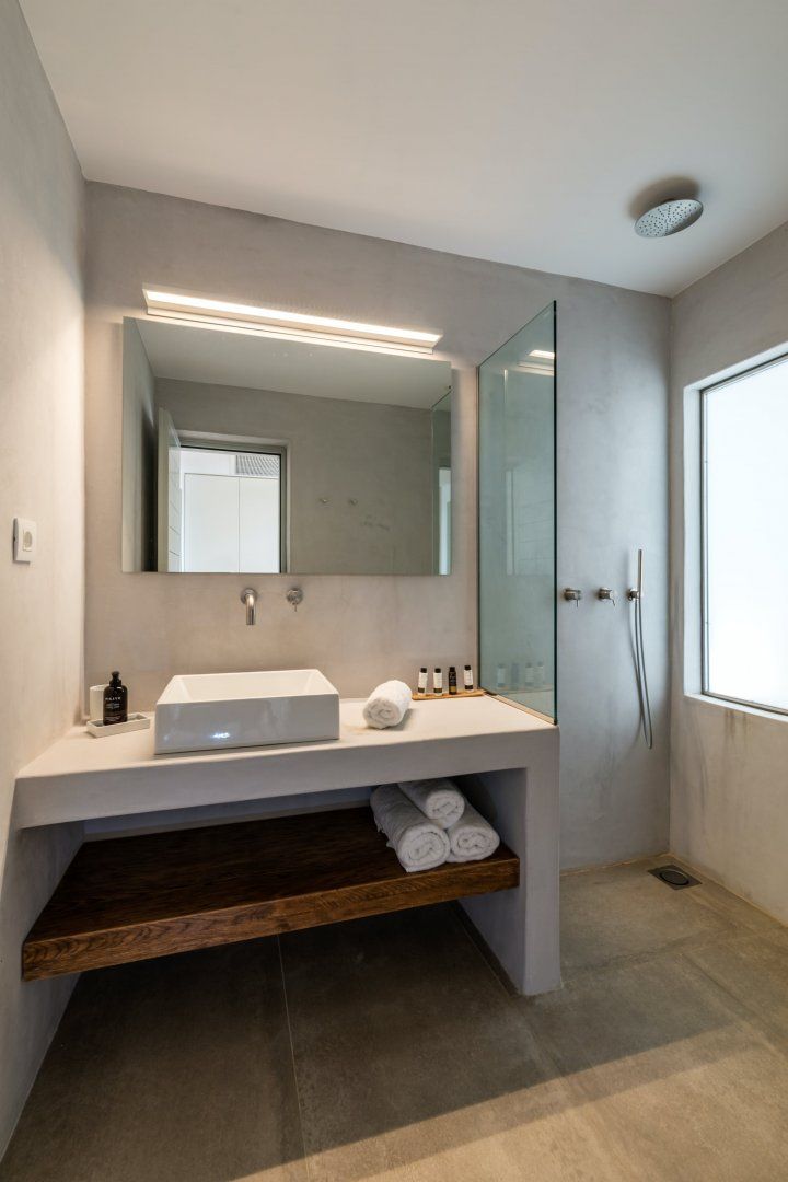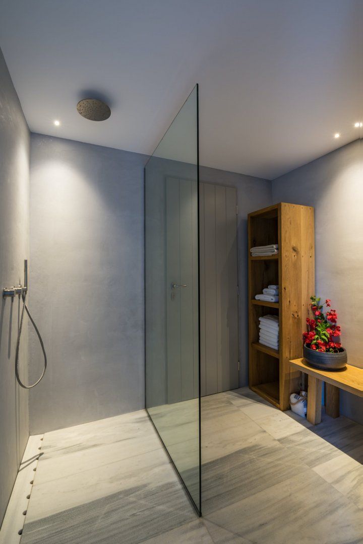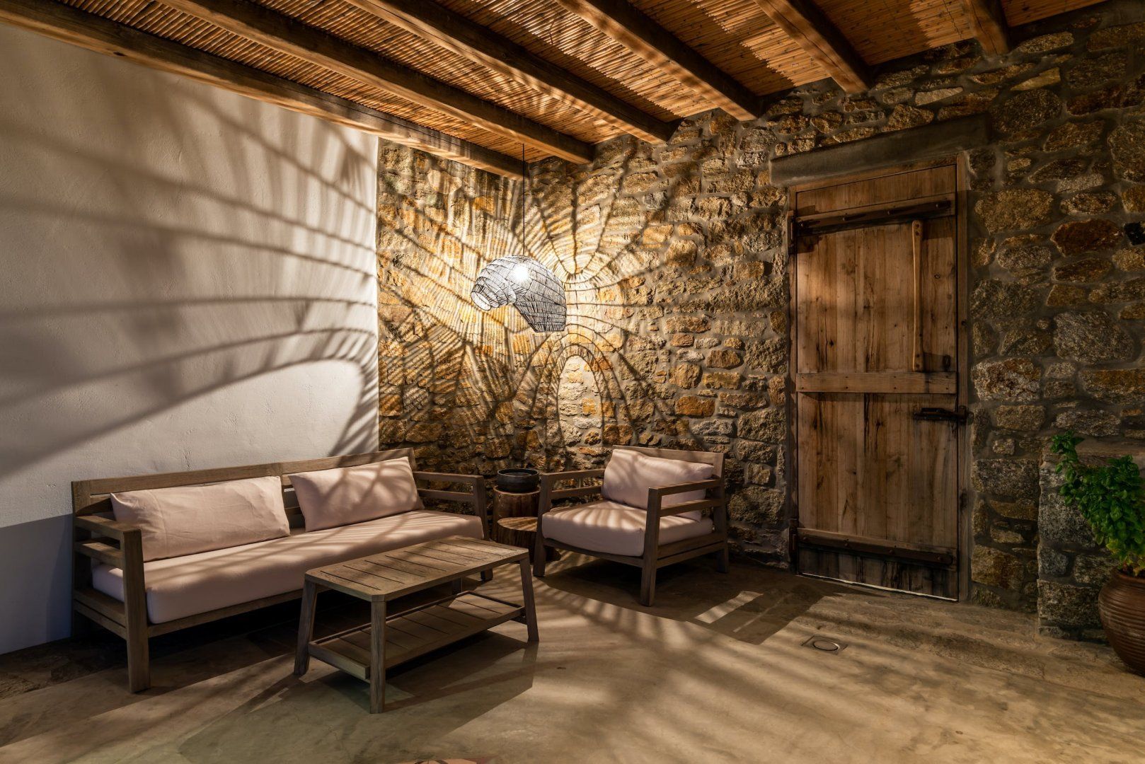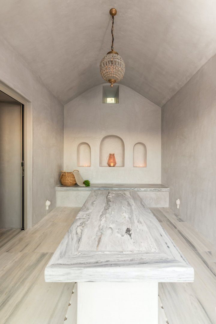 Forget beach clubs, glitzy bars and being seen, this beautiful home is showing us a quieter side of Mykonos. A ten-minute drive from Ftelia beach, the plot is carved into an arid hillside, giving you beautiful views of the Aegean ocean and the town below from every angle. Built in the traditional Cyclades style, the home incorporates white-washed and stone walls with French doors to create big, breathy rooms. A plush L-shaped sofa sits under wooden beams - and with sliding doors across one wall, it may be hard to pay attention to the TV with the stunning vistas in front of you. Arches, rather than doors, connect living areas giving an easy sense of flow in the home, without it feeling too cramped. Beds face towards the sea too, though are split into various outbuildings to give some privacy. Even the gym, with its floor-to-ceiling windows, makes working out a cinch thanks to the background scenes. Step outside to really soak up the panoramas, whether it's in the infinity pool, the plunge pool, or the hot tub.