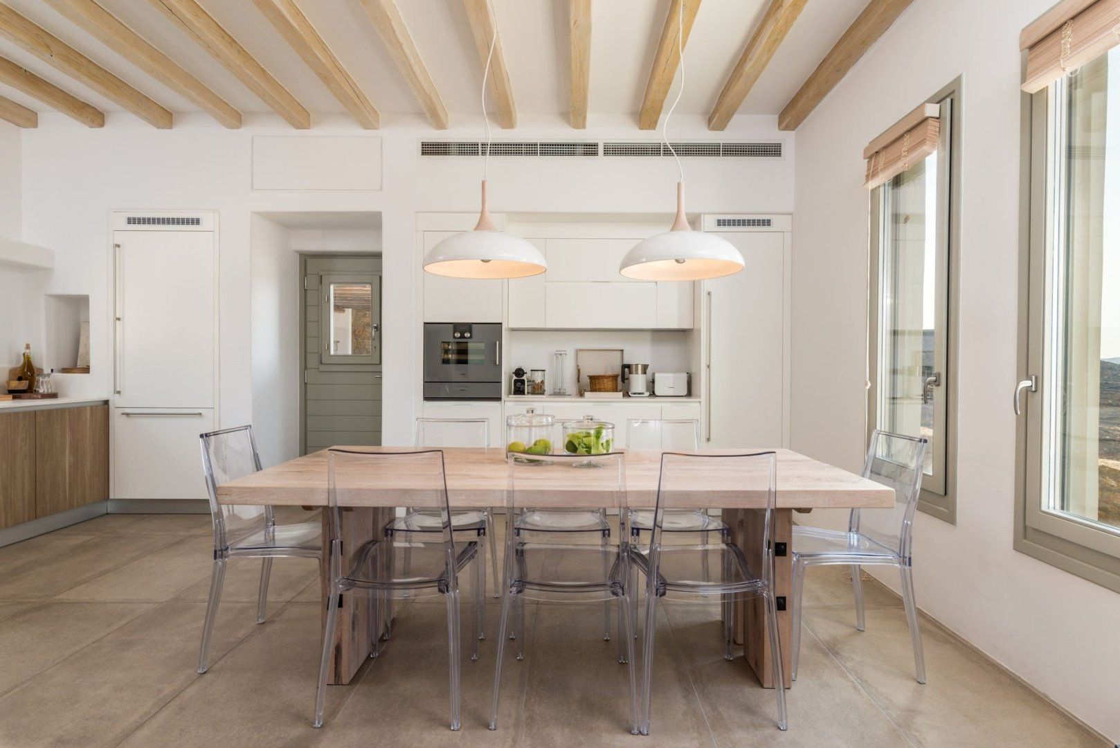 Outside, guests can spend their days whiling away the hours in the azure waters of the private pool, topping up their tan on comfy sun loungers, or cooking up a storm at the barbecue and wood oven, all to a symphony of sea views and Mediterranean rays. If you can pry yourself away from this stunning home, there are a wealth of things to see and do around the island, including a day soaking up the history and culture of the town centre of Mykonos, dining on local delicacies and looking for the perfect souvenir, all in just a ten-minute drive from home. Ftelia beach is little more than a twenty-minute walk away, and is ideal for sandy beach days, and enjoying the surf.