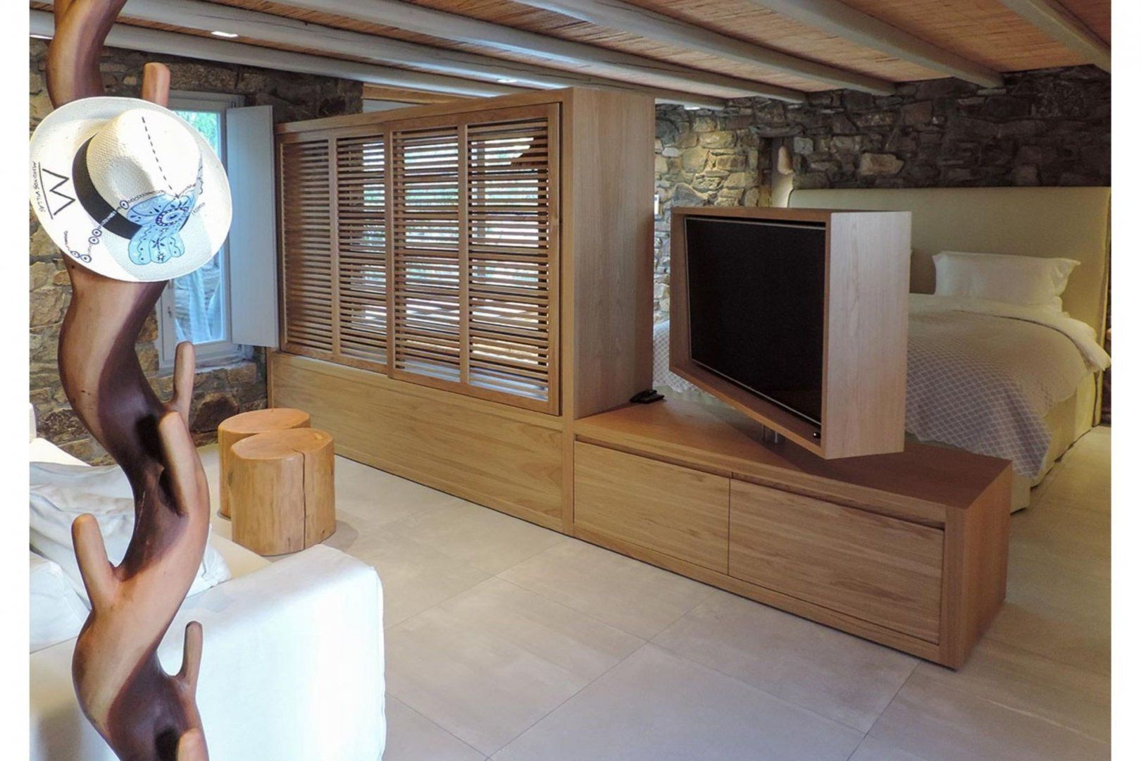 Glistening turquoise water, clean white lines and breathtaking scenery have this villa oozing pure, luxurious relaxation that will have guests drifting off into holiday paradise. Nestled high above the beach amidst the rocky headlands of one of Greece’s best-loved islands, views don’t get much more panoramic than this. You’ll be spoilt for choice with how to while away your time at this stunning Mykonos villa – we’re thinking a flick through your favourite book out on the sun loungers, a quick workout at the private gym, a sumptuous Grecian barbecue out by the alfresco dining area, or soaking in the infinity pool overlooking lush gardens and the Aegean Sea.