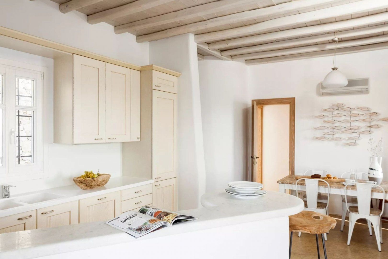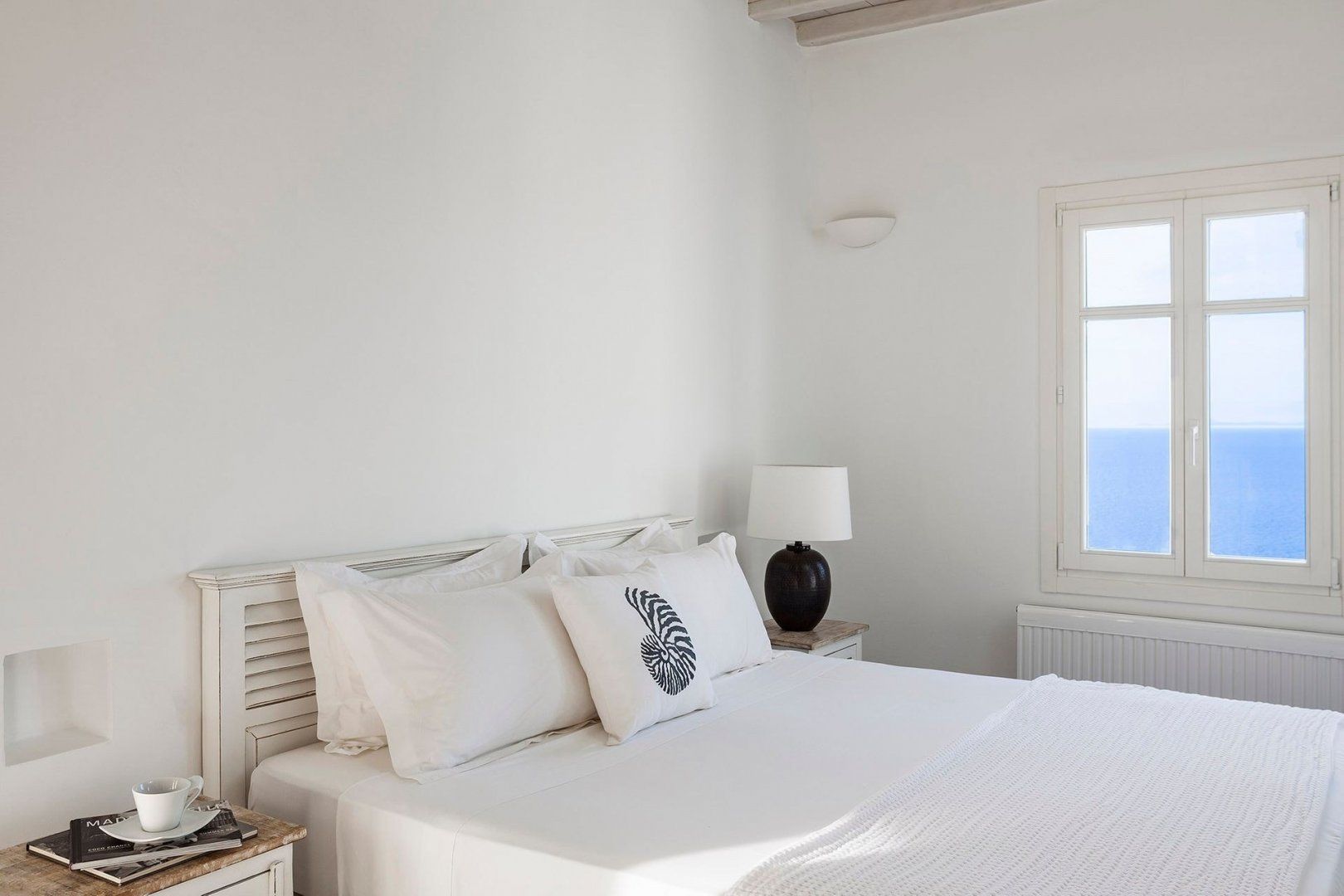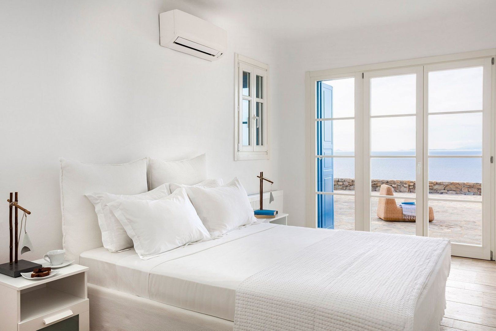 Soothing interiors and sparkling white-washed walls keep that relaxing atmosphere going even when you're inside. Fusing classic Cycladic architecture with modern comforts and minimalist design, the result is a bright and traditional home that has everything you'll need – from a Nespresso machine and Netflix to sumptuous beds and sleek bathrooms.