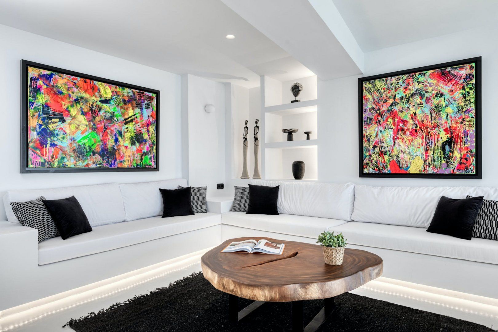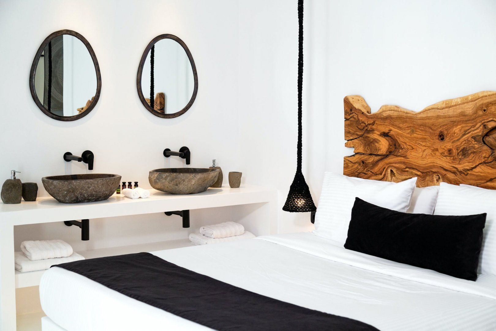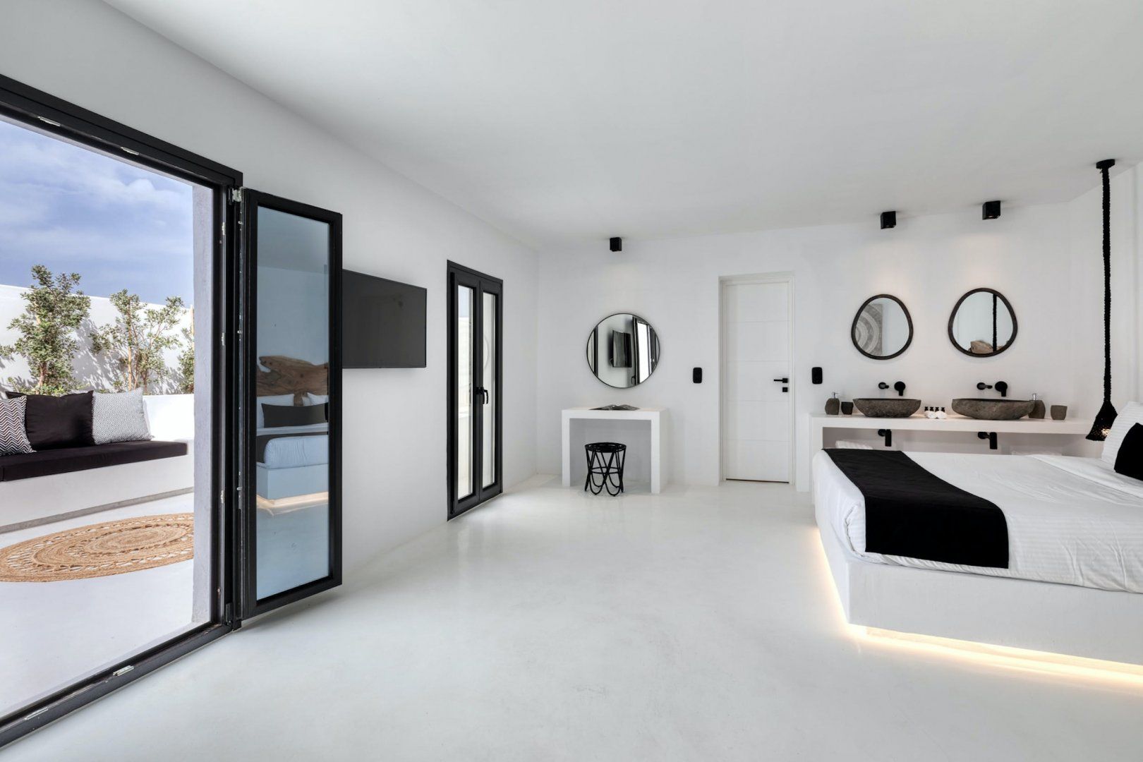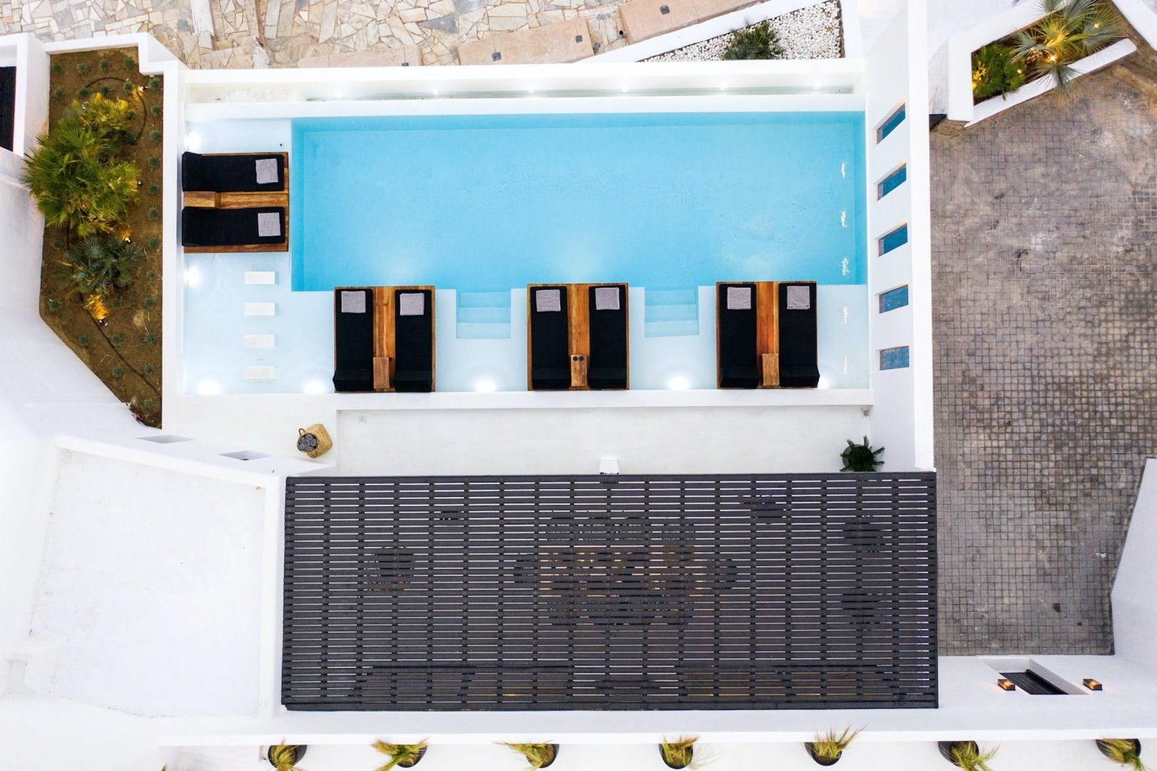 A Poseidon’s palace, right on the sea’s edge, this villa’s panoramic views are fit for the gods. You’re spoilt for choice when it comes to places to relax with luxurious lounge areas, multiple jacuzzis, and an incredible infinity pool, even your own private walkway down to the famous Psarou Beach. Each and every guest is made to feel special, with en-suite, king-sized bedrooms for all, but the master edges it with its private terrace and hot tub access. In the sleek black and white living area, sweeping glass windows take you out onto a grand terrace, where an extensive dining table sits in the shade of the pergola, overlooking the pool. To bask in that Mediterranean sunshine, loungers sit like mini islands on the pool’s surface, surrounded by turquoise water. An upstairs terrace offers a corner sofa and viewpoints of an even higher standard. Stylishly minimalist in its monochrome, open-plan décor, this home most certainly maximises its unrivalled location perched on Mykonos’ coast.
