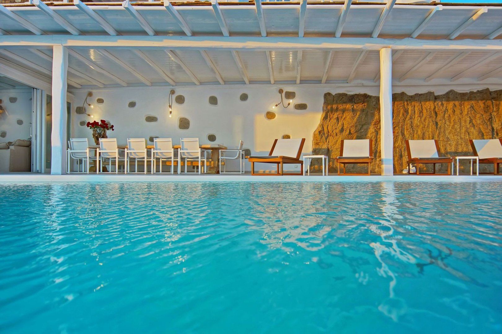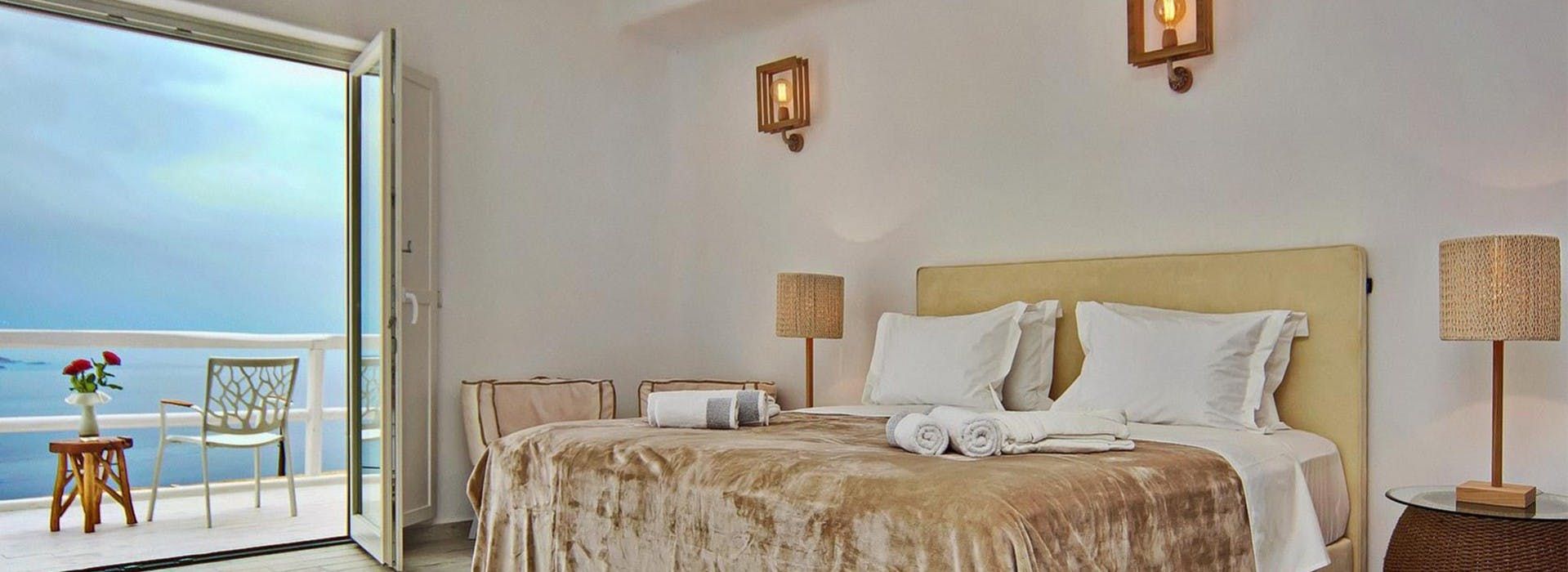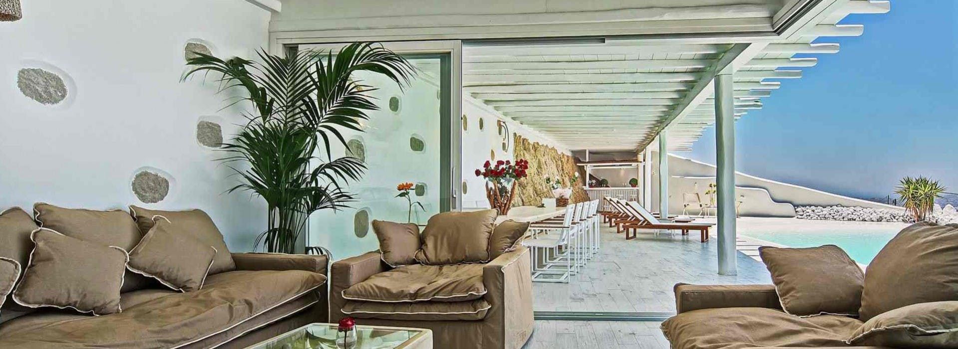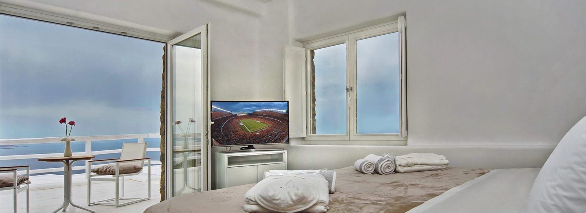 Sometimes, despite convention and societal norms, we fall madly in love with a swimming pool. Looking at this perfect, infinite rectangle of turquoise water blending with the Aegean Sea, we think we’ve found our new beau. It’s the view that seals it; taking in the dramatic Mykonos coastline and islands floating on the horizon from this hilltop perch. The rest of the villa is equally as impressive.