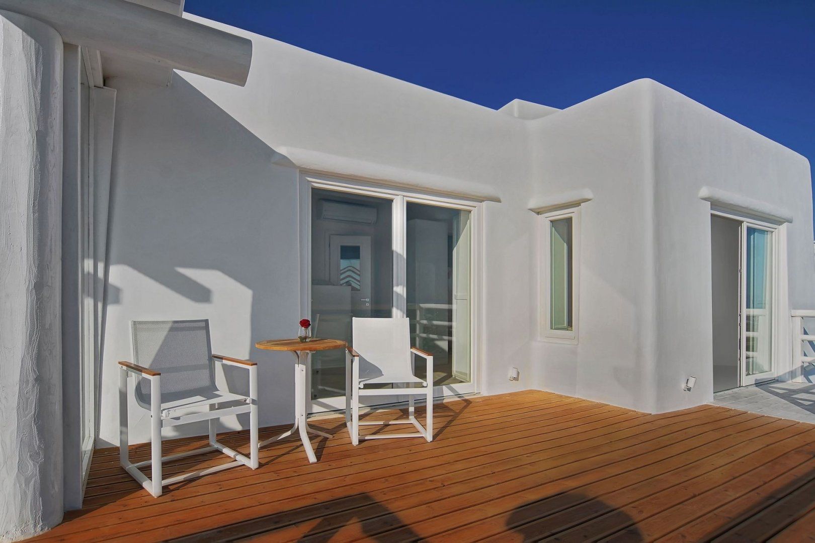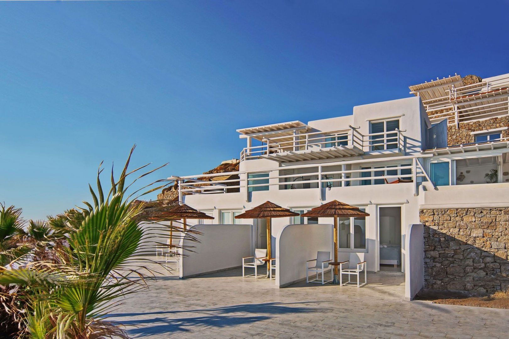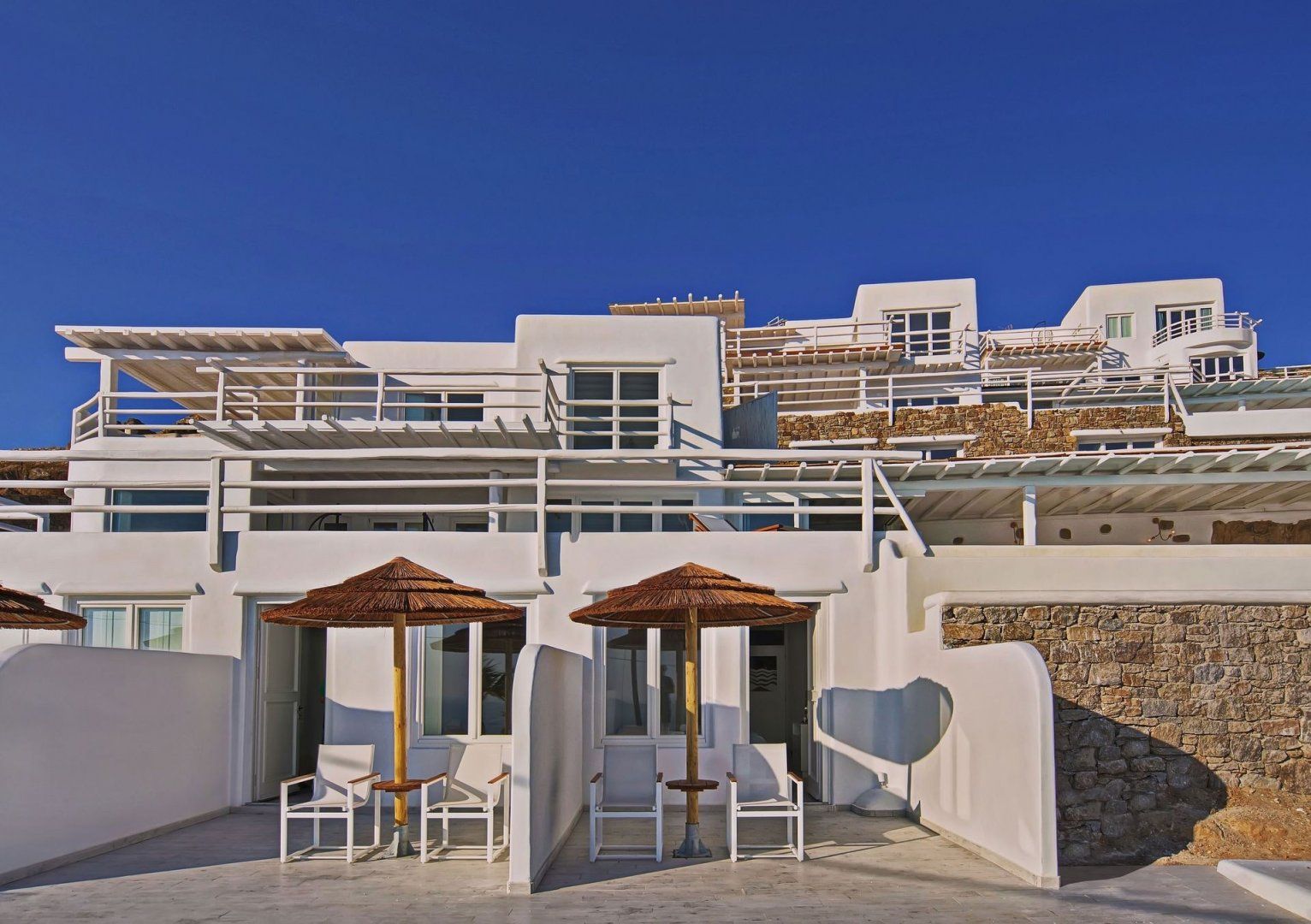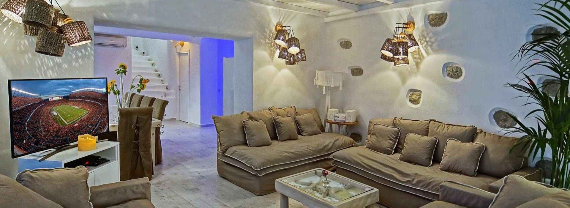 Sometimes, despite convention and societal norms, we fall madly in love with a swimming pool. Looking at this perfect, infinite rectangle of turquoise water blending with the Aegean Sea, we think we’ve found our new beau. It’s the view that seals it; taking in the dramatic Mykonos coastline and islands floating on the horizon from this hilltop perch. The rest of the villa is equally as impressive.