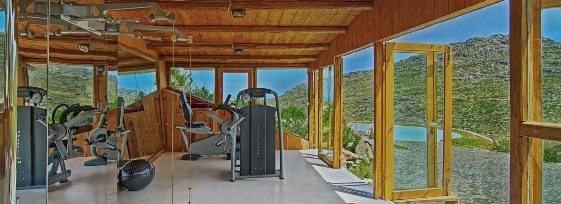 A living room encased in glass with the old stone foundations on display feels as though you’re sitting outside, especially with the sliding doors pulled back onto the dining terrace. The kitchen is sleek, modern and white and there’s a formal indoor dining table for big group dinners. Each plush bedroom on the ground floor has its own entrance and en-suite bathroom, with private terraces for a quiet moment. And upstairs, you’ll find the huge master suite with its own living room.
