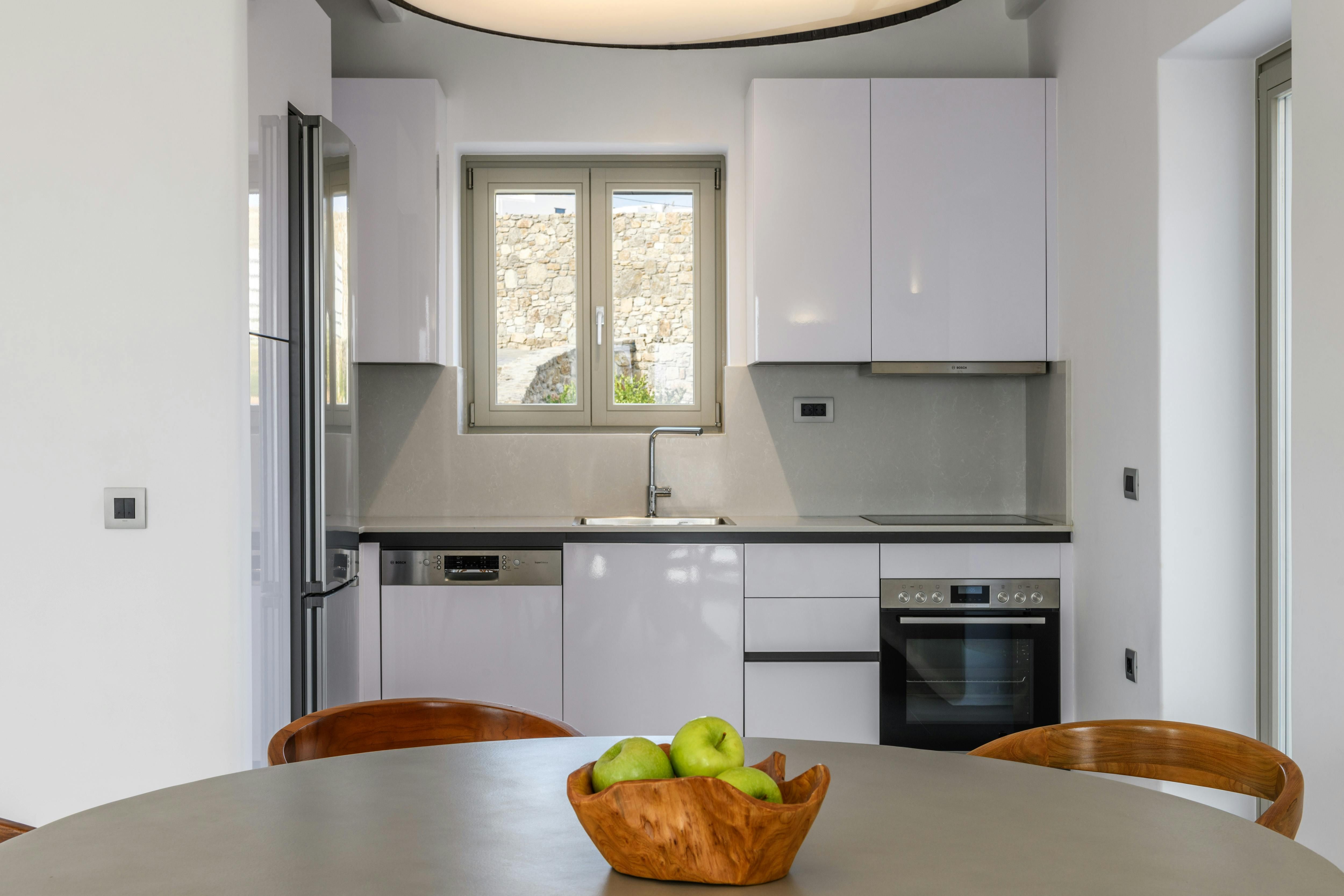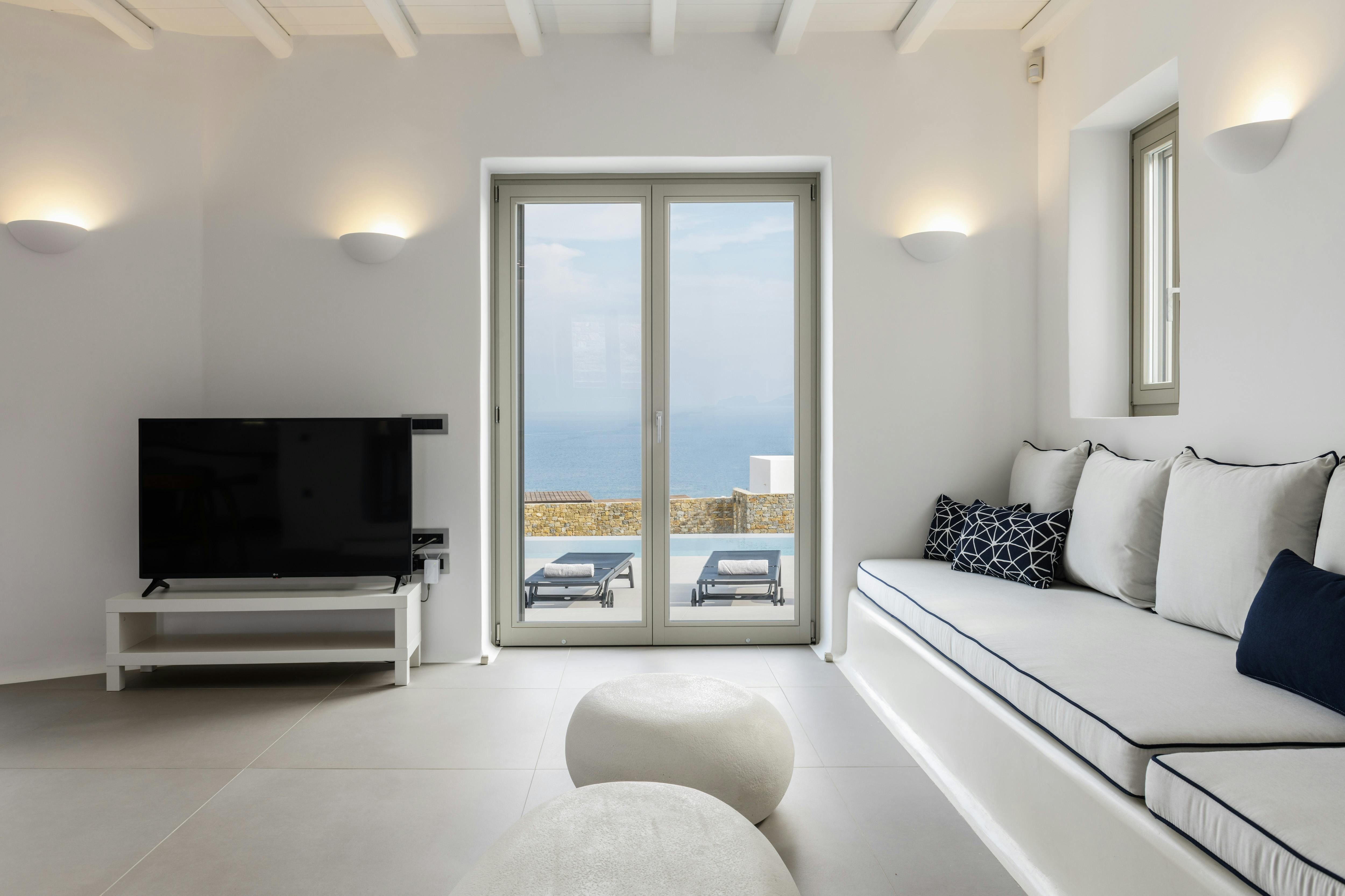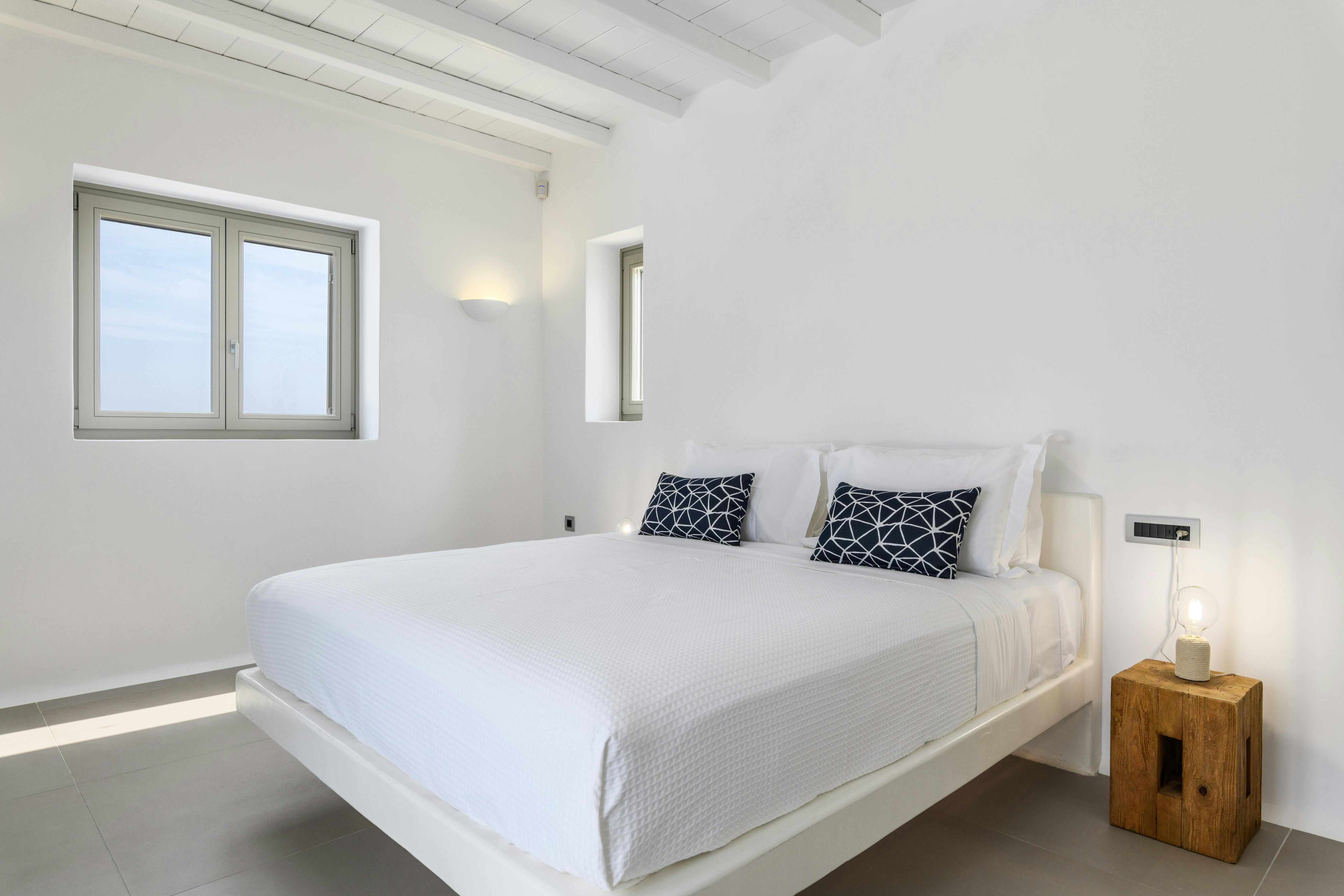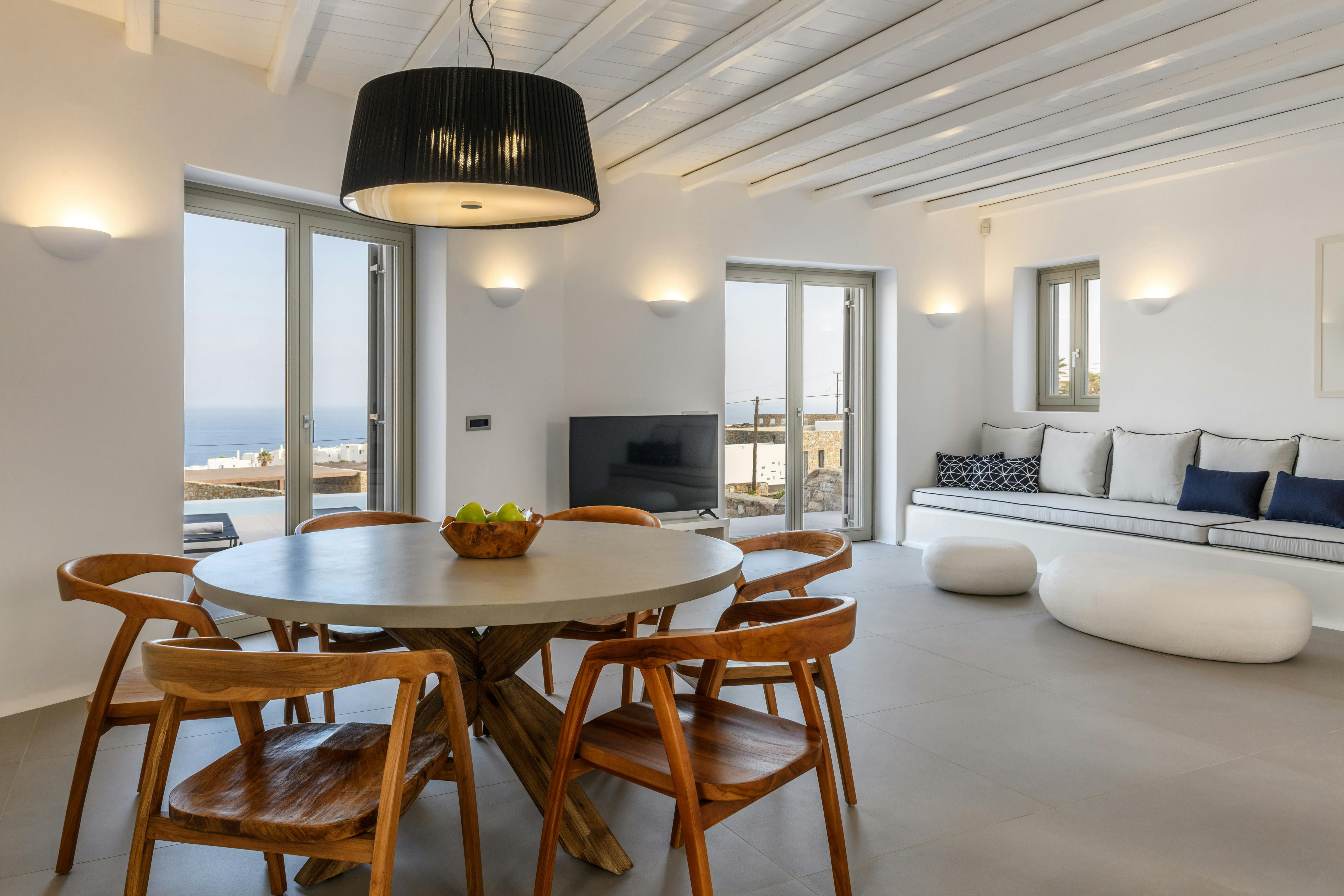 We love the location of this villa, which is a five-minute drive from the boutiques, bars, and waterfront tavernas of Mykonos Town. From here, you can also take your pick of a string of dazzling beaches or set off to discover the island’s more tranquil corners. Back at the house, it’s all about taking it easy – lounging by the pool, swimming leisurely laps, sharing delicious dinners on the terrace. The view isn’t bad either, with a curve of rugged coastline and ribbon of blue sea to remind you you’re on one of Greece’s prettiest islands.
