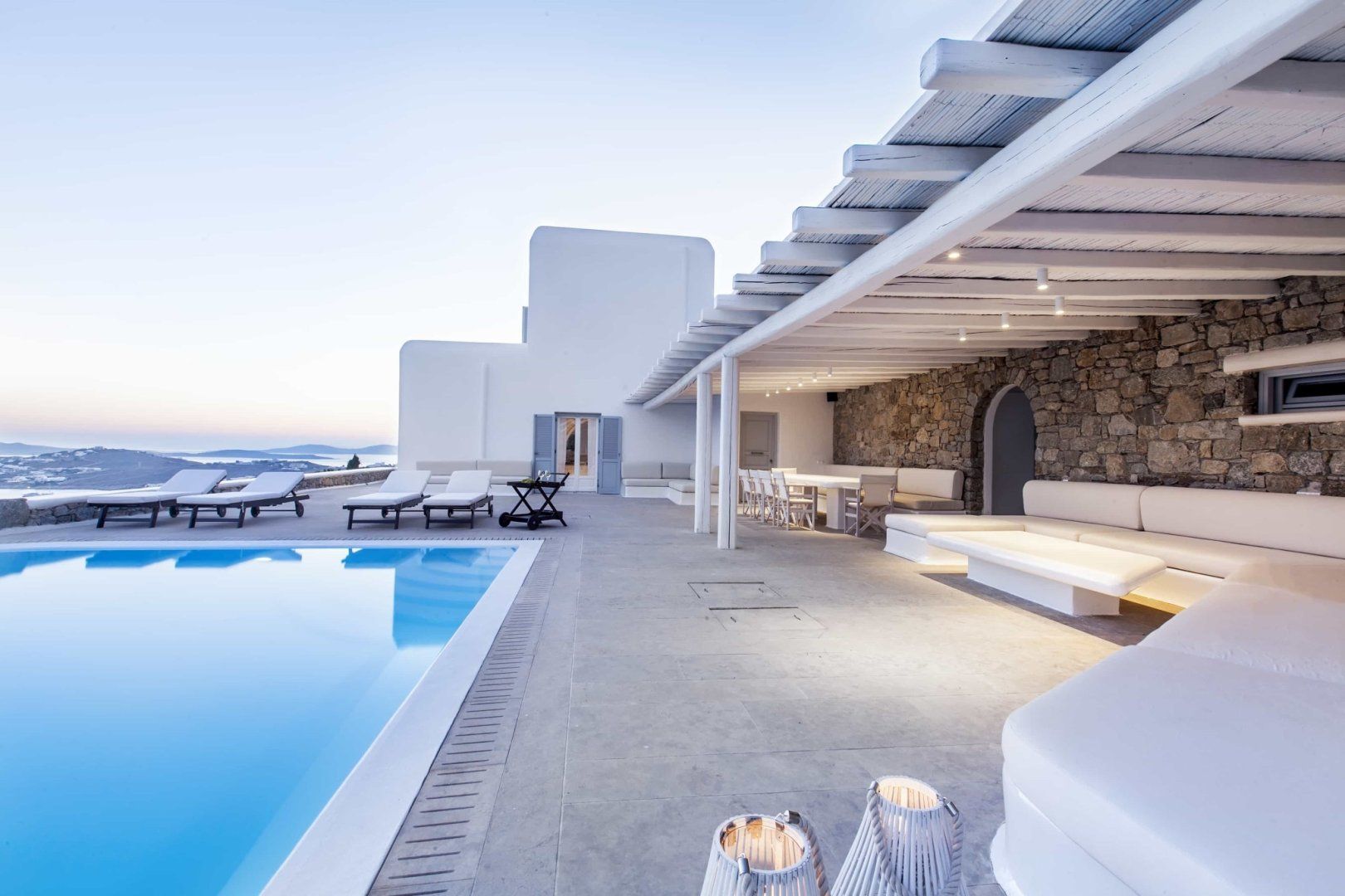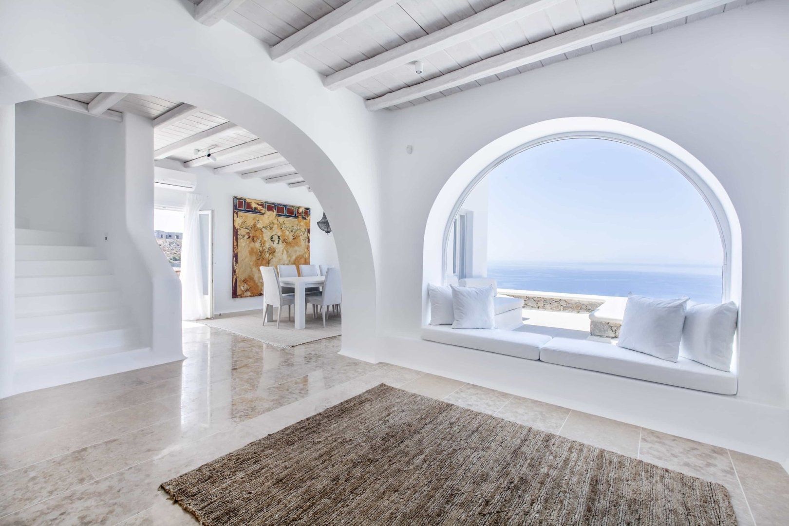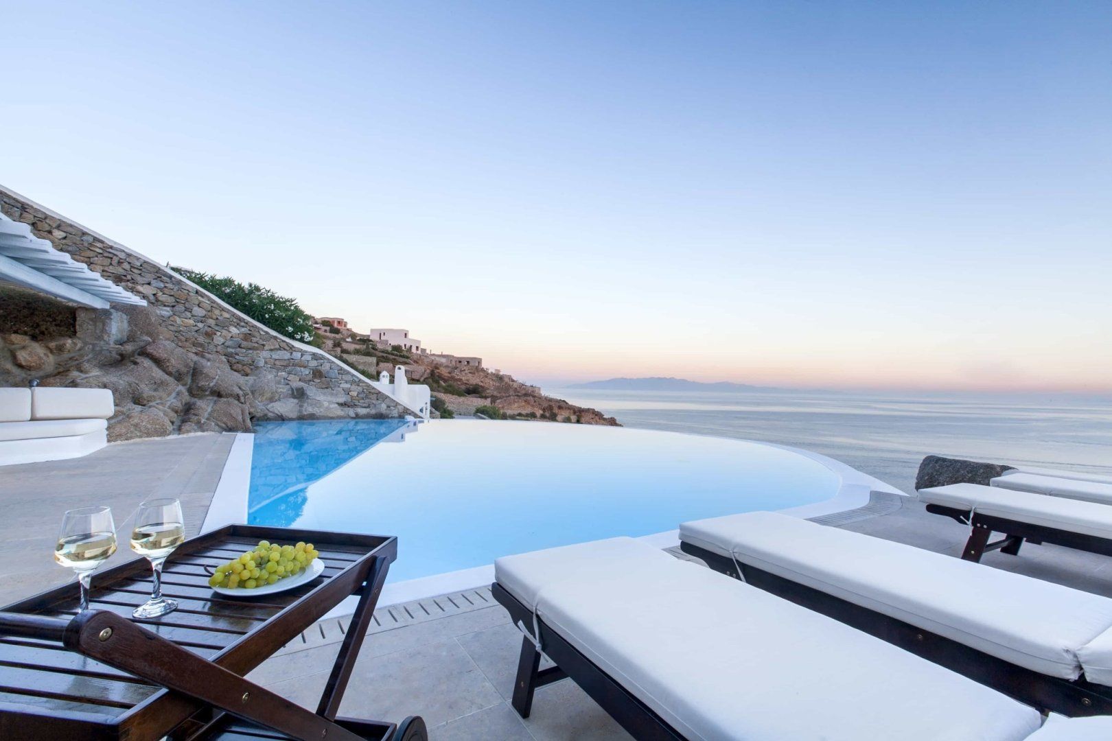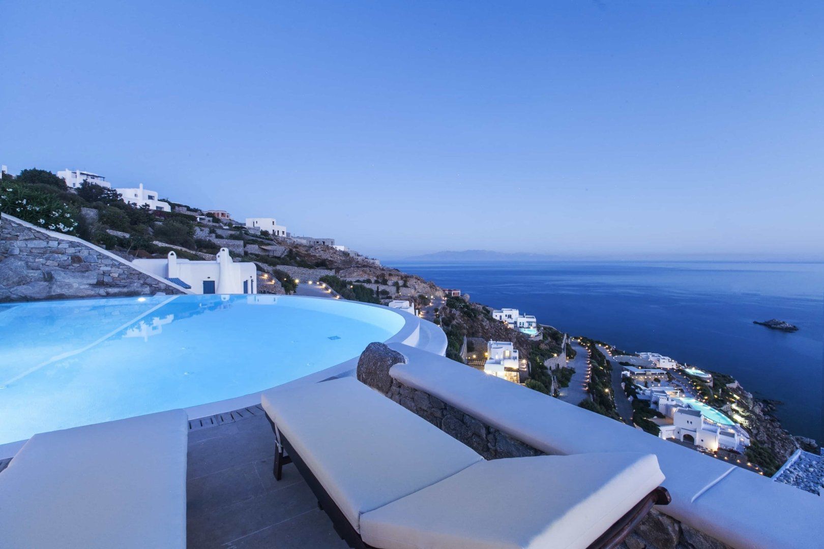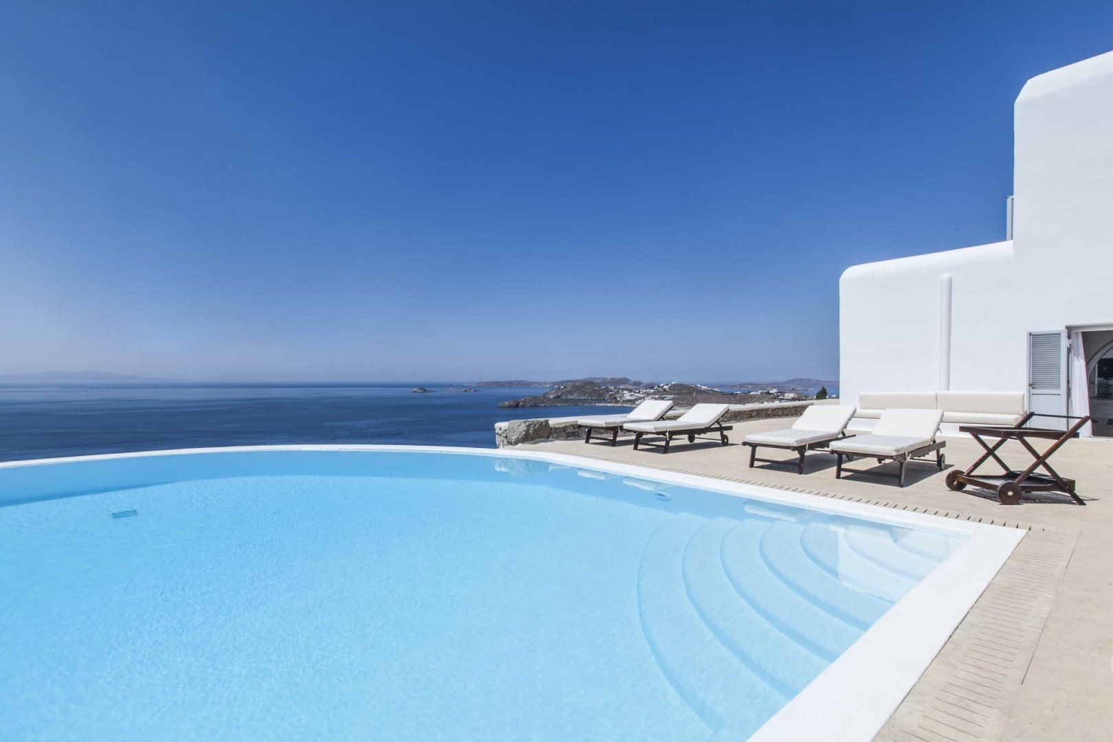 Enjoying an incredible position at the edge of the Agios Lazaros cliffs, with panoramic views over the Aegean Sea, this luxurious villa offers plenty of privacy near the vibrant centre of Mykonos.