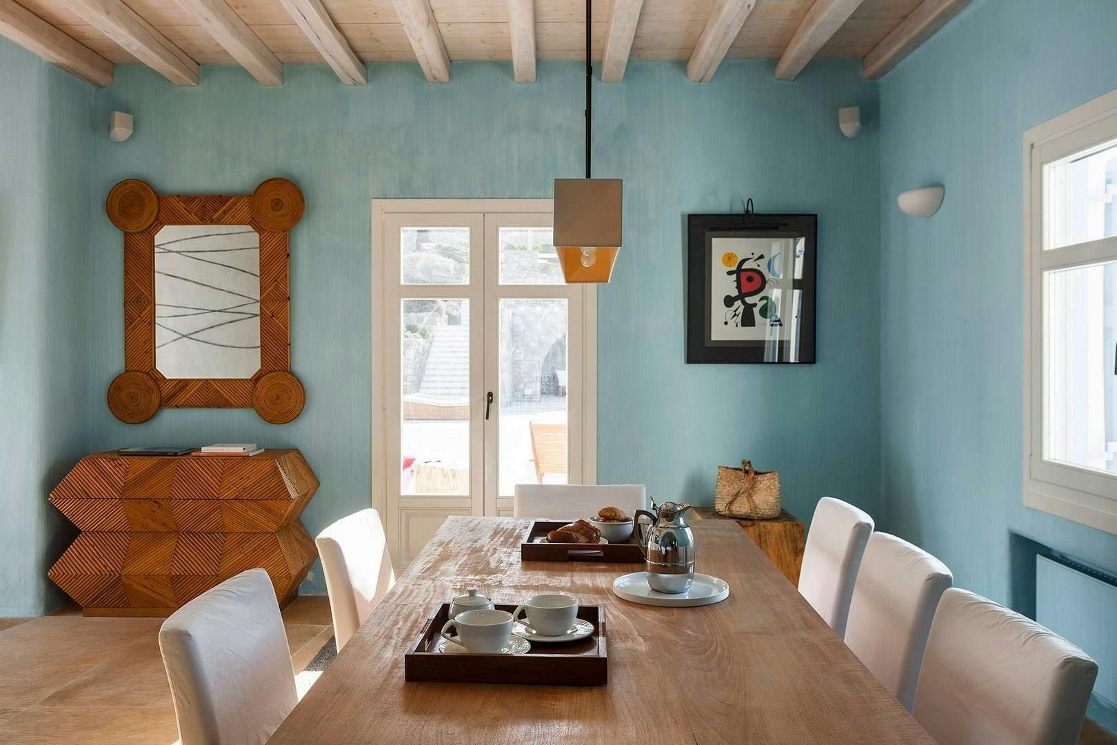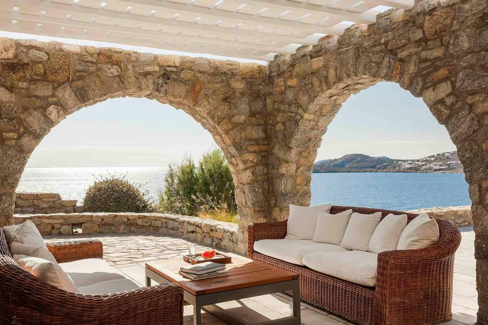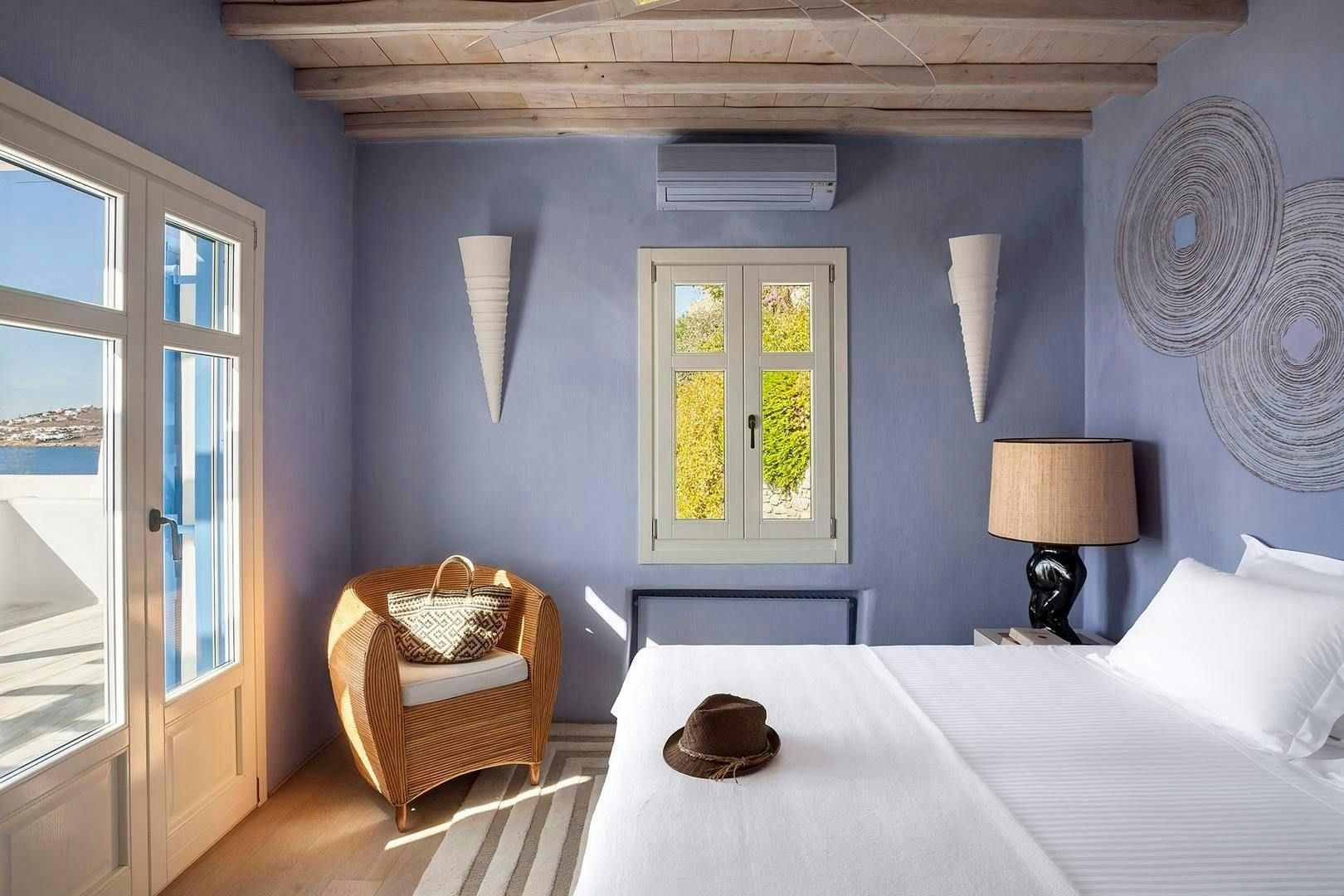 Perched on the edge of Agios Lazaros, this home perfectly embodies the magic of Cycladic living. From the sweeping sea views and the private pool to the traditional rooms, the owners have created the ideal island escape. There is also a path that leads down to the sea, plus the estate includes a jetty for dinghy pick-ups and drop-offs as well as a helipad. We recommend hiring a car to get the most out of your stay, but you’ll find it’s just a short drive to Mykonos Town and Psarou Beach.