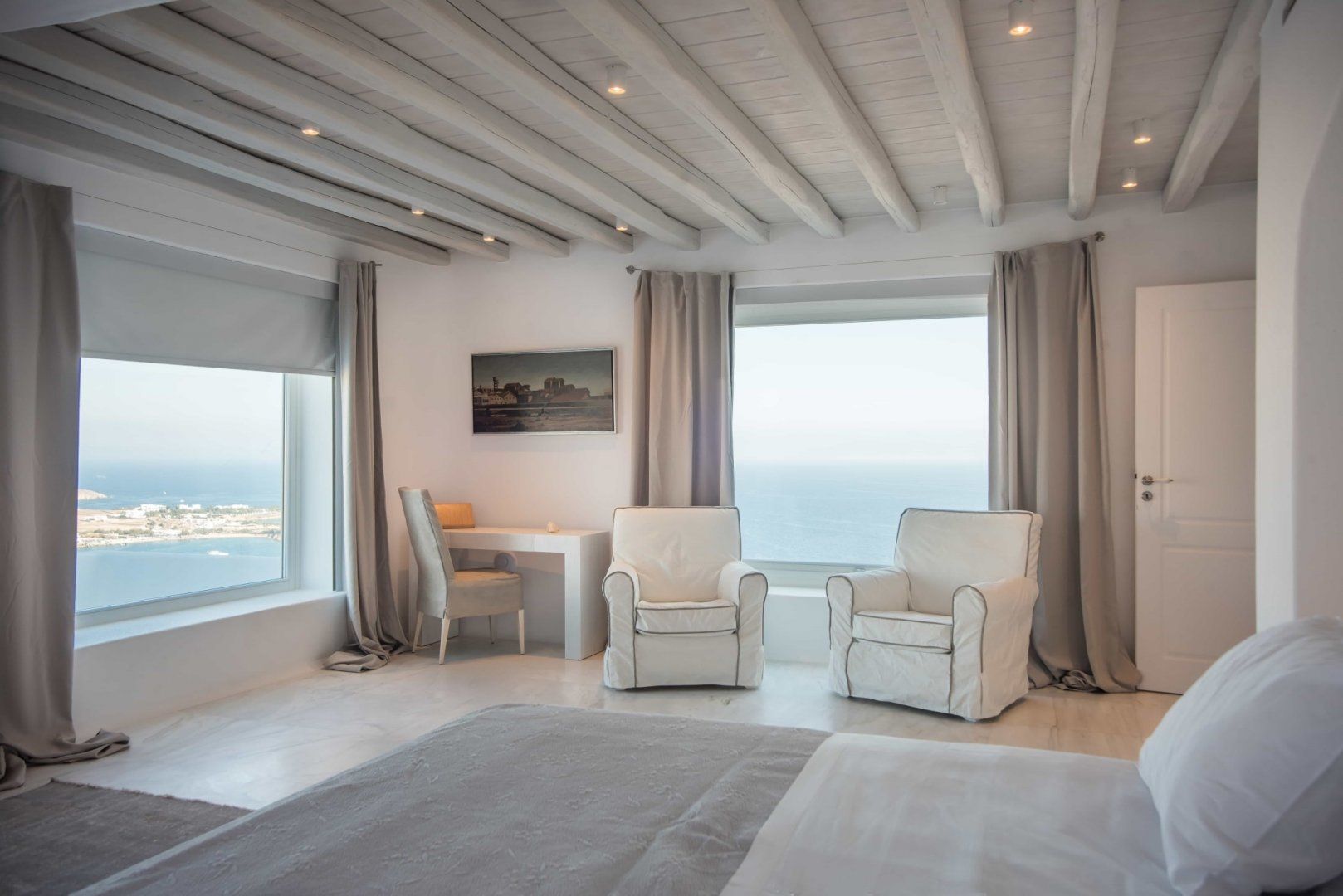 This stunning home boasts one of the best views in Mykonos. It can be found overhanging the rocky shore beside popular Psarou beach, in an exclusive estate. For relaxation and luxury, you can’t do better.