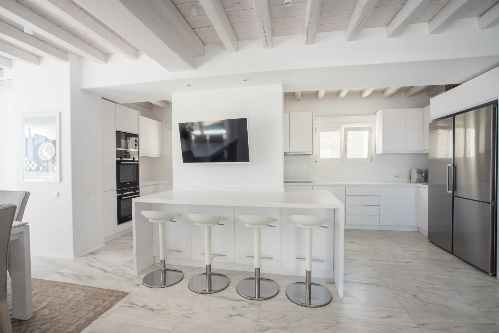 You might begin your day with a moment of peaceful meditation and a yoga session. Later on, you’ll swim in the infinity pool and watch yachts sail by. Feel the sea breeze on your skin as you dry off in the sun. In the evening, mix cocktails and lounge on the outdoor sofas to watch the sun sink on the horizon. Maybe you’ll prepare a meal on the barbecue and dine alfresco, or perhaps you’ll drive into Mykonos Town to experience the vibrant nightlife.