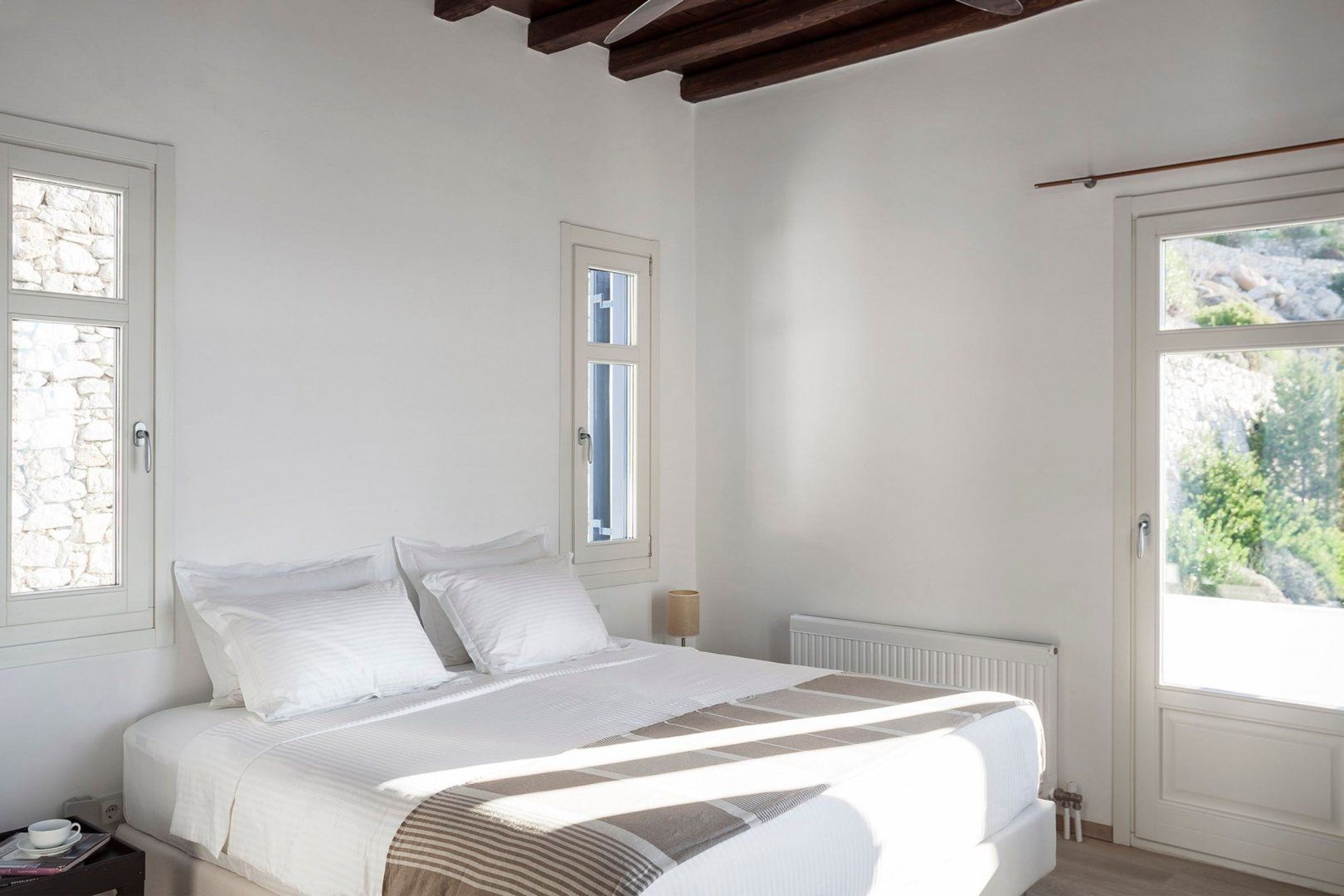 When you fancy a beach day, hop in the car and drive ten minutes to Paralia Korfo or Playa Ornos. And, of course, the lively bars, trendy eateries and cosmopolitan atmosphere of Mykonos Town are hard to resist – it's just a quick thirteen-minute drive away.