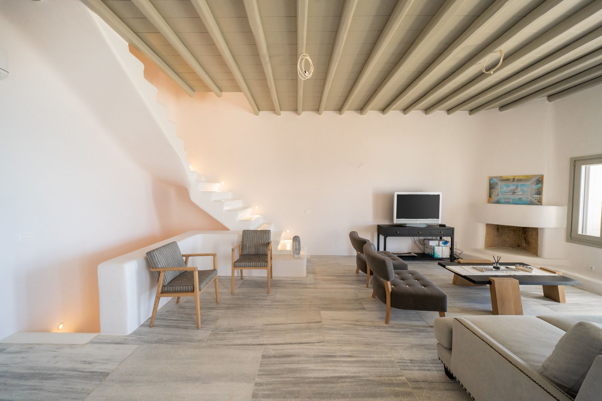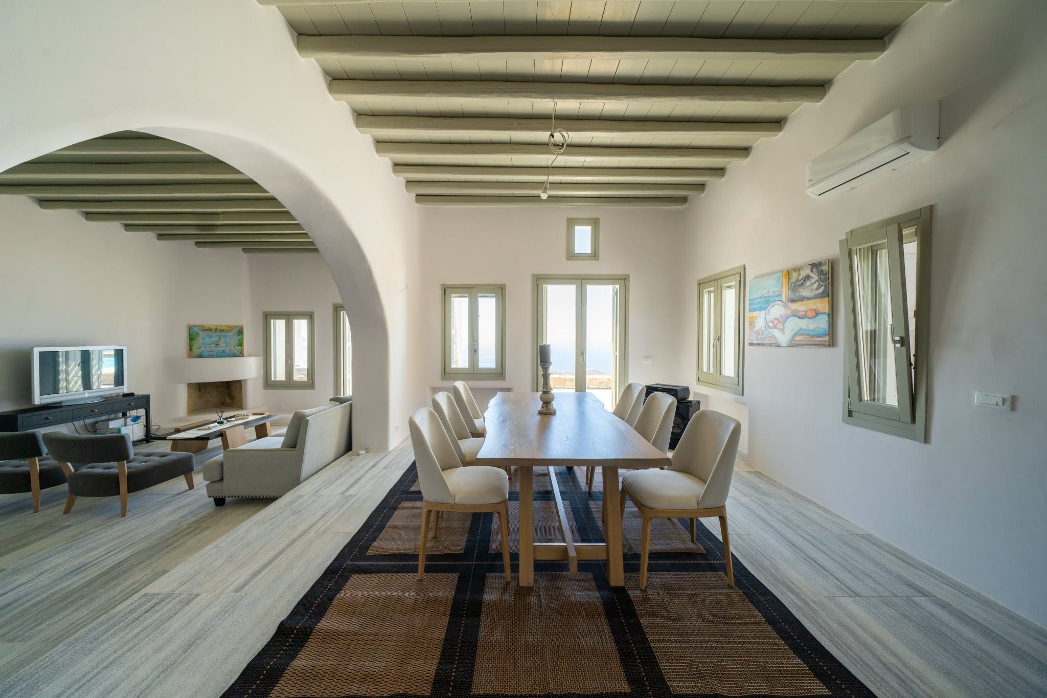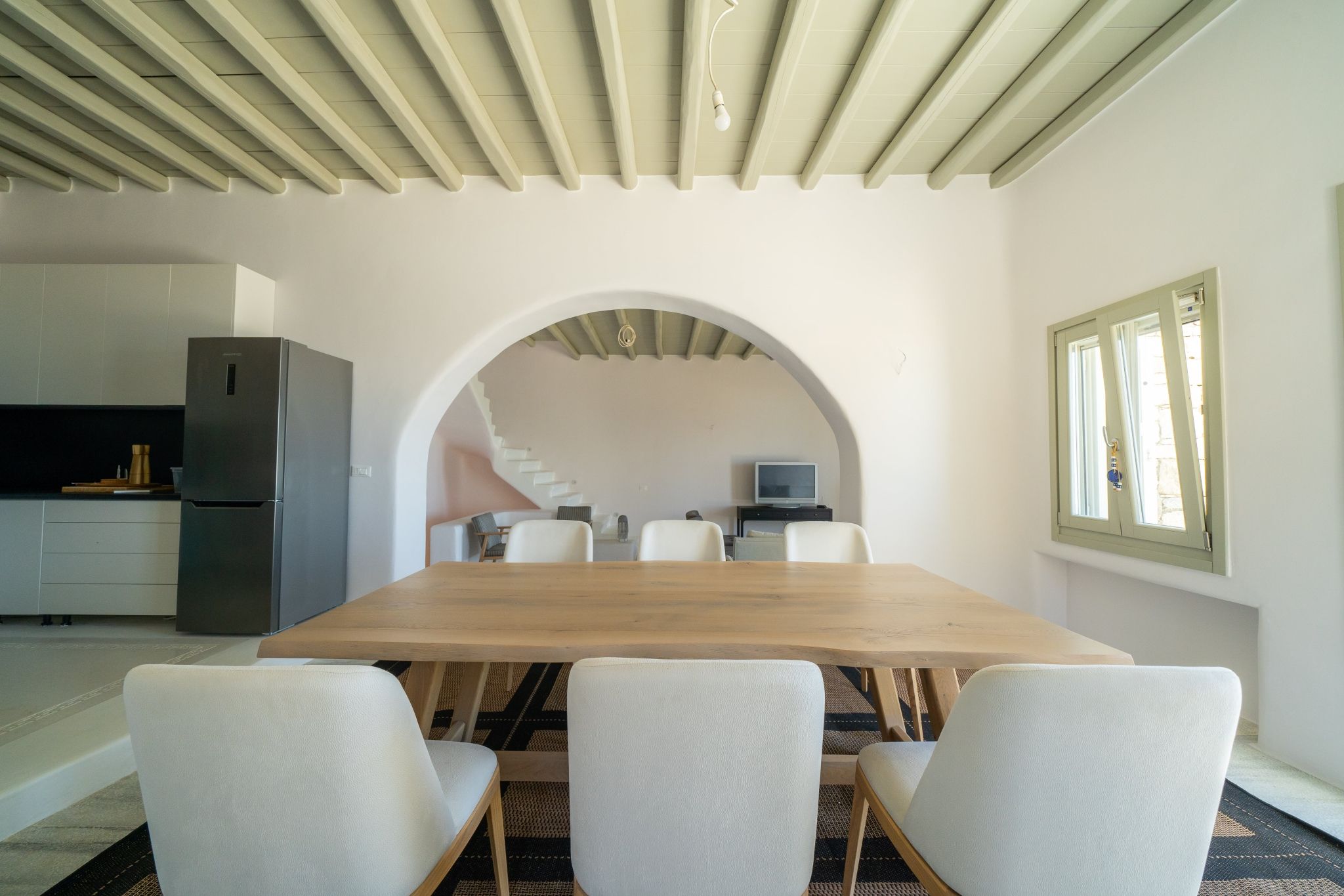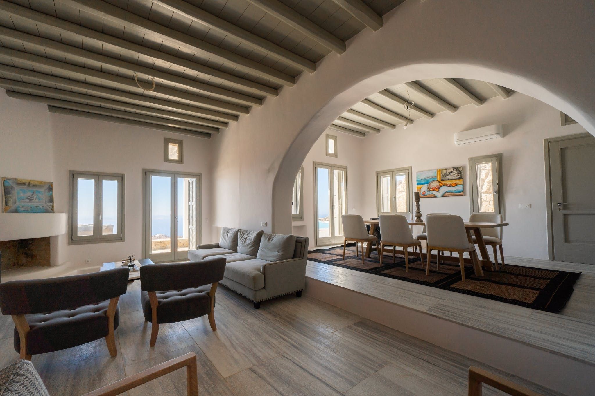 The villa is contemporary and cool. There are traditional features like wooden beams and classic Cycladic style in the form of curved archways and smooth white-washed walls, and you’ll also find all the amenities you might need for your stay.