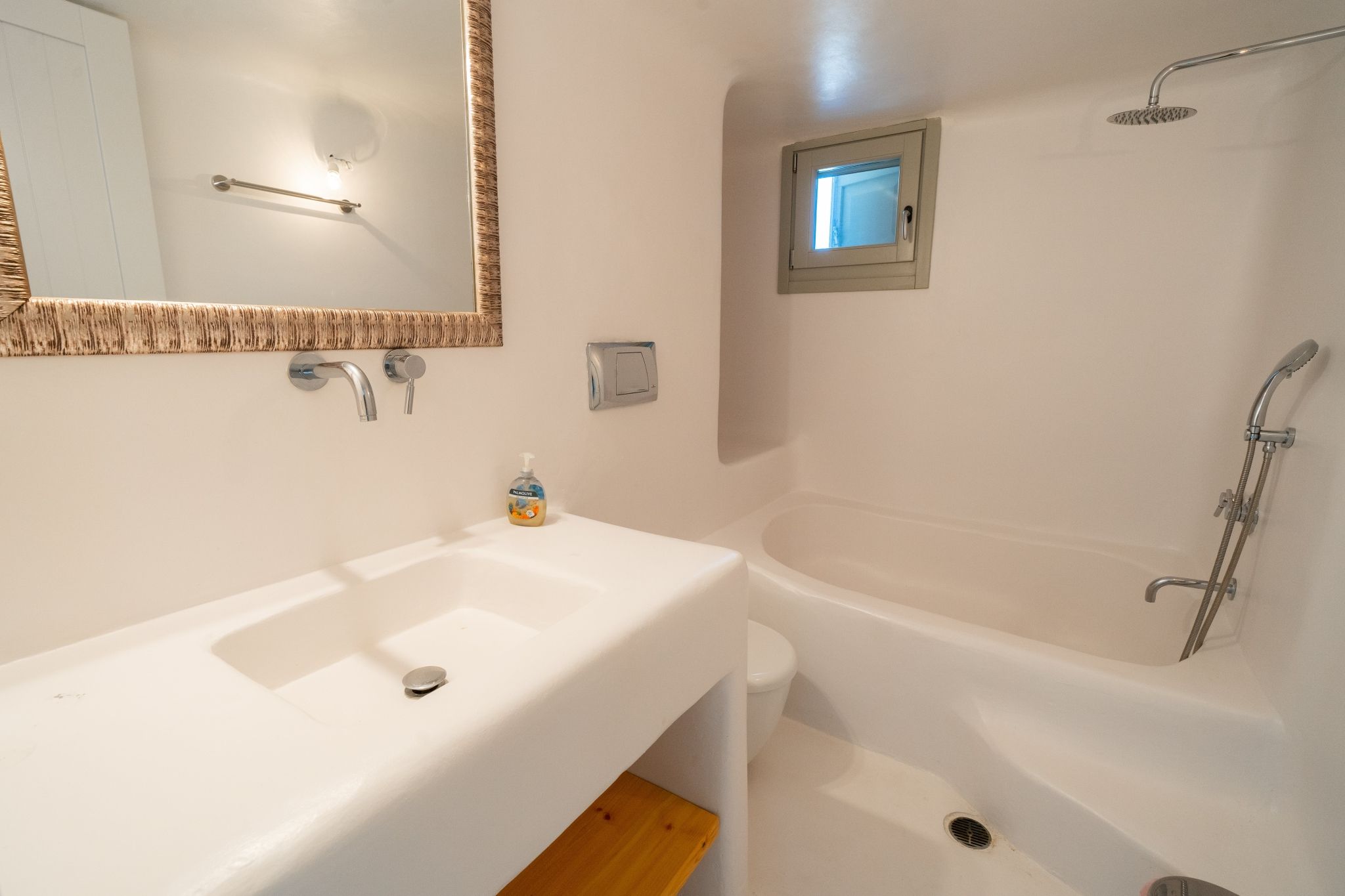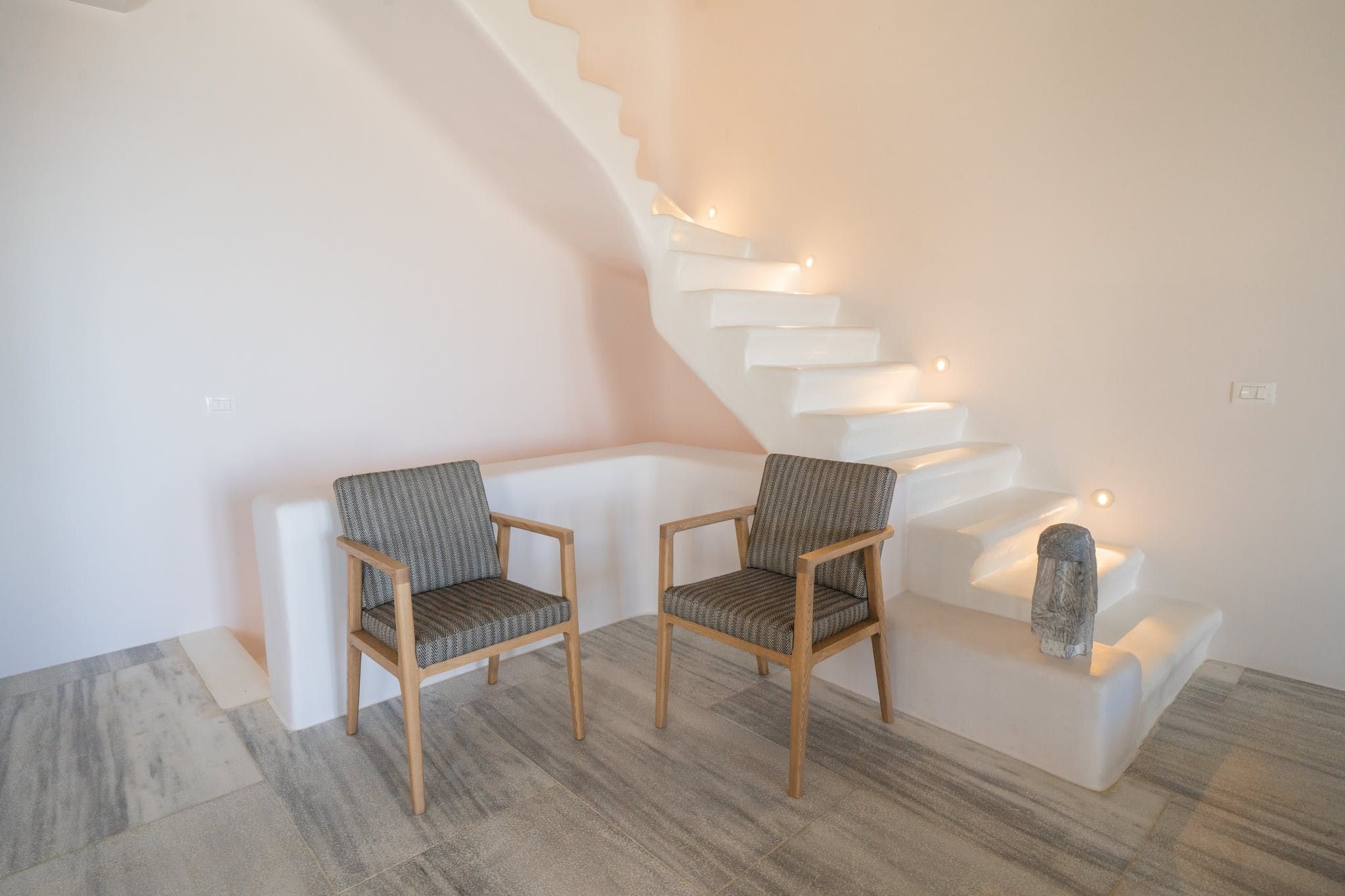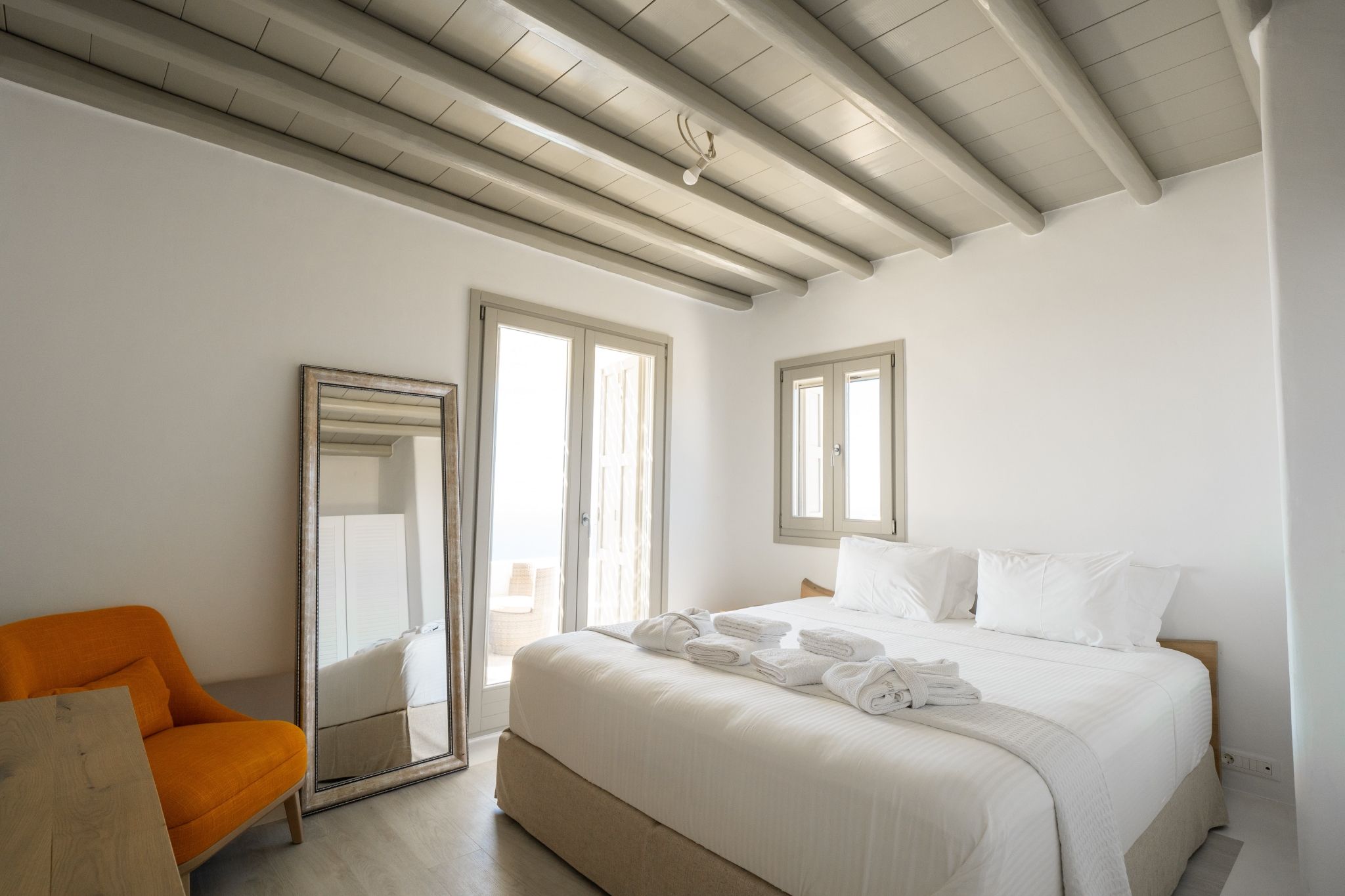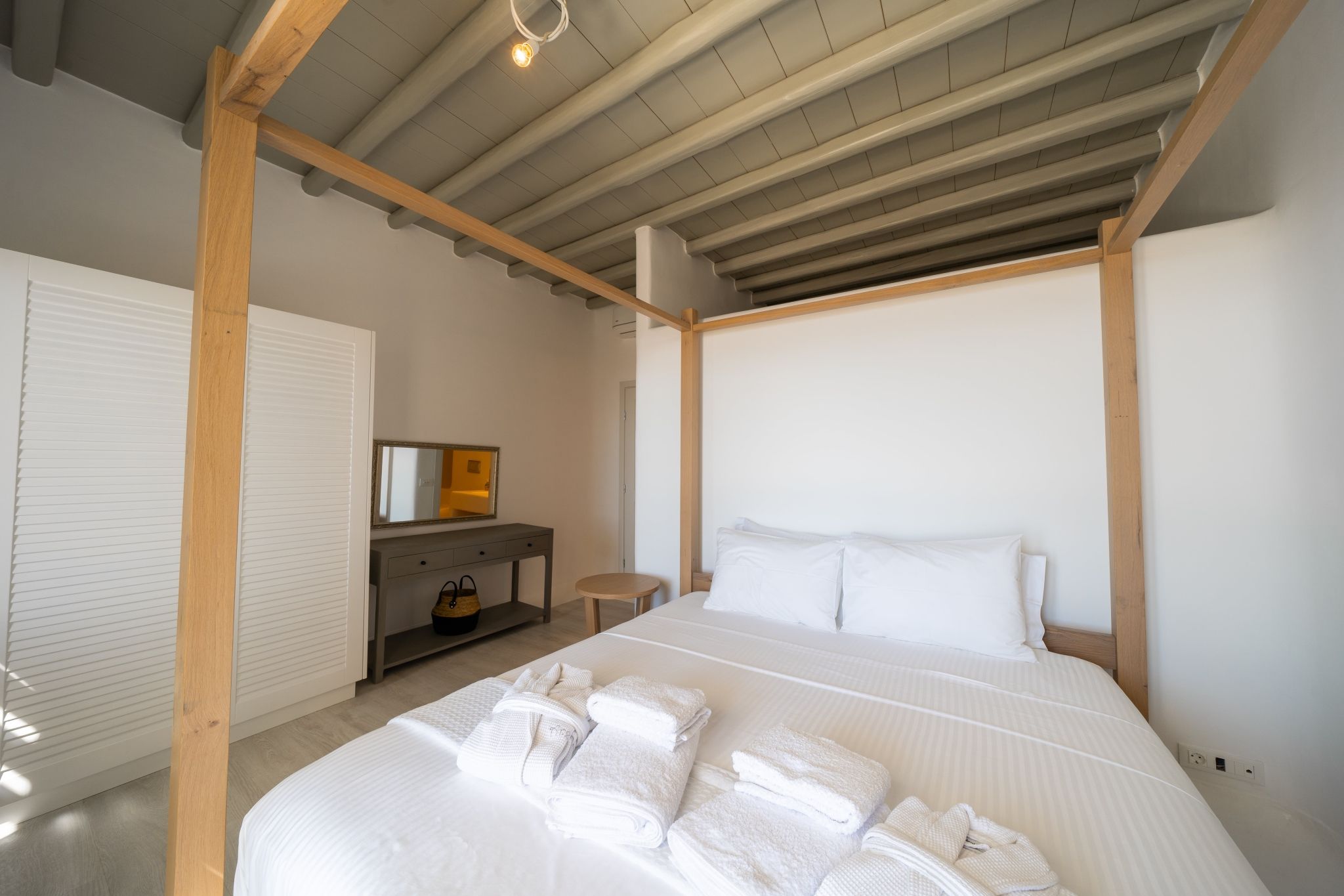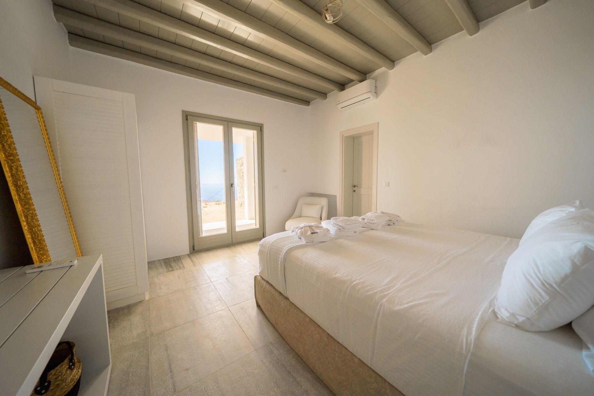 The villa is contemporary and cool. There are traditional features like wooden beams and classic Cycladic style in the form of curved archways and smooth white-washed walls, and you’ll also find all the amenities you might need for your stay.