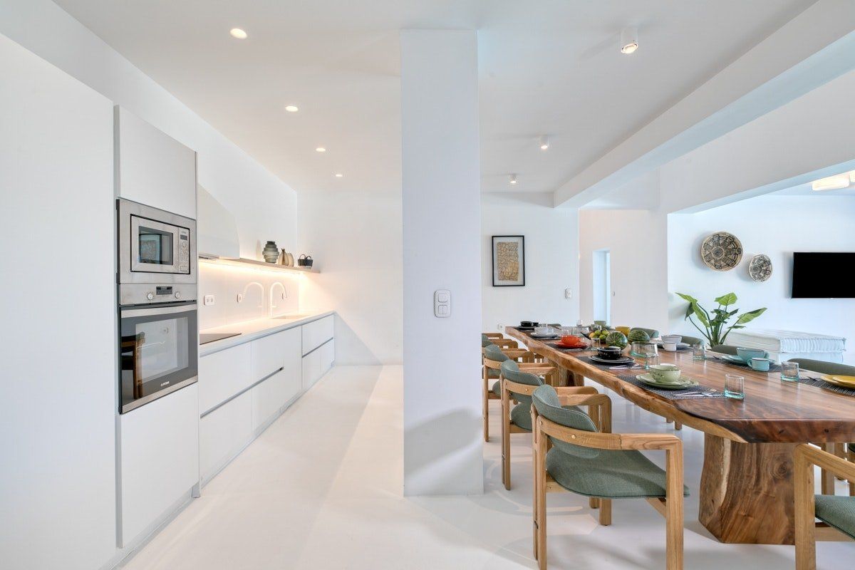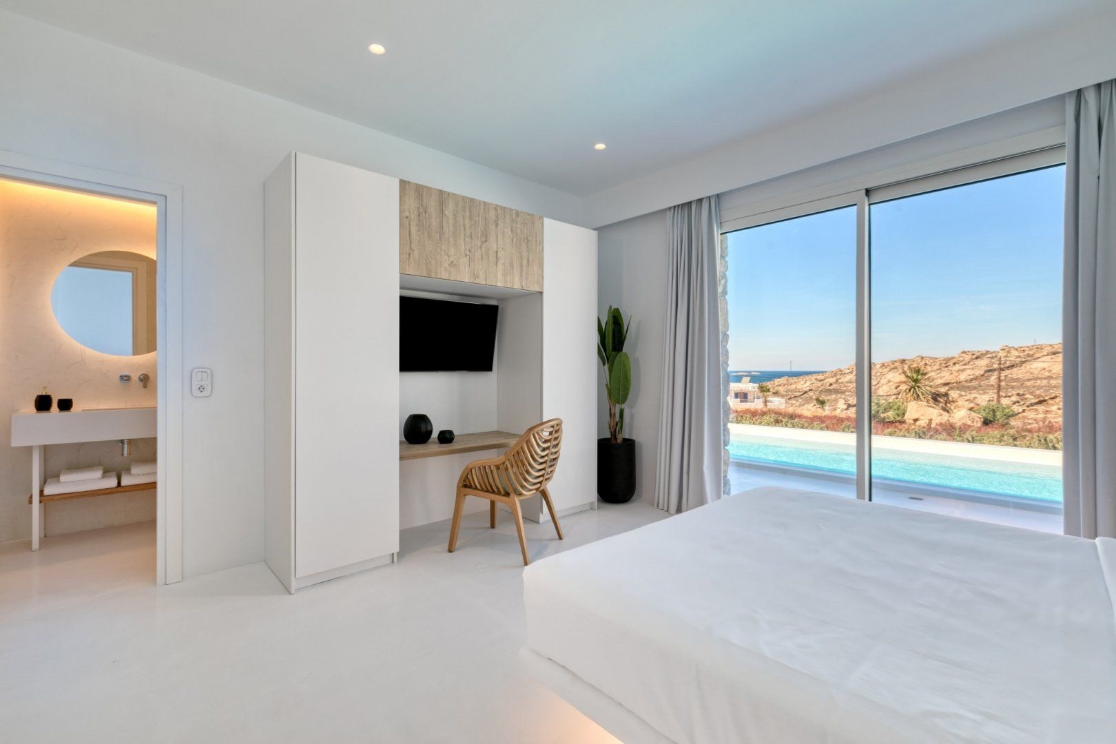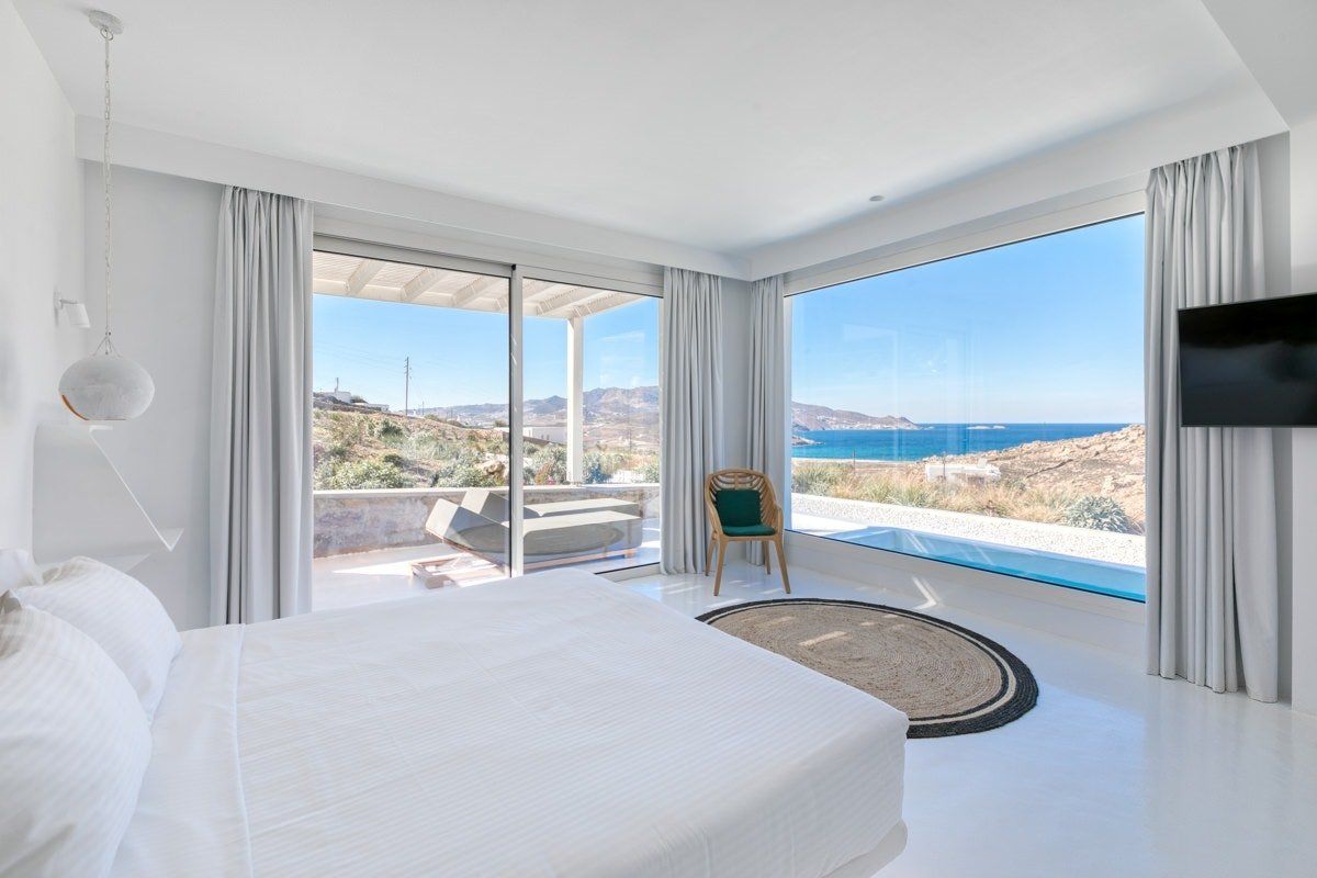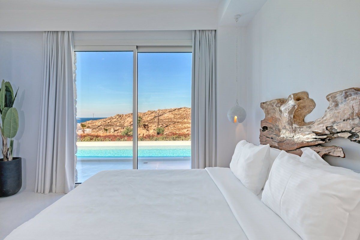 Close to Ftelia beach, this sprawling villa offers a private slice of Mykonos luxury. Laid out primarily across one floor, you can enjoy direct access to the pool and terrace from every room. The outdoor space was designed for socialising, with a sunken seating area and dining table in place for alfresco evenings. If one beach isn’t enough, there are another four to explore within 2.5 miles of the villa – why not speak to your host about hiring a private yacht?