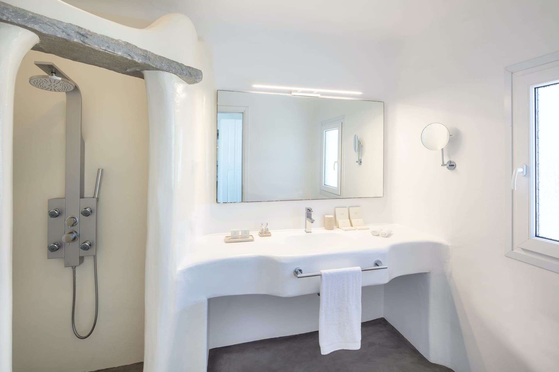 Introducing Villa Vibhu, an exquisite haven nestled in the captivating landscapes of Mykonos. This exclusive retreat has been meticulously designed to cater to the desires of discerning guests, whether it be a multi-generational family holiday or an adult-only group getaway. With a remarkable capacity to accommodate up to 28 individuals across its 14 opulent suites, Villa Vibhu offers an unparalleled level of luxury.