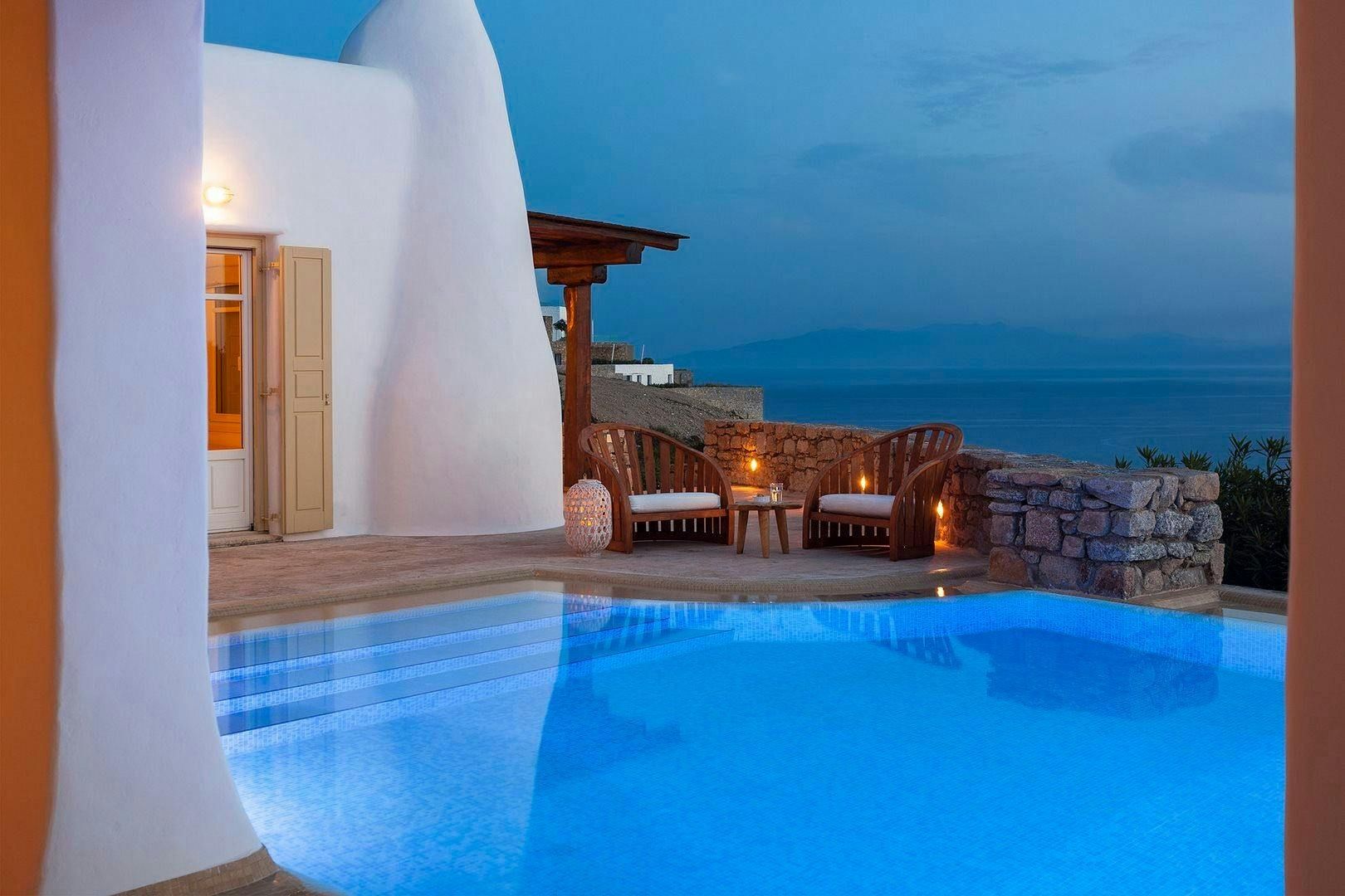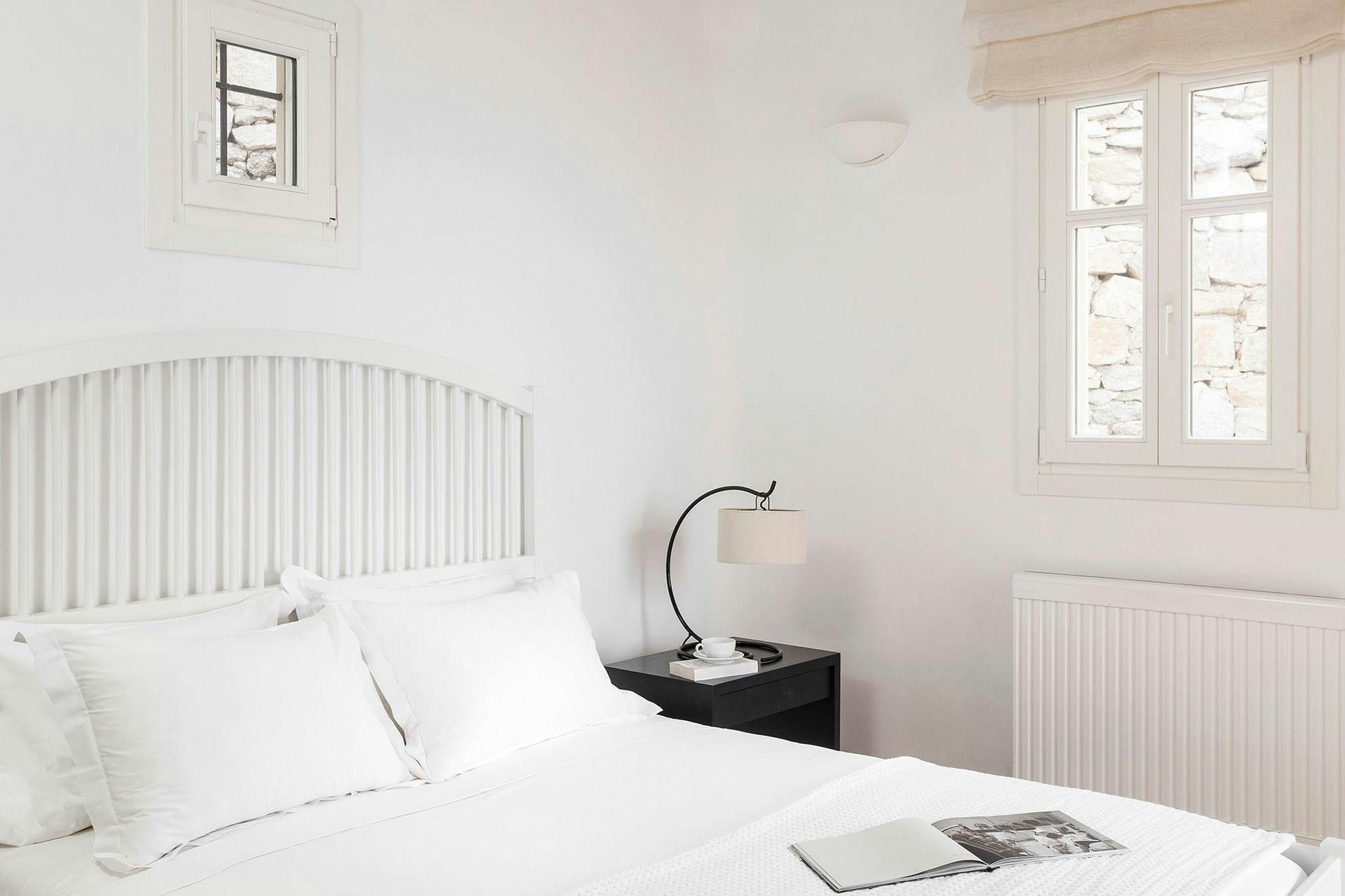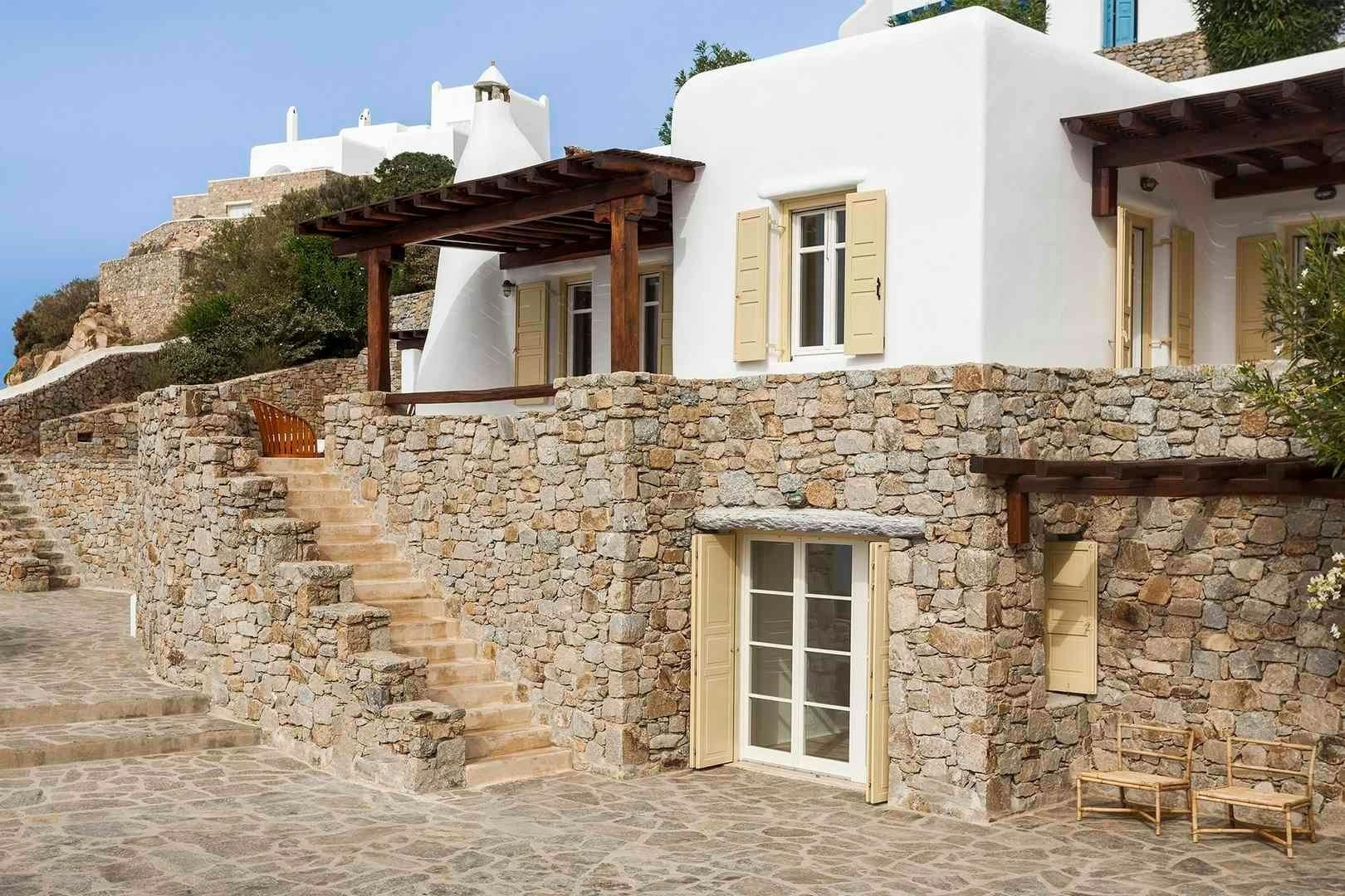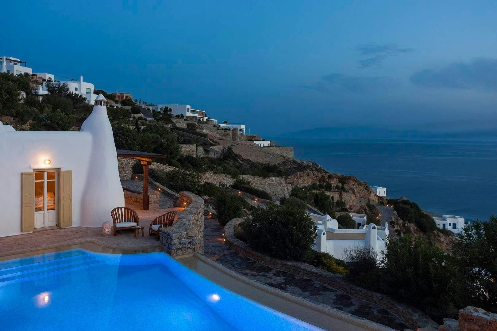 This home hits all the right notes when it comes to idyllic views and Cycladic charm. Located in an exclusive estate, the grounds feature a private heated pool, a sweet terrace with a barbecue and stairs leading down to a shared dock. The concierge is on hand to organise boat trips and private chefs, plus it’s family-friendly with children’s amenities available on request. You will need a car to get around here, but it’s just a ten-minute drive to Psarou Beach with the nearest amenities also within easy reach.