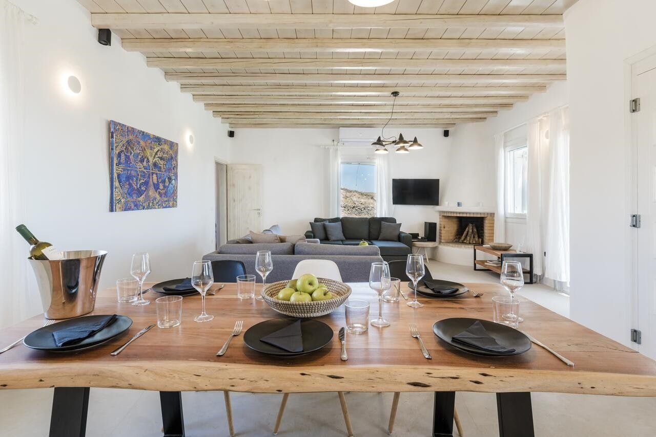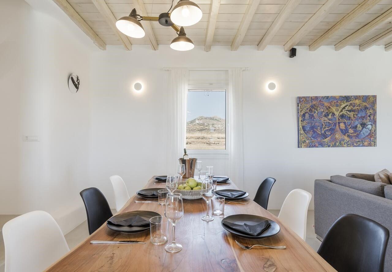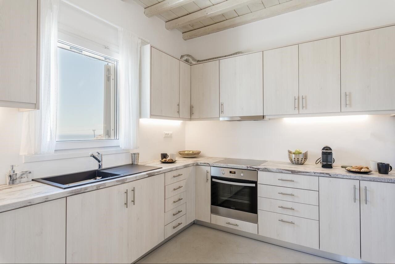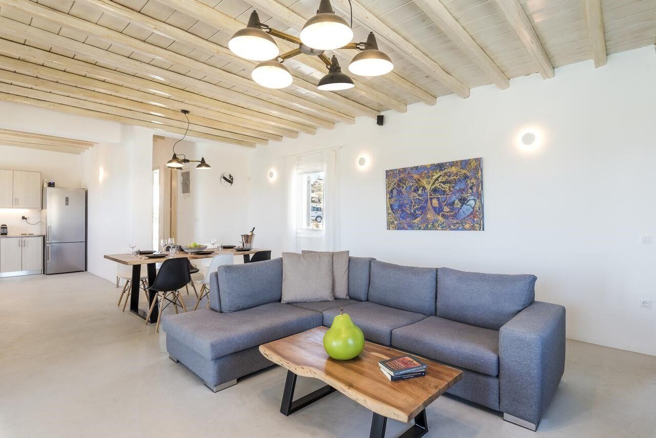 The exterior of this home is a nod to classic Mykonos architecture, with white-washed walls, window shutters and a cubic shape. Inside there are plenty of creature comforts to help you feel right at home. Start the day by opening up the patio doors and breathing in the fresh air, then make a coffee and sink into the outdoor sofa. A morning swim in the outdoor pool is also highly recommended if you want to start the day feeling refreshed and ready to explore.