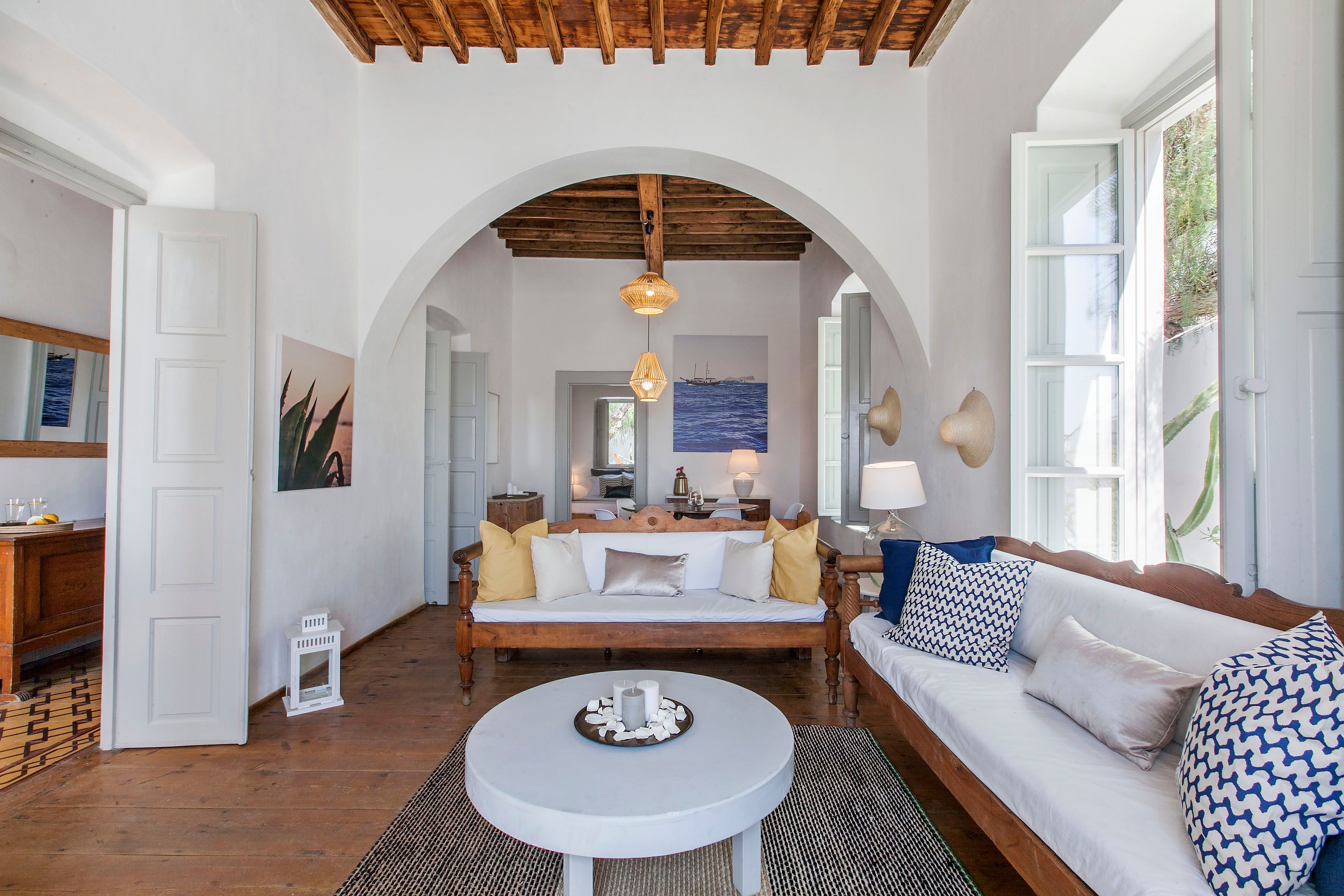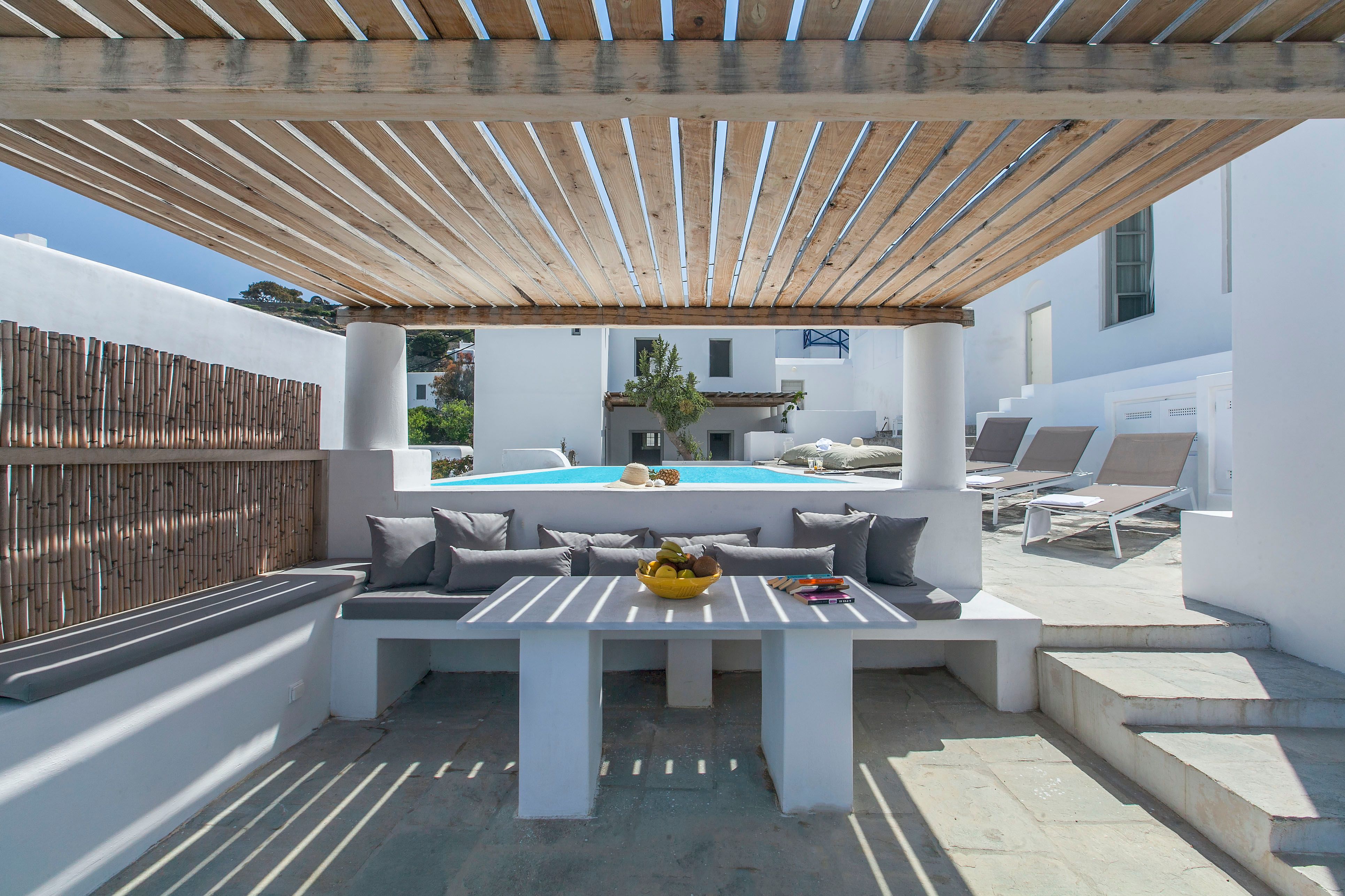 Dating back to 1882, this charming home is located in the heart of Mykonos Town, just steps away from Little Venice and the iconic windmills. With a main house and two guest houses, there’s plenty of space to spread out here – albeit with some guests sleeping on sofa beds. We think it’s perfect for larger groups of friends, or multi-generational families who want to holiday together yet still enjoy some private space. With far-reaching sea views, a private pool and sun-kissed terraces, this home will be a hit with all. Ready to explore? Wander the winding streets – shops, bars, restaurants and the sea are on your doorstep.