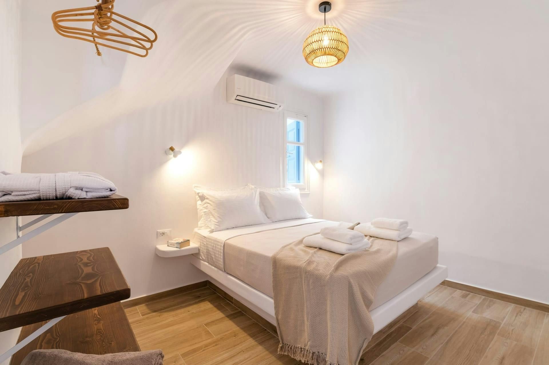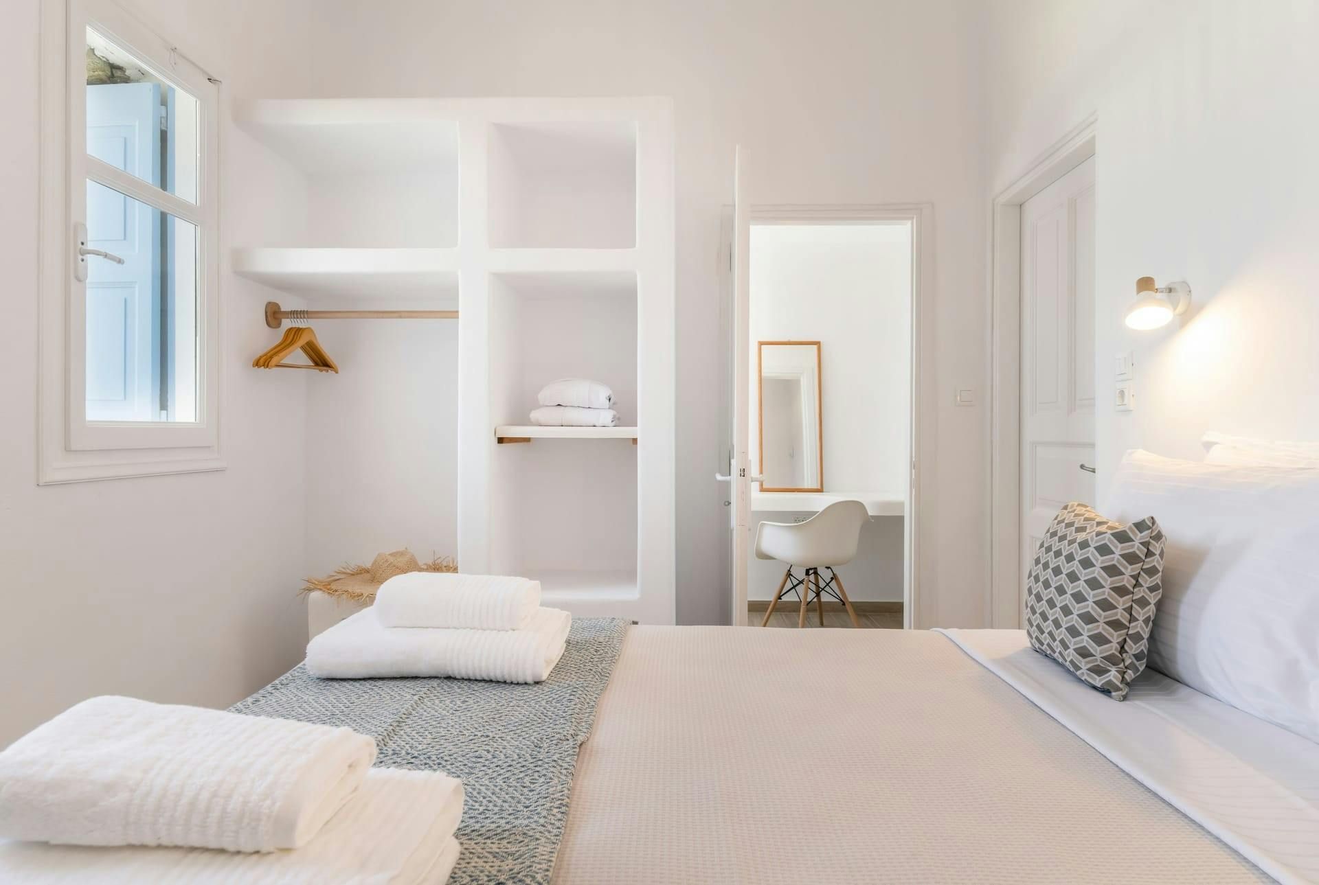 From stunning sea views to the elegant rooms, every detail of this Cycladic home inspires instant relaxation. There’s a large terrace with a barbecue for alfresco dining and you’ll have a pool for refreshing swims. All of the bedrooms come with en-suite bathrooms for optimum privacy and your host provides a welcome basket with local delicacies and sparkling wine. We recommend hiring a car to get around here, but it’s just a short drive to Panormos beach, Ornos and Agios Ioannis.