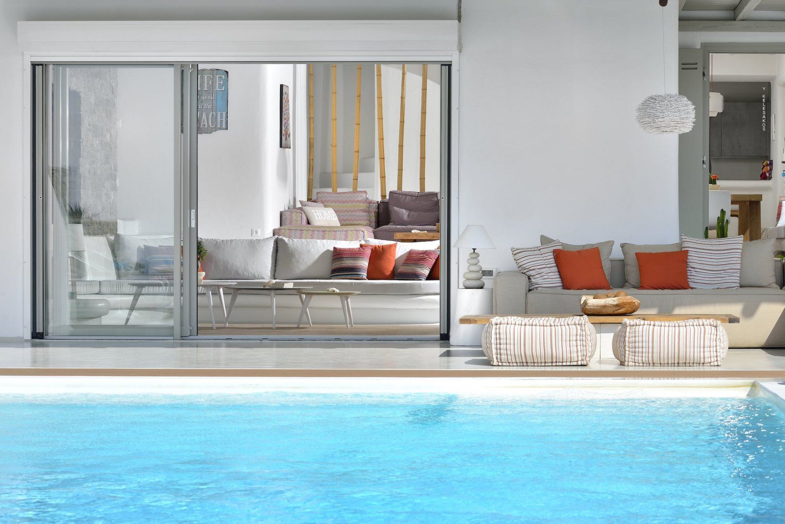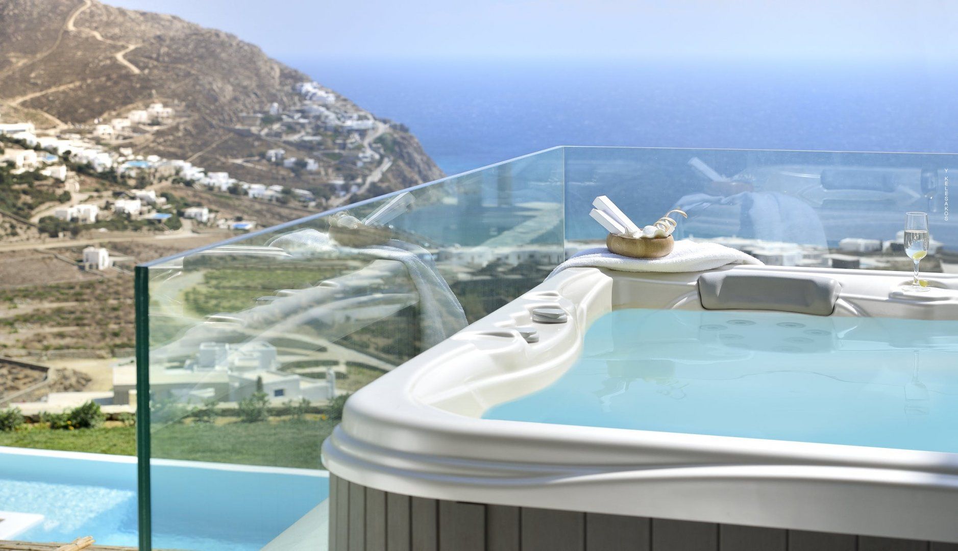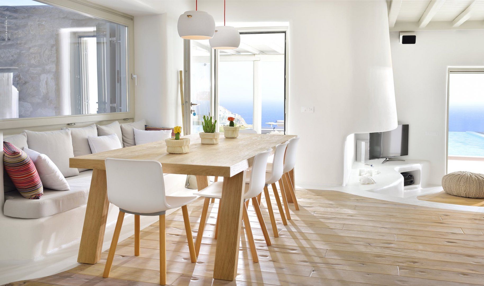 If sparkling sea vistas, killer sunsets and endless blue skies aren’t your thing, then look away now. Perched high above the beach amidst the rocky headlands of one of Greece’s best-loved islands, views don’t get much more panoramic than this. You’ll be spoilt for choice with how to while away your time at this luxurious Mykonos villa – we’re thinking afternoon naps on the daybed, sunbathing on the deck, soaking in the outdoor Jacuzzi or taking a dip in the infinity pool that seemingly rolls into the Aegean Sea. The interior gives off a tranquil island vibe with soft white curves, exposed brick and pale wood, perfect for when you need to take a break from the heat. There’s a fully-equipped kitchen, ample outdoor dining space, plus an alfresco bar where you can pour your sundowners. Days outside of the villa are best spent strolling the long sandy shores of nearby Elia Beach, exploring the sugar-cubed buildings and blue-domed churches of Mykonos Town, or wandering around the cobbled streets, monasteries and tavernas of Ano Mera village. Nights are for dancing in one of the island’s renowned beach clubs, stargazing on the terrace or entertaining around the firepit.