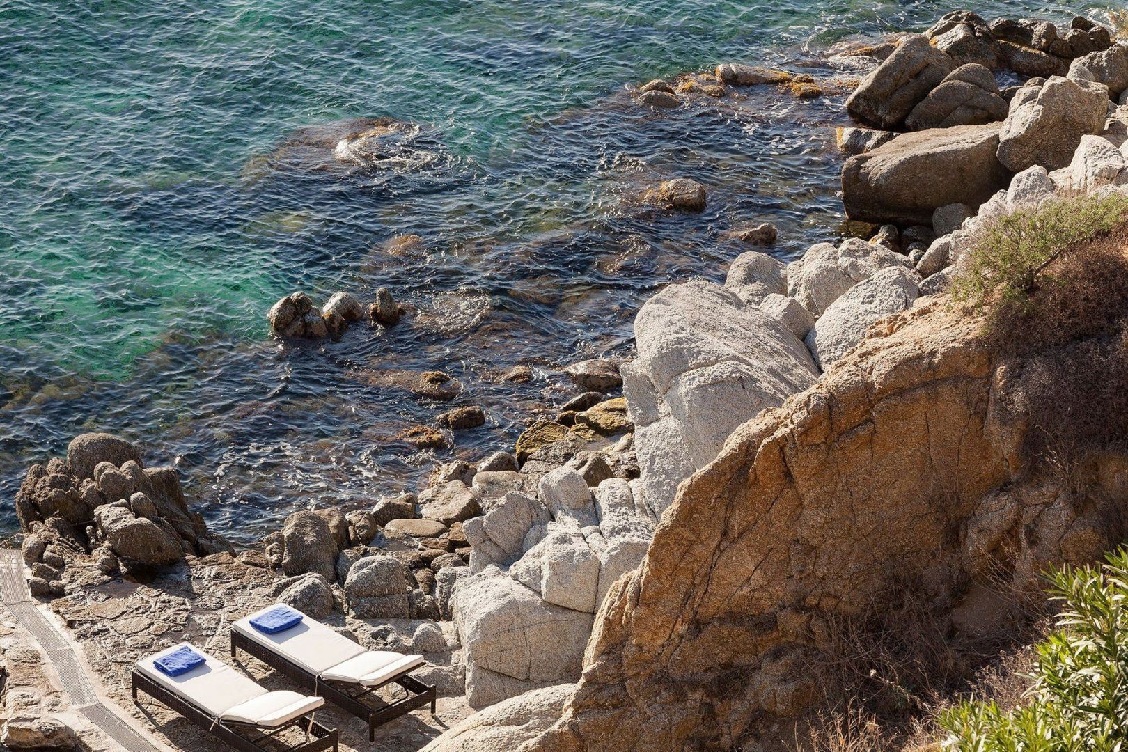 The villa is simple in style, with lots of white – the views of the cobalt-coloured sea and swimming pool add inviting blues to the palette. You’ll likely start your days on the lovely terrace, admiring the panoramic view while sipping fresh fruit juice. Then you’ll have to make a tough decision: will you sunbathe first by the pool or the sea? In addition to boasting a gorgeous infinity pool, the villa has direct access to the sea via a little dock.