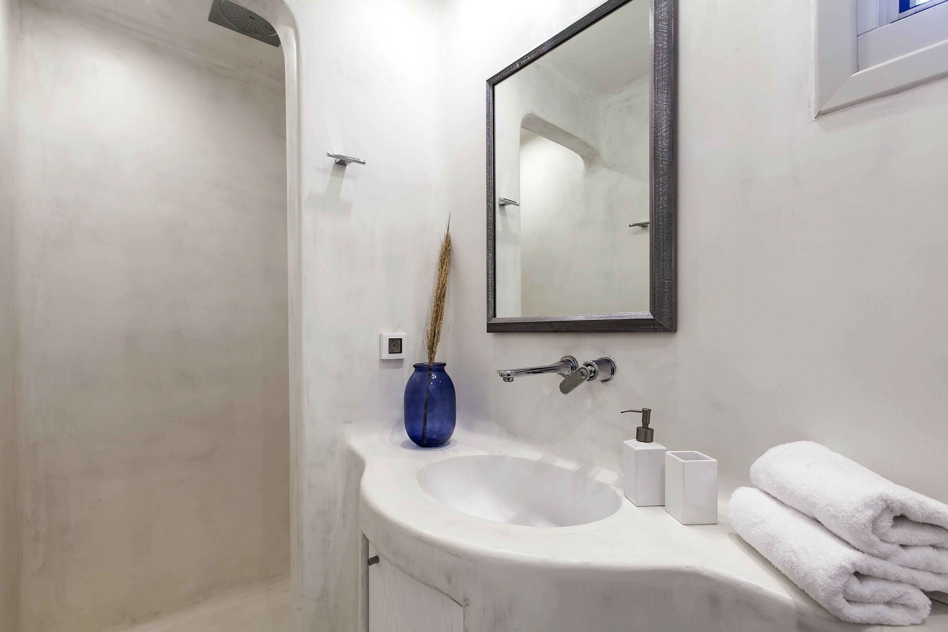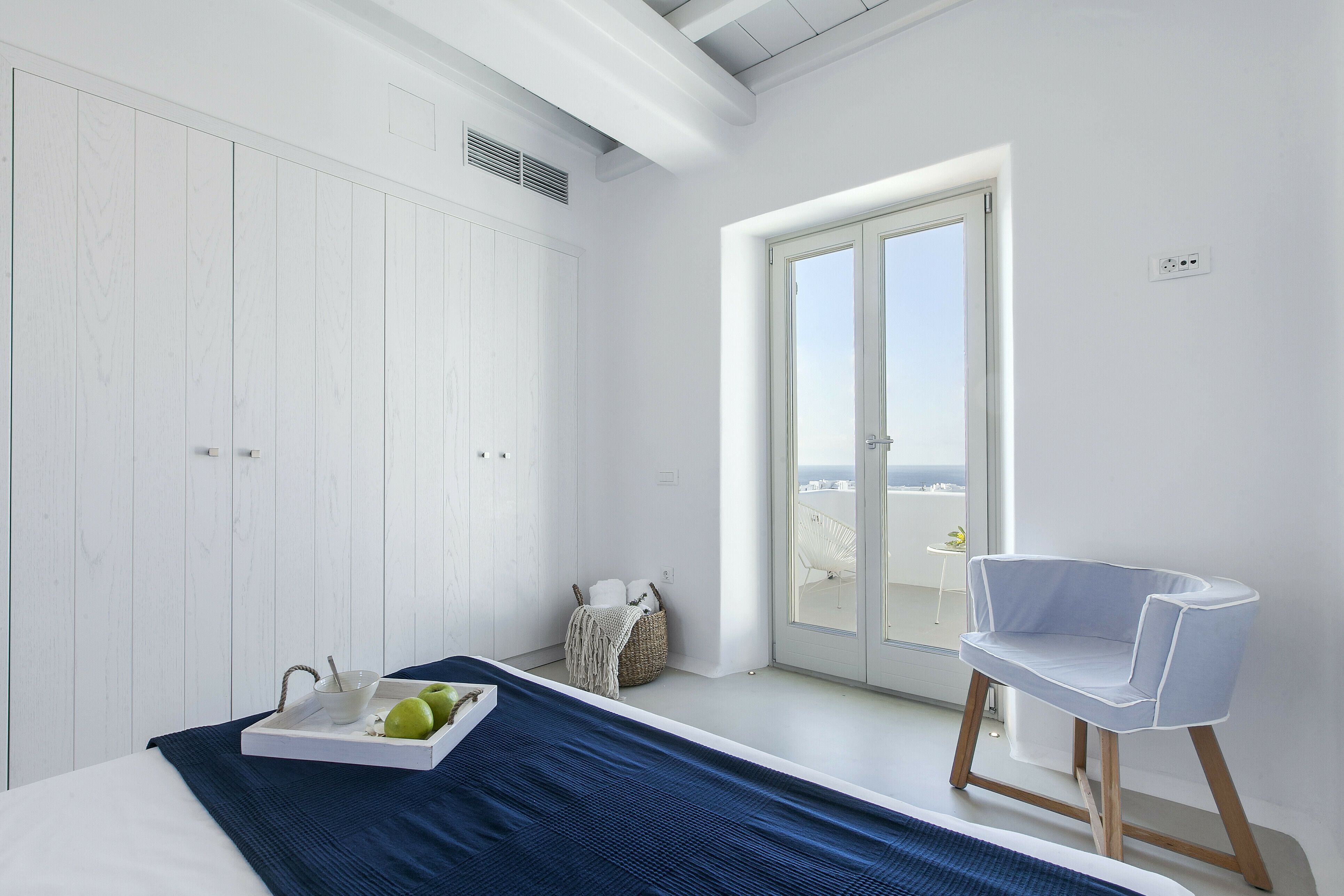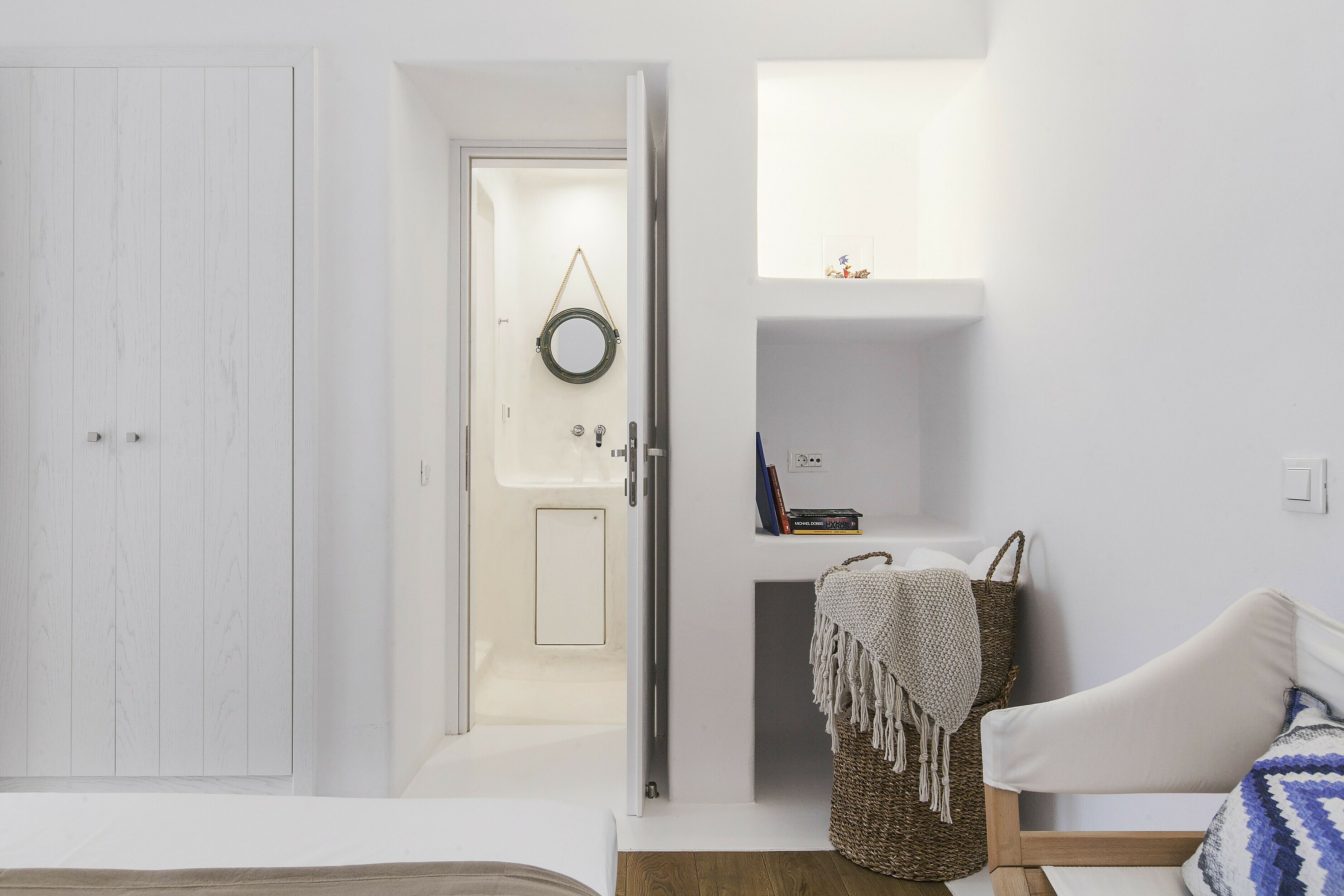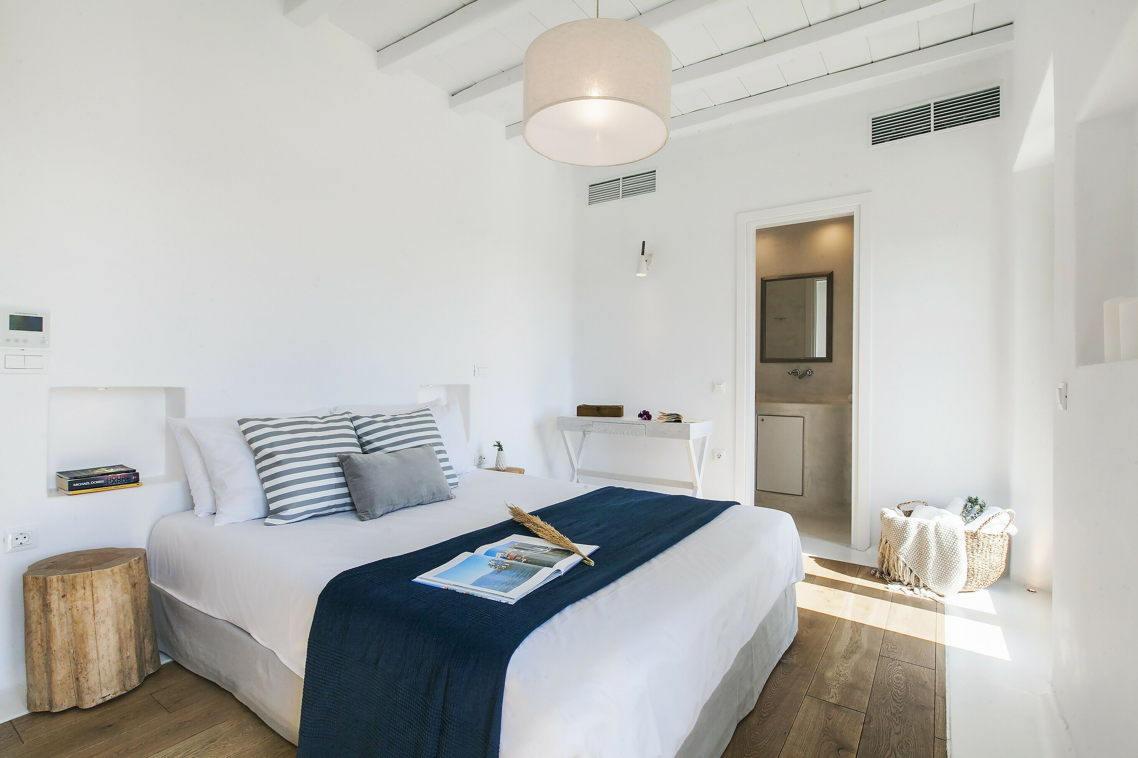 With a privileged spot above Platis Gialos, this home invites you to slow down and embrace the magic of the island. You can enjoy incredible views while dining on the terrace and there’s a pool as well as a hammock for blissful afternoons at home. The rooms embody classic Cycladic style with a family-friendly layout and weekly housekeeping included. We recommend having a car to get around, but it’s just a short drive to Nammos Beach and the vibrant heart of Mykonos town.