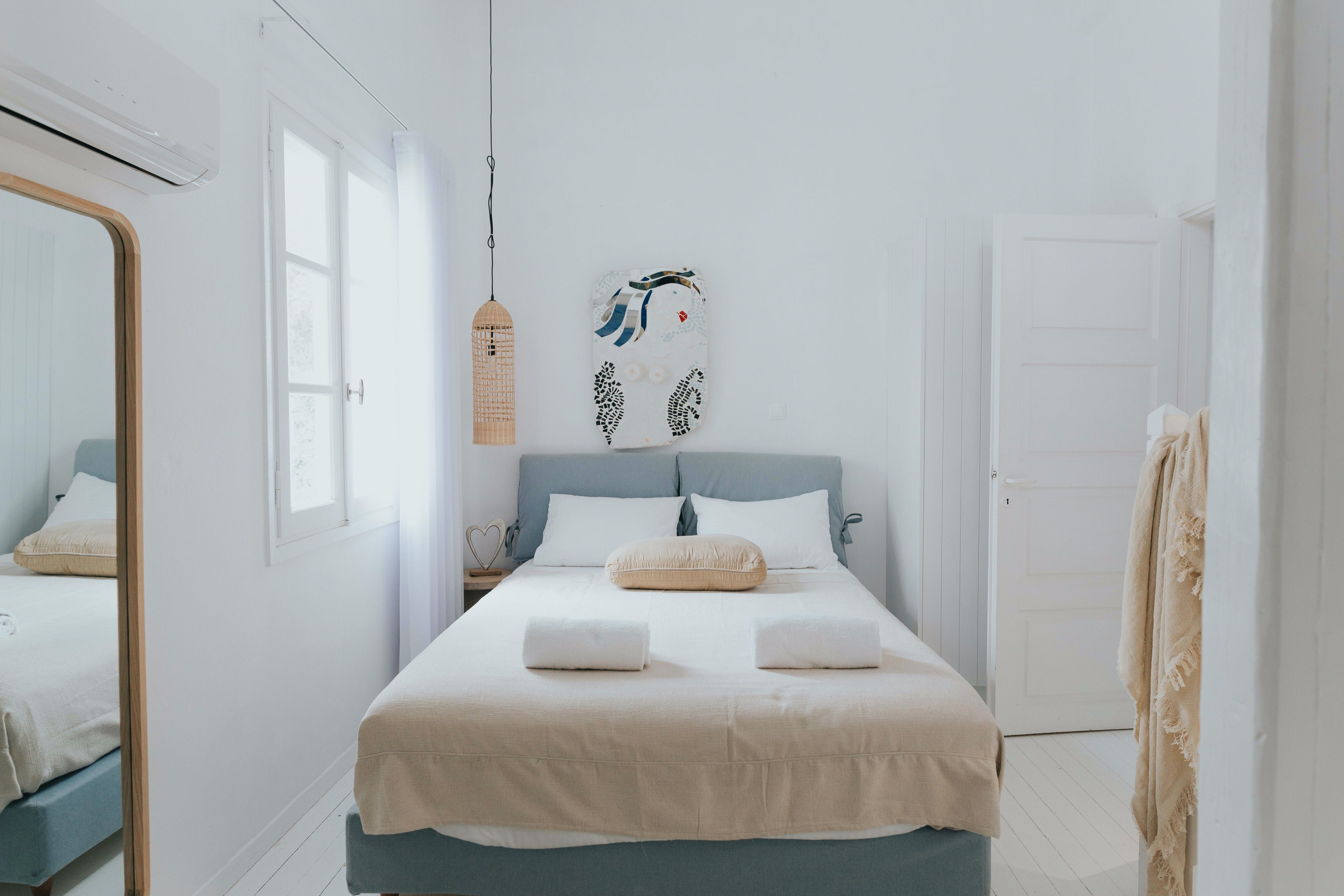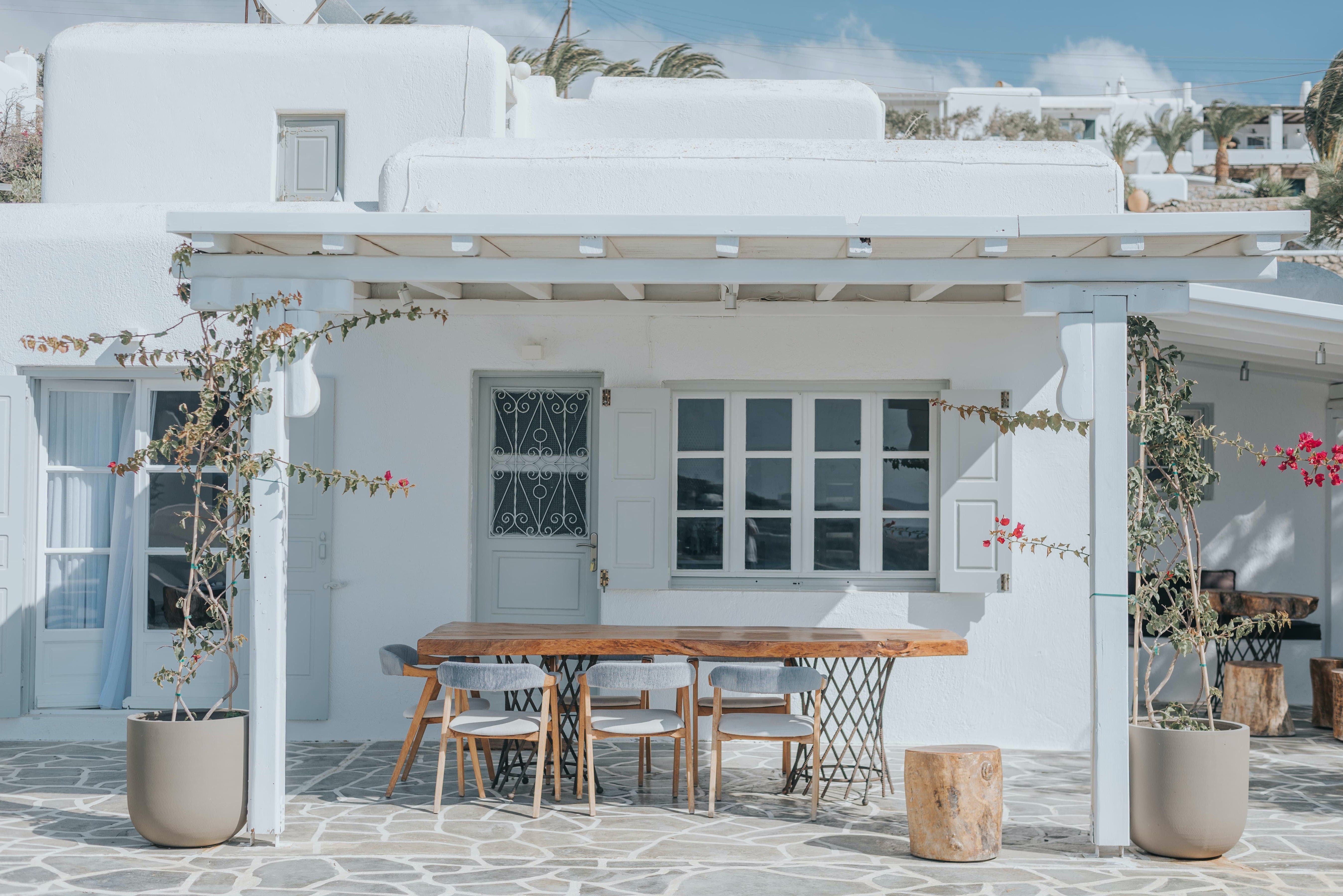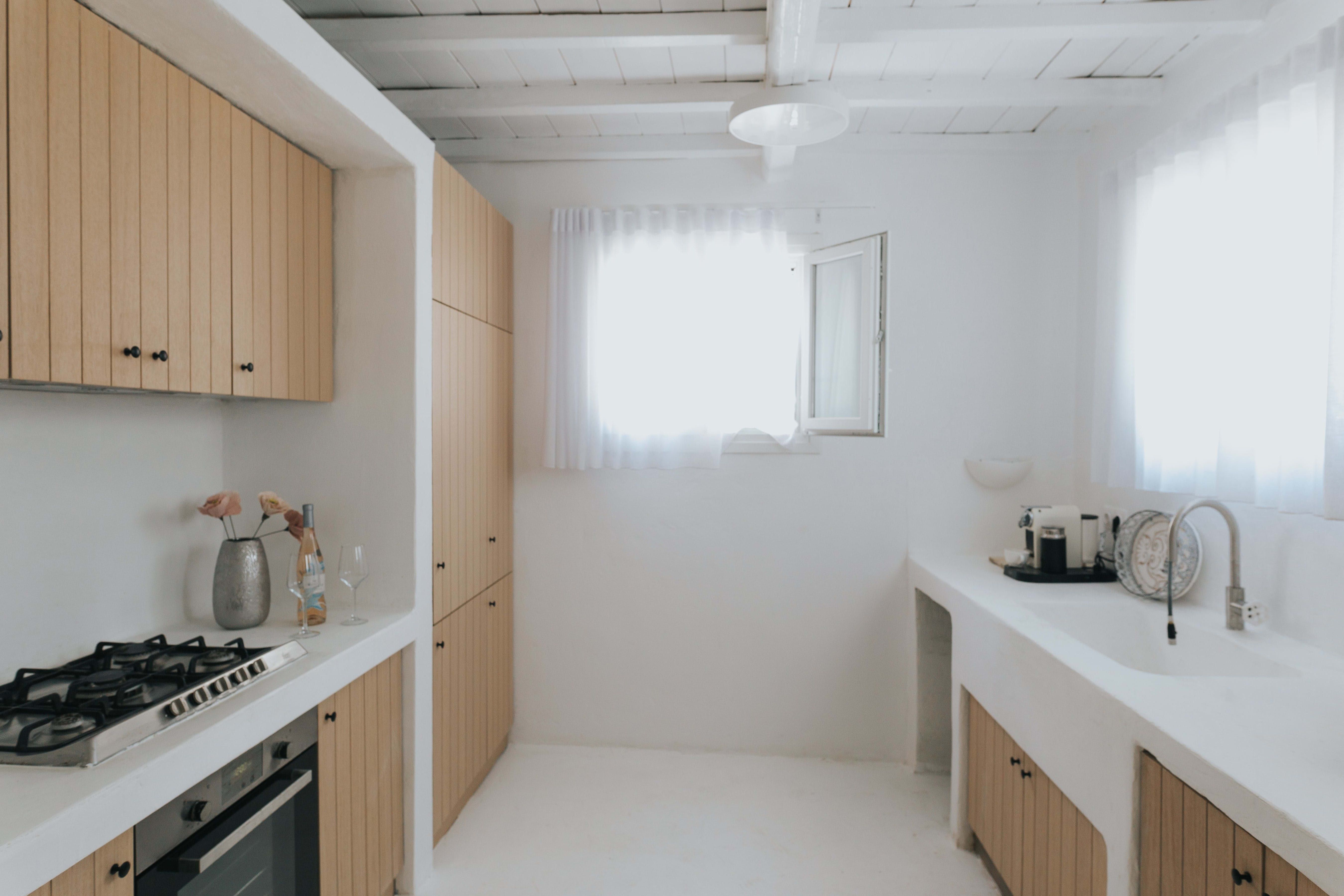 Overlooking the shimmering Aegean Sea from the private pool and terrace seating, this Mykonos villa embraces island life with a touch of luxury. Crisp and minimal, it's a beautiful home where families and friends can enjoy the soft sand of Platis Gialos only meters away and explore the island from this beachfront location. Even better, the guesthouse, with a double bedroom, bathroom and open-plan kitchen, creates space for grandparents or moody teenagers to enjoy a little more privacy so everyone's happy.