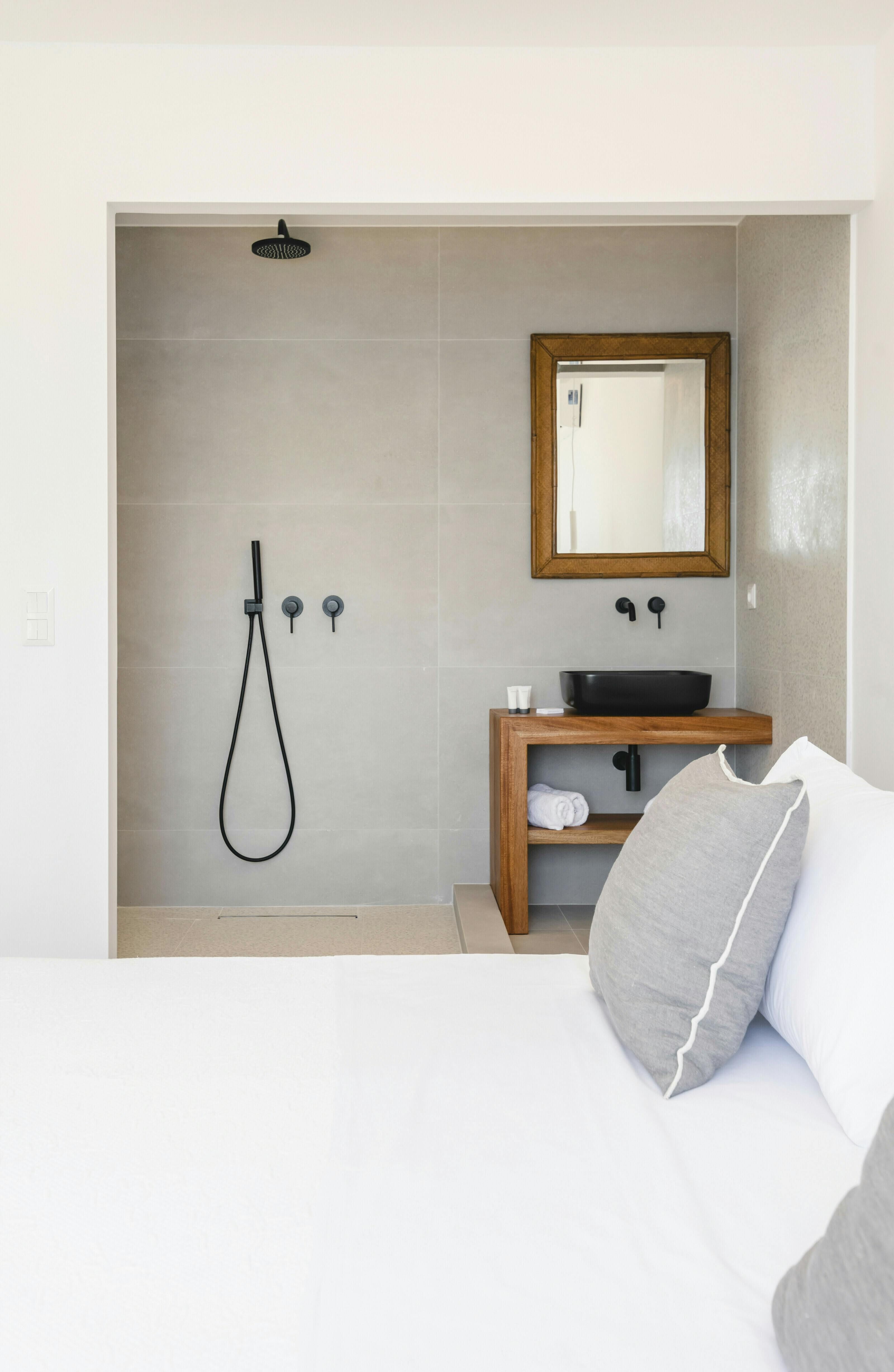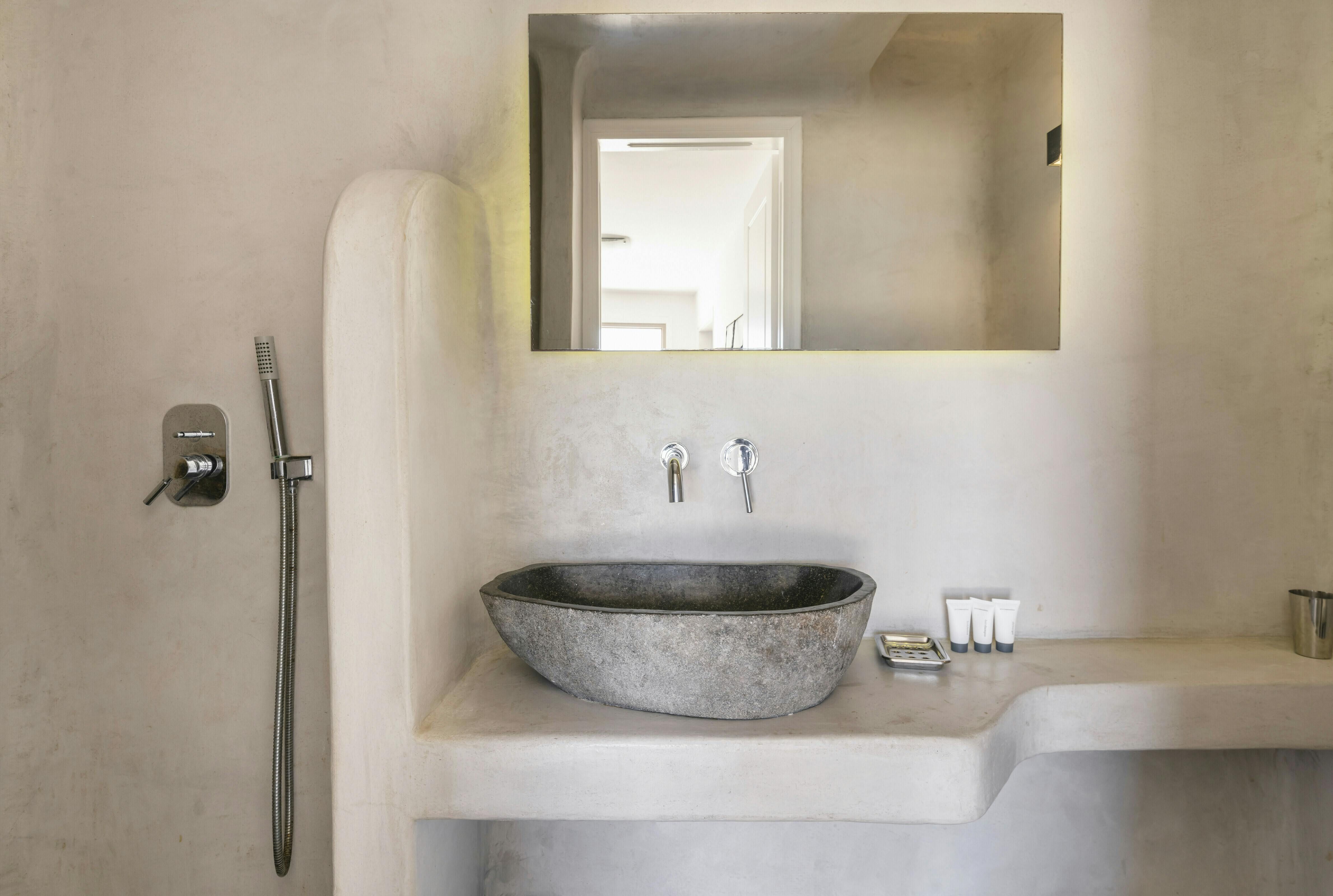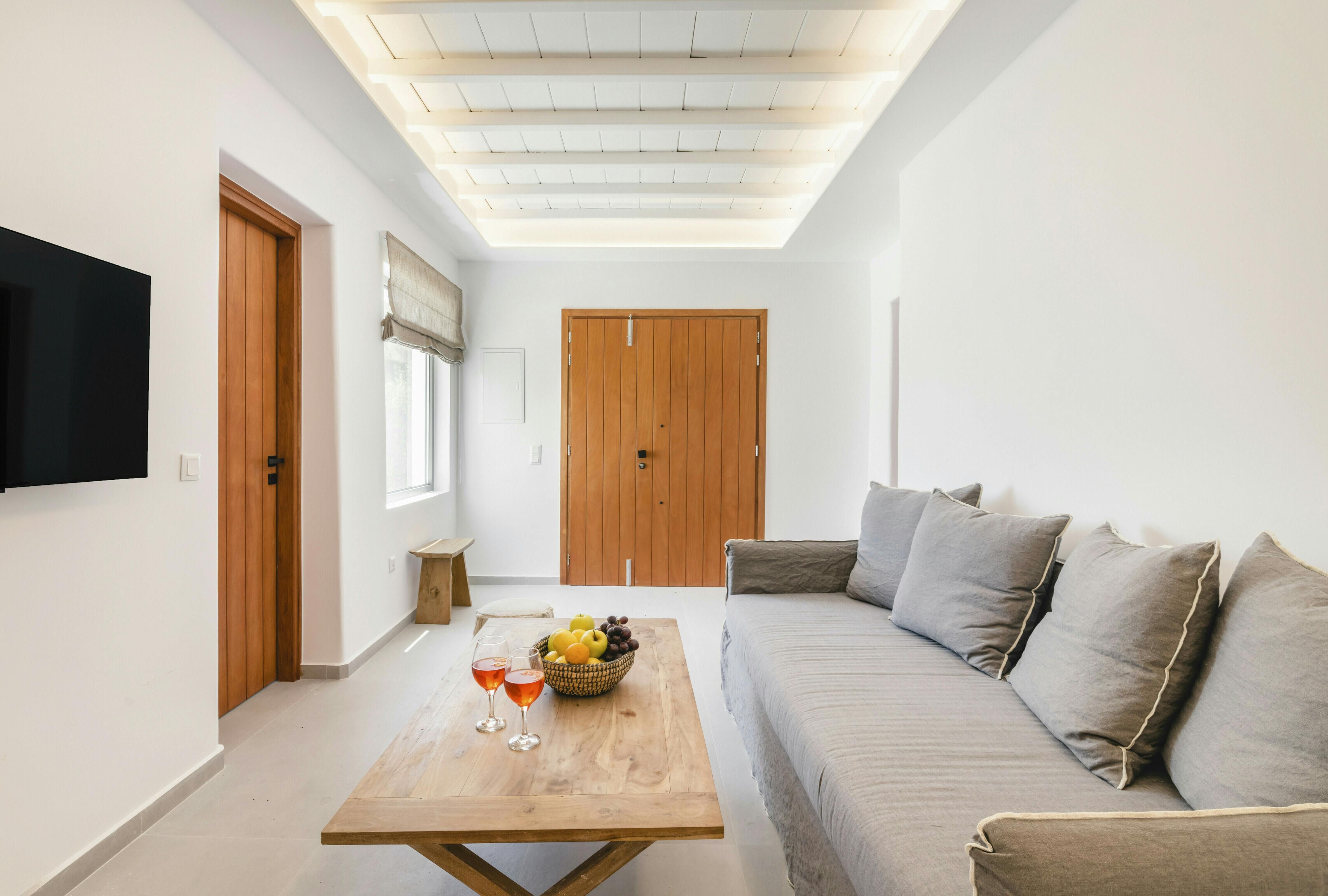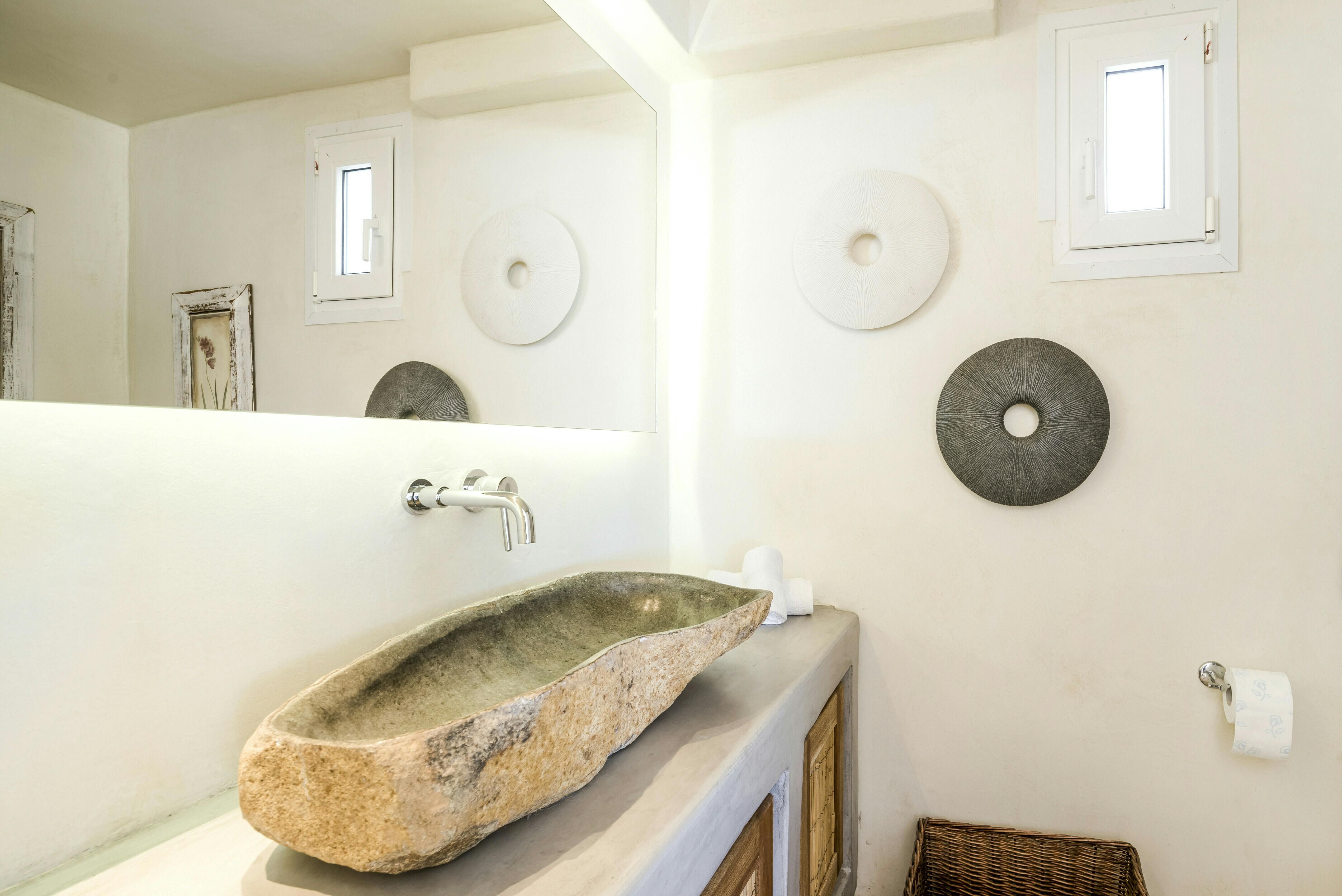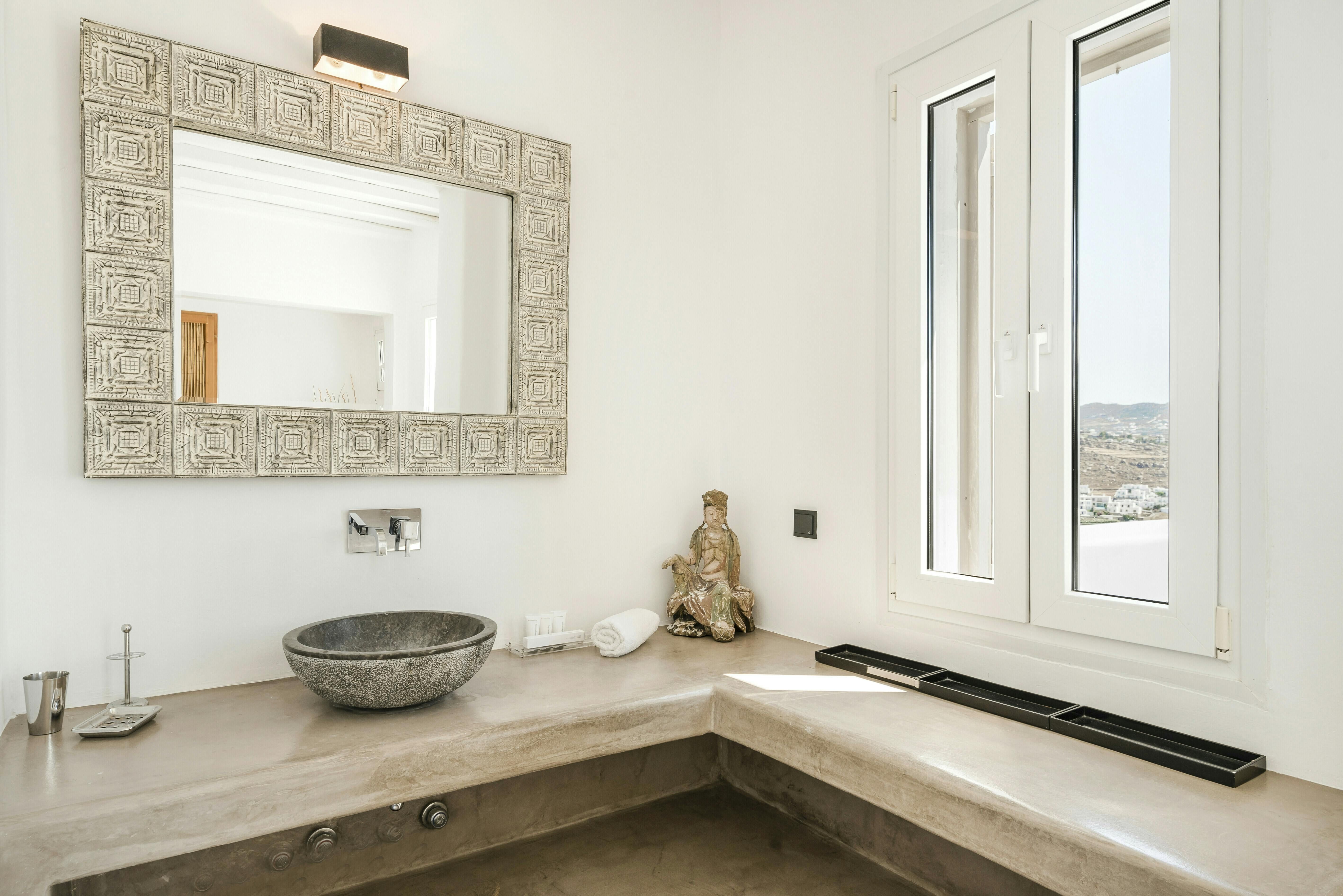 If you’re seeking a blissful island getaway, this home has found you for a reason. Perched in the hills of Agios Lazaros, there are stunning sea views from the sun kissed terrace. There’s also a pool and plenty of space to lounge and dine alfresco. It’s worth noting the rooms are spread across the main house and two independent guest houses, but this works perfectly for families and large groups. Plus, it’s less than a fifteen-minute drive to the vibrant Ornos Beach as well as Mykonos Town.