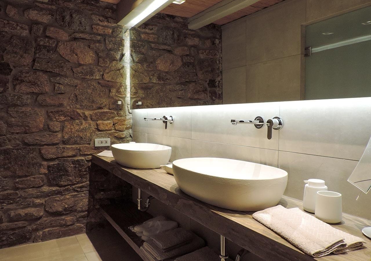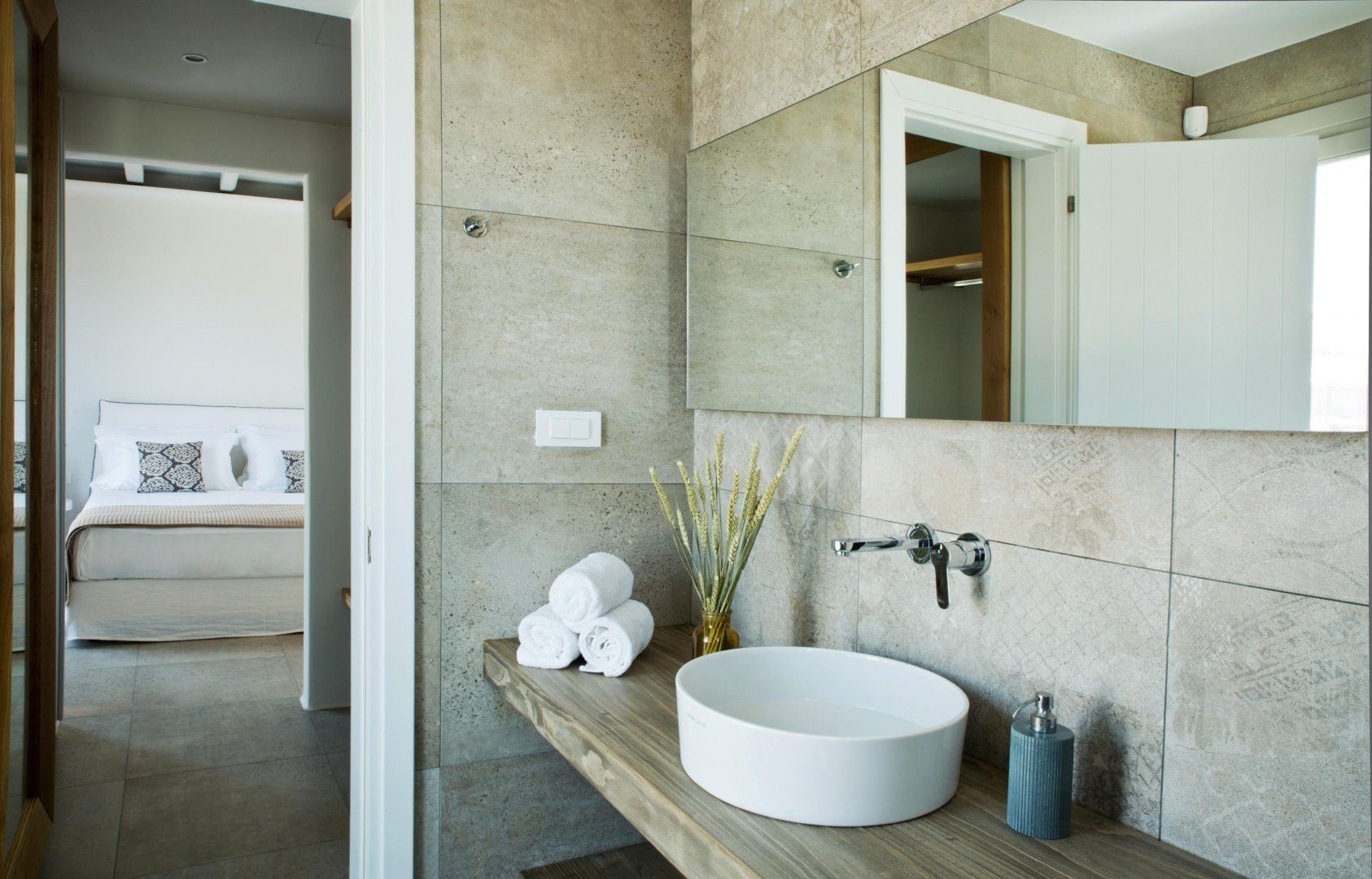 Should you tire of the outdoors lounges, heading inside you’ve got a social, open-plan dining and living room in soothing wood and white. We love the old dresser in the dining area, which looks like it’s been rescued from a shipwreck. The dedicated playroom on the ground floor lets you know this place is family-friendly. The crowning jewel of this home has to be the luxurious master bedroom, which is like a hotel suite with a separate seating area. It’s a boho-chic spot with exposed stone walls, dramatically uplit as if you’re sleeping in a (super-luxe) cave.