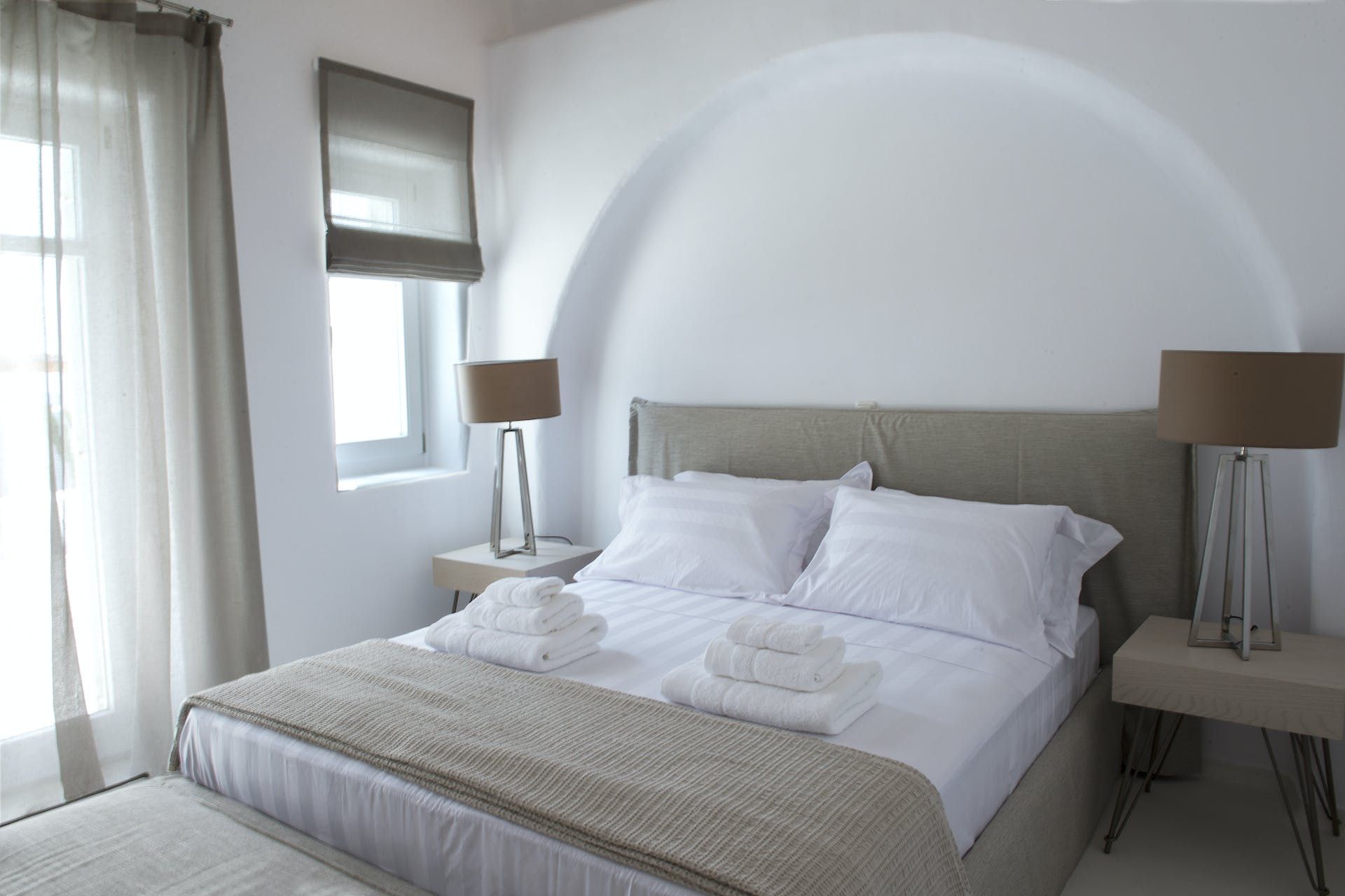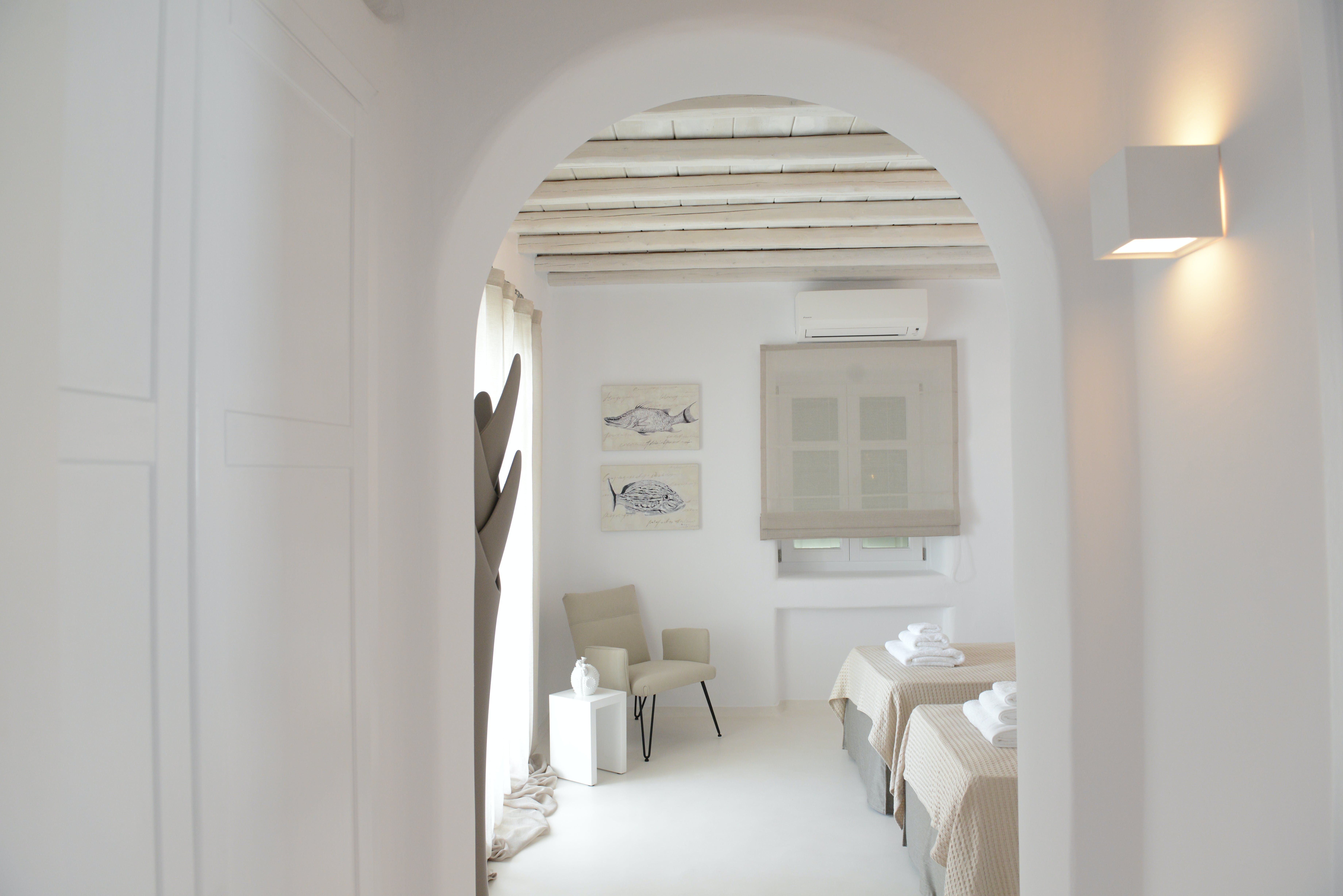 The inviting outdoor areas are equally stunning. Combined with Mykonos' glorious climate, we can imagine you'll be spending the vast majority of your time out here, listening to true crime podcasts by the pool and getting stuck into your holiday reads from the comfort of the shaded seating areas. Panoramic vistas over Mykonos Town and the glistening azure waters of the Aegean Sea alert you to the island's charms beyond the confines of the villa (though we wouldn't blame you if you didn't leave).