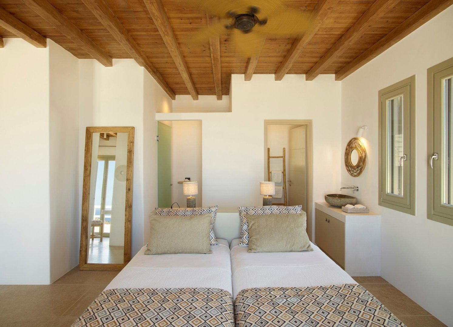 Stroll down the hill into the centre of Tourlos, and you'll find a range of tavernas serving locally caught seafood, along with a pretty marina full of boats. The sandy shoreline of Agios Stefanos Beach is only 2.8km away, and is a great place to paddle in the crystal clear waters. And, with Mykonos Town just a few minutes away by car, you can stroll through the charming streets or let your hair down in the lively bars – there's something for everyone here.