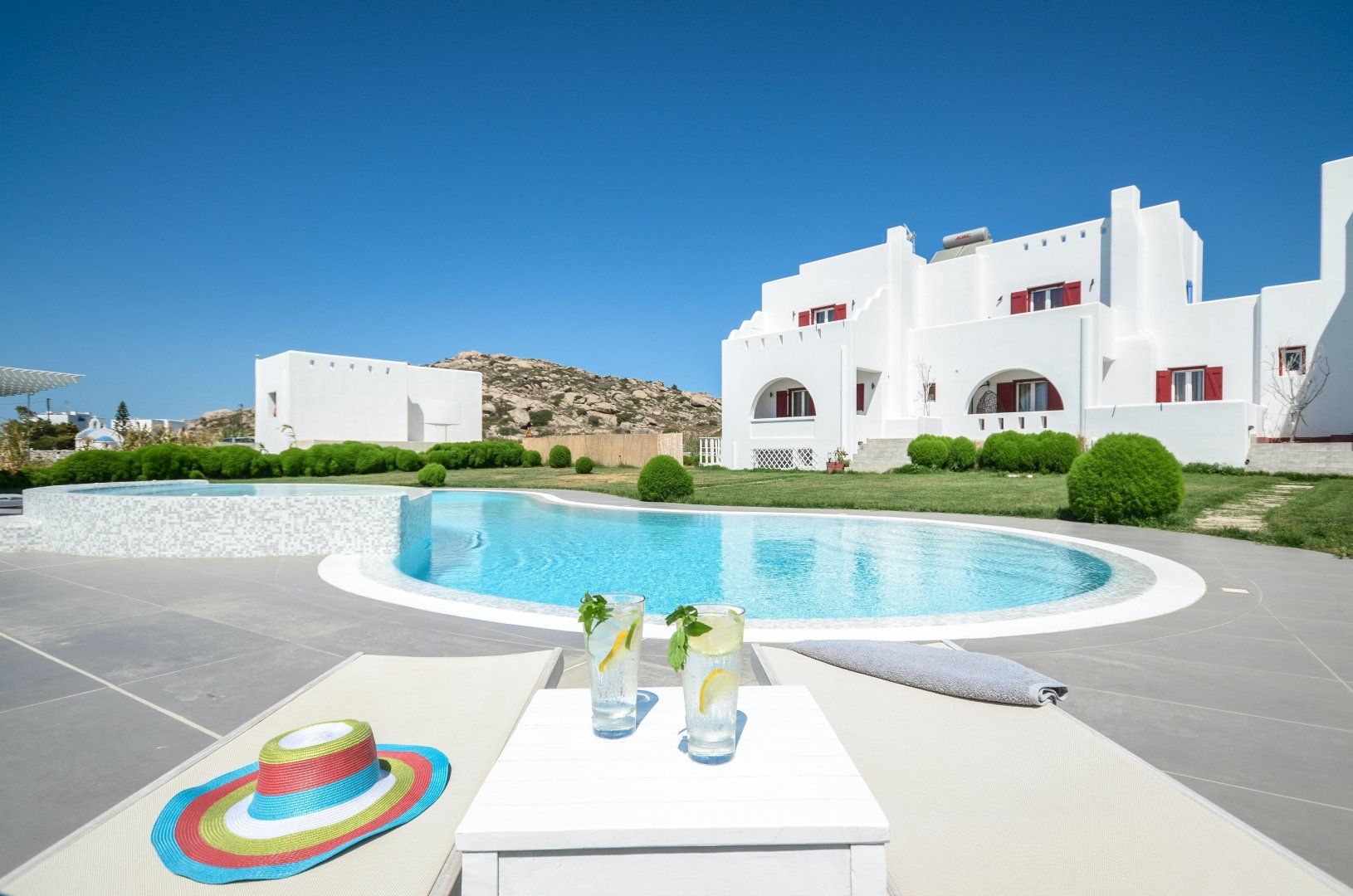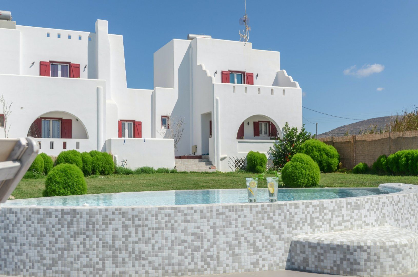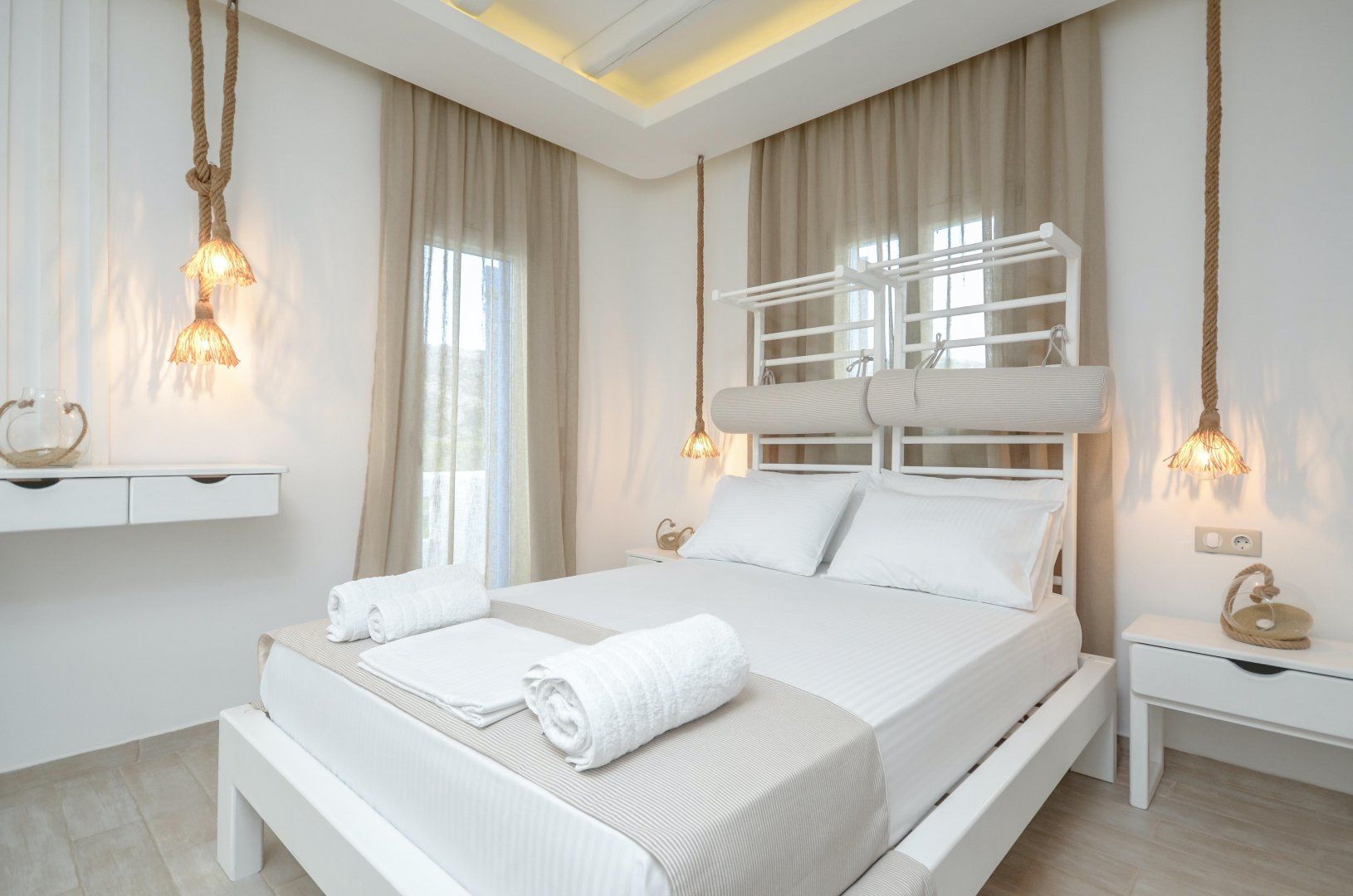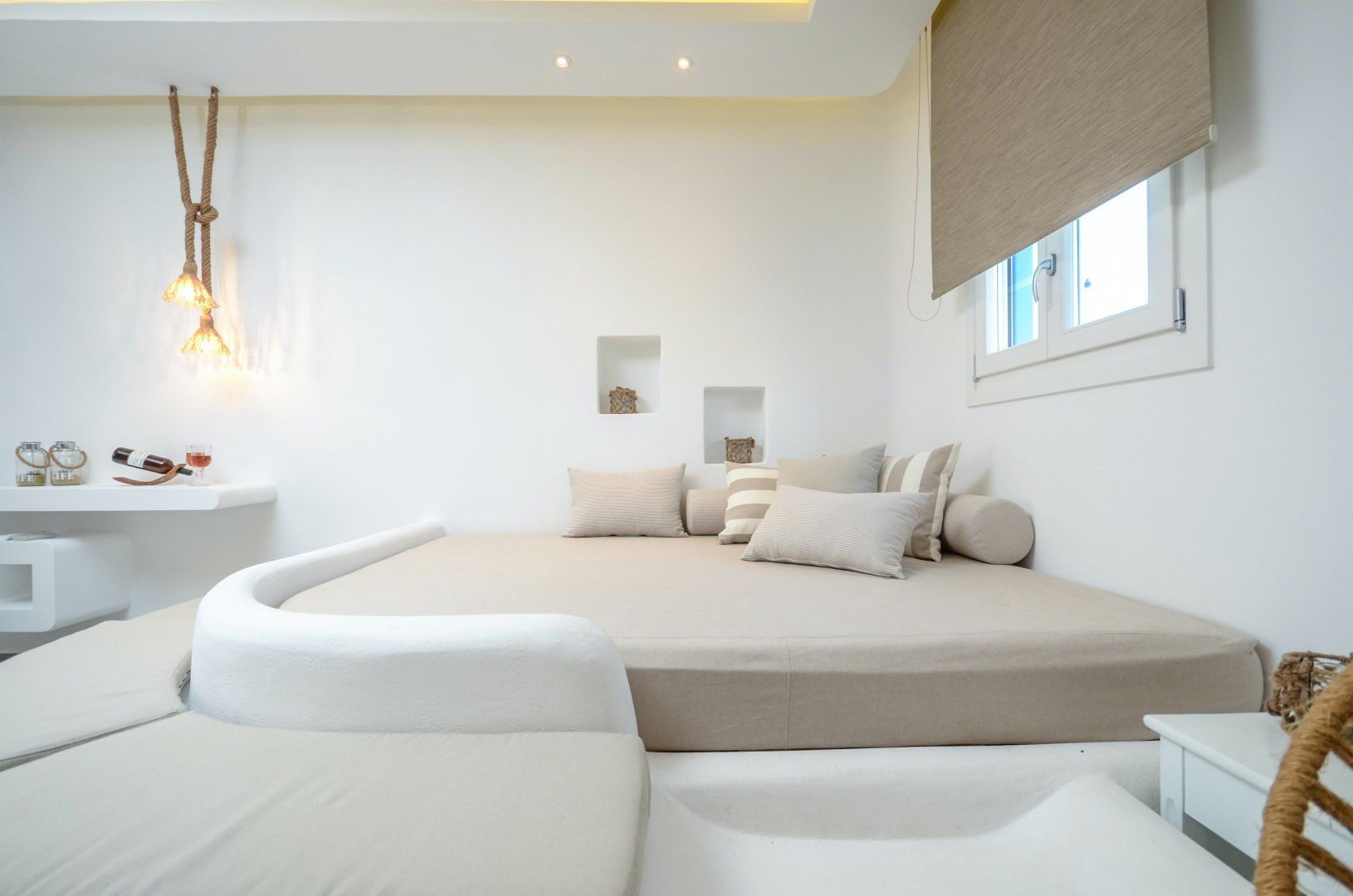 Boasting sea and mountain views, this tranquil villa with its typical Cycladic style promises a memorable coastal retreat. Set over three floors, there’s space for up to nine guests to spread out here – although bear in mind that at full occupancy, two will be sleeping on the bed in the living area, so privacy is lacking. There’s a communal pool, shared with the neighbouring two villas, perfect for cooling off in the Greek sun, and when you fancy a beach day, it’s a mere 600-metre stroll to the sands of Plaka beach.