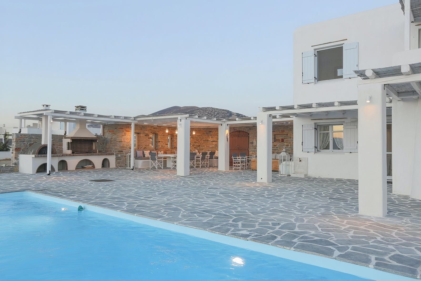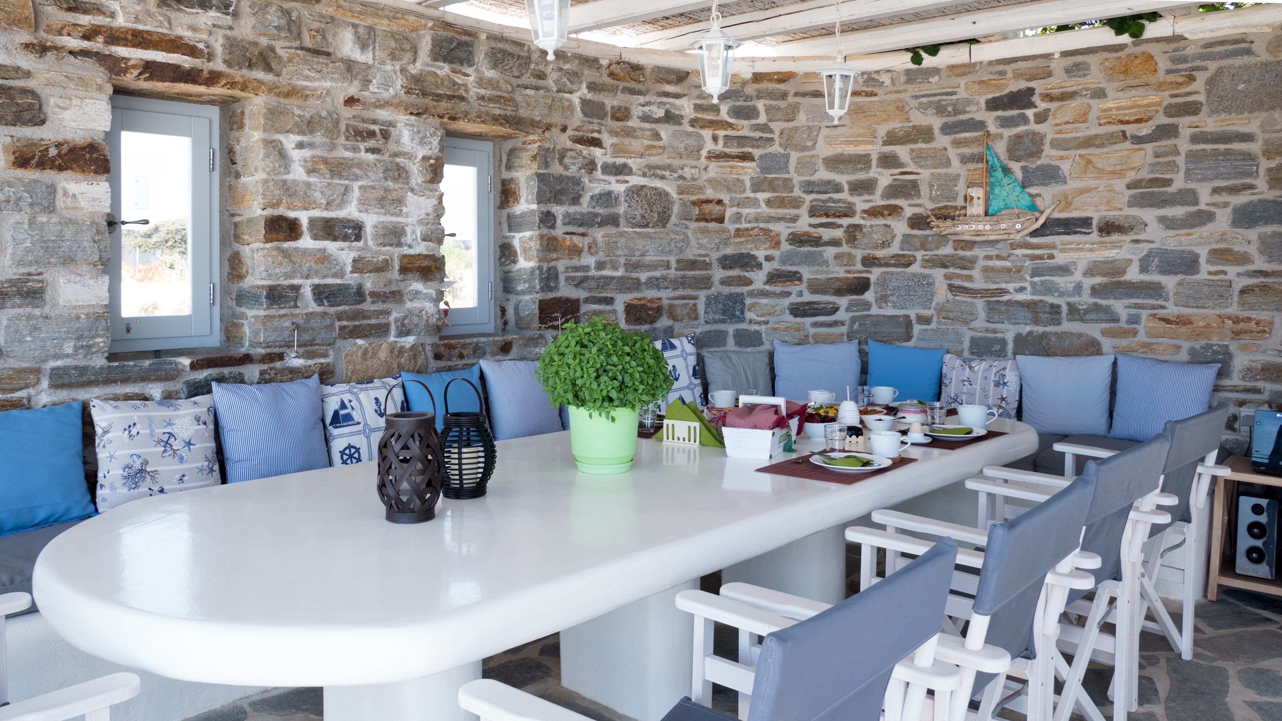 This villa is in a peaceful spot, just a five-minute walk from the beach. While it may not be the most luxurious in our collection and feels dated in parts, with views of the Aegean Sea, a private pool, and a choice of outdoor seating areas, it has plenty to offer. Keen cooks can make the most of the fresh herbs and spices growing in the garden and there’s a dining table seating twelve for alfresco meals. And when you’re ready to explore, Naxos Town, with its lively port and charming old town, is a 16-kilometre drive away.