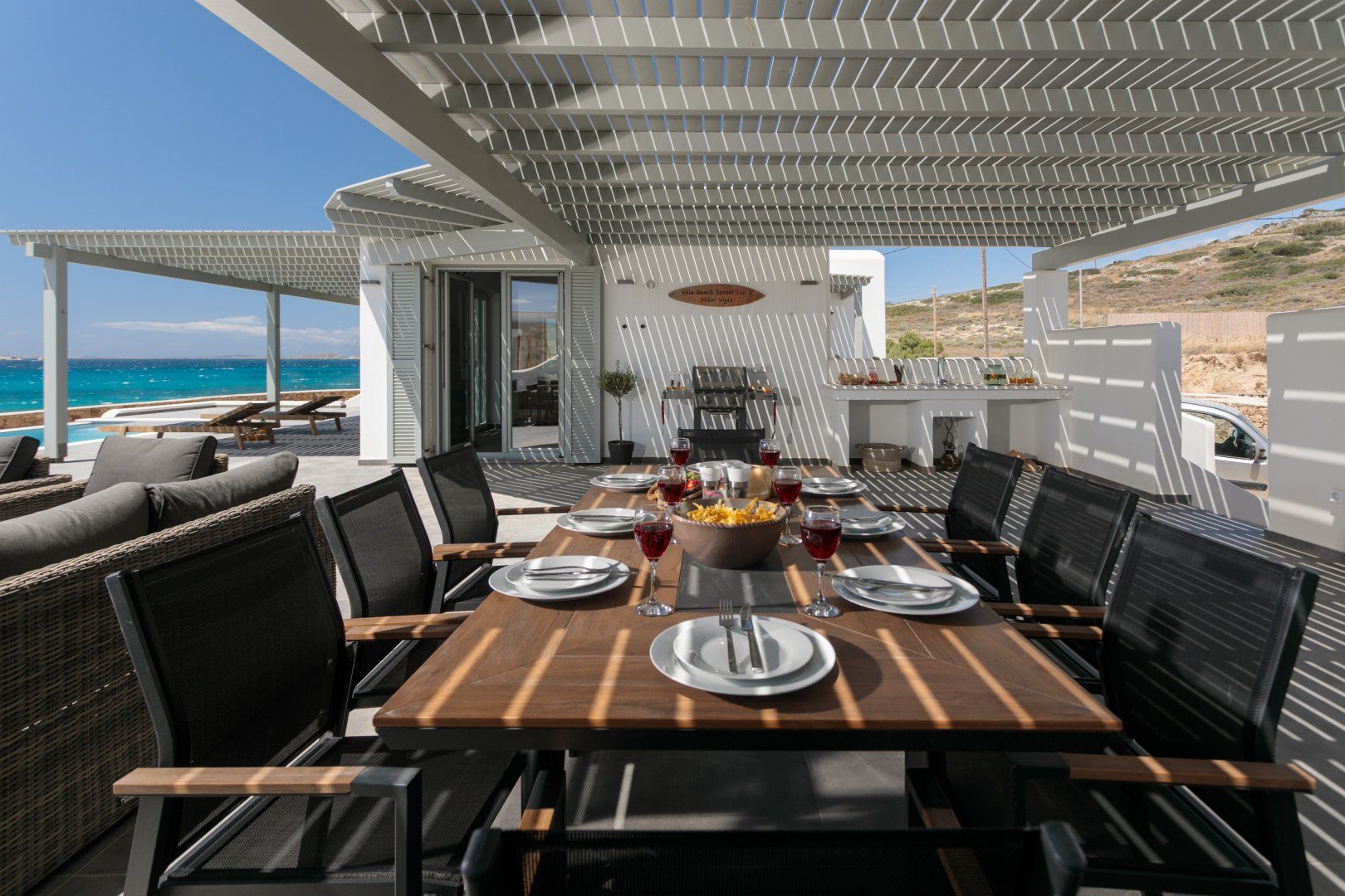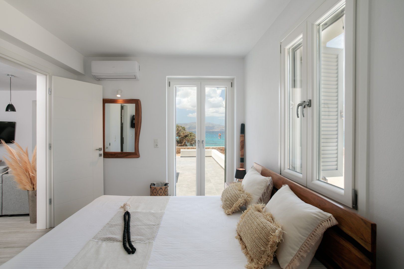Barefoot luxury awaits at this newly built villa set just a hop, skip and jump from the paradisal shores of Mikri Vigla Beach. Inside, it’s a crisp, pared-back affair, with each bedroom as light-filled and spacious as the next. But we think you’ll spend most of your time alfresco, drinking in those knockout sea and mountain vistas from the lengthy private pool. Ready to embrace island life? Mikri Vigla village, with its seafront tavernas and bakeries, is a short stroll away along the seafront. After a little more bustle? The history-rich streets of Naxos Town are just a nine-kilometre drive away.