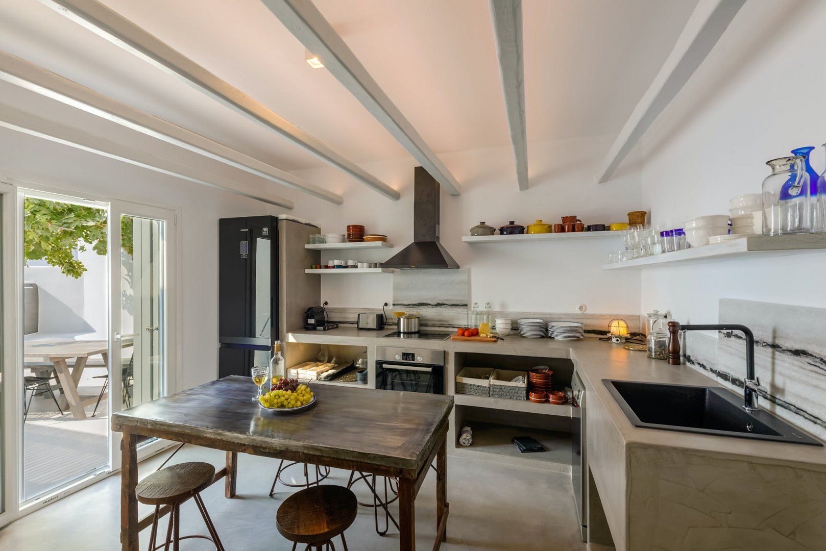 Sweeping sea views, a private pool and easy access to the island’s beautiful beaches – this home welcomes you to enjoy it all from its privileged spot in Orkos. You will need a car to get around here, but it’s just a short drive to Plaka and Mikri Vigla, while Naxos town is also within easy driving distance. Back at home, you’ll find the perfect setting for leisurely swims and sunset drinks on the terrace. There’s also a concierge service available with sweet extras like beauty treatments and babysitting services – a great option for those travelling with children.