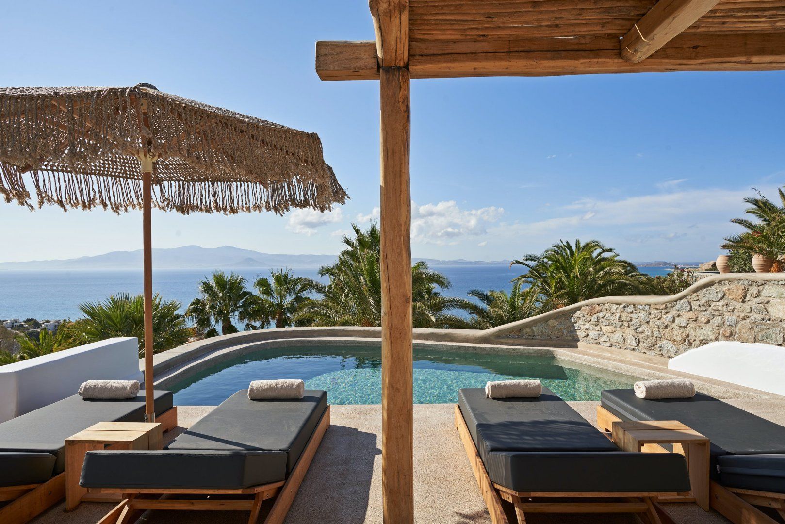 Perched on a hill overlooking Naxos’ beautiful coastline, this home offers idyllic sea views and calming Cycladic interiors. There’s also a private pool, balcony and terrace – all perfectly positioned to ensure optimum relaxation. And while it looks like the perfect adults-only escape, it’s also family-friendly with a range of children’s amenities available on request. You will need a car to get around here, but your host is on hand to help organise car rentals along with a range of extra services – including private chefs and massage treatments. From here, it’s just a short drive to Orkos Beach, with Naxos old town also within easy driving distance.