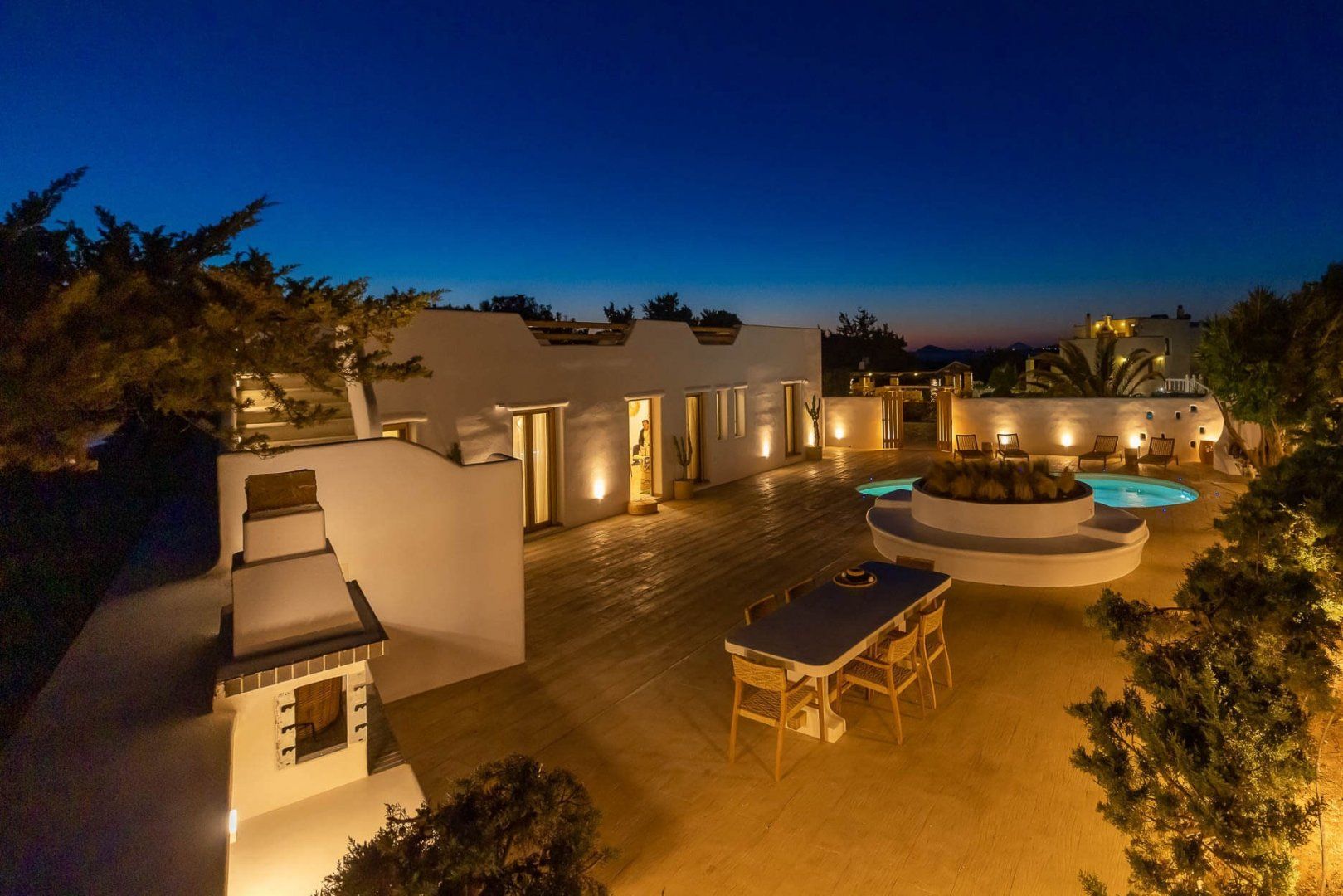Wake up each morning to sunlight streaming into the calm villa, with its exposed stone walls, simple white colour palette, and natural wood touches. Prepare breakfast to enjoy out on the terrace, before slipping into the private pool for a dip. You might stroll over to the golden sands and clear water of the beach, before returning to the villa for cocktails on the rooftop. Watch from the hot tub as the sun sinks in the sky towards the sea. It’s a wonderful view.