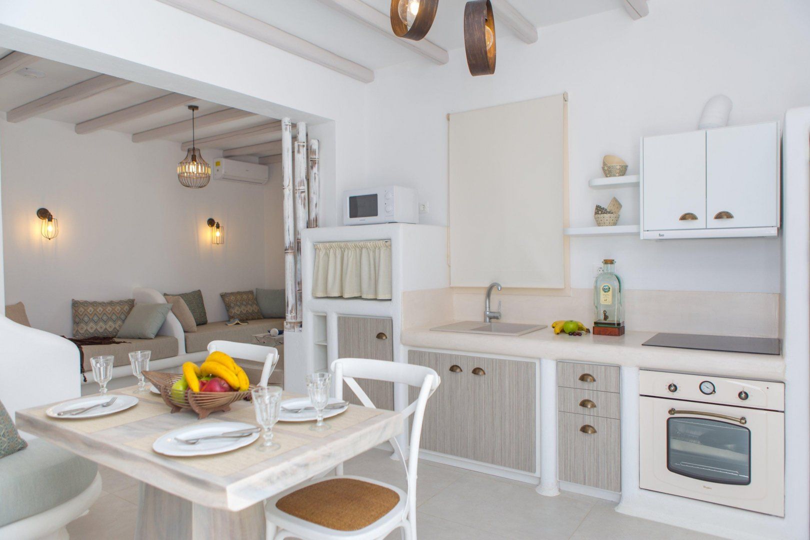 As soon as you arrive, you'll notice the traditional Cycladic architecture – think thick white walls and a flat roof. Inside, there is a serene ambiance thanks to the natural textures and soothing colour palette. If you want to hide from the heat, then you can flop down on the sofa or get busy whipping up some snacks and cool drinks in the kitchen. However, we think you'll want to spend most of your time making the most of the fabulous outdoor space. Kick back in a deckchair to catch some rays, before plunging into the sparkling swimming pool for a refreshing dip. And, when evening rolls around, you can serve up a delicious feast of local fare outside on the terrace.