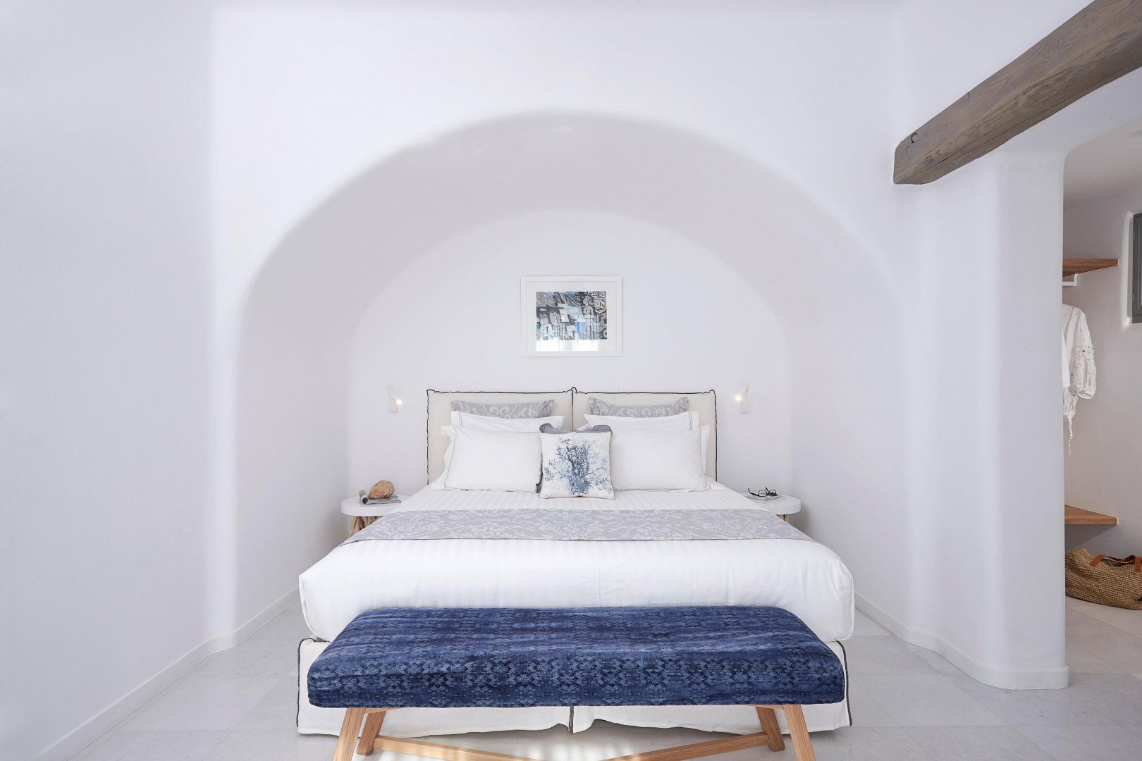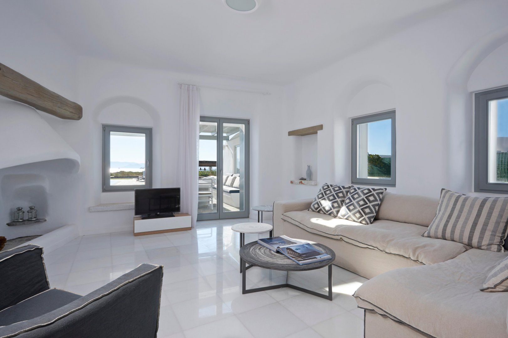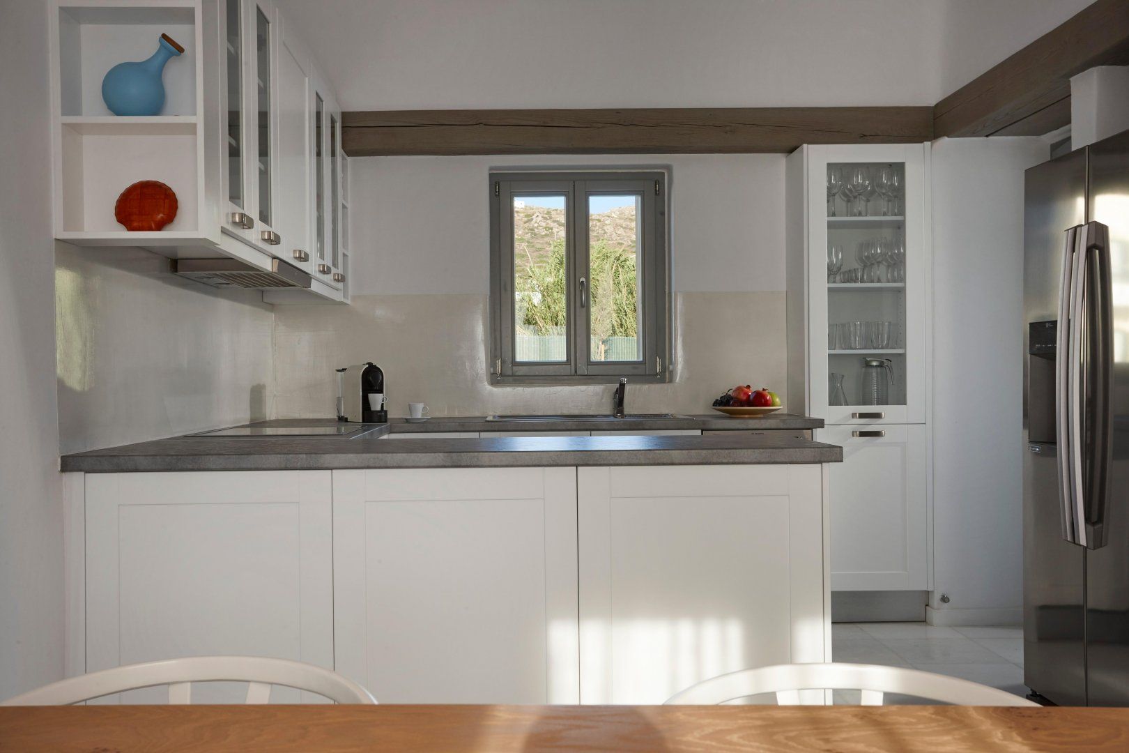 Inside, the home is clean and fresh, with touches of traditional Grecian architecture including organic wall alcoves and wooden ceiling beams. The overall mood is laidback and stress-free, setting the tone for your stay here.